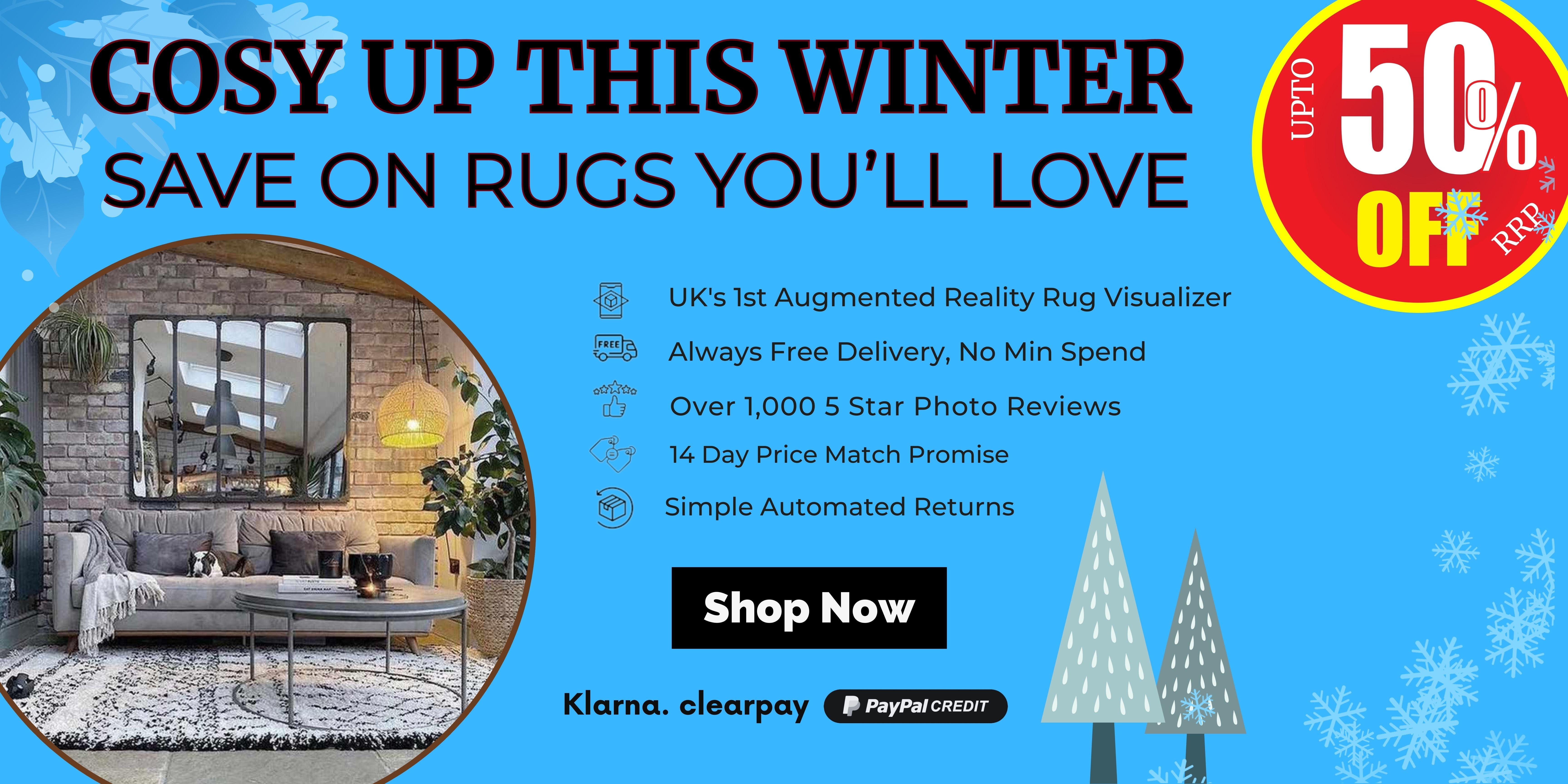 Everything is conveniently organised – shop by style, colour, size, room, collection or brand, making it easy to elevate your space. To improve your shopping experience, we provide superior product descriptions and detailed specifications that other retailers overlook. Unlike the generic colour labels found elsewhere, we’re proud to be the first and only rug retailer to provide a colour breakdown for our rugs — helping you make informed choices for your home. Discover the latest assortment of rugs for sale online. Enjoy free delivery...always, with no minimum spend. Transparent pricing means no surprises at checkout. Say good bye to waiting for return references & authorisation - We're the first rug store offering Simple automated returns for your convenience. Rug unavailable? We're the first rug store providing live pre-order dates and a 20% deposit option. Reserve your rug today! Plus, take advantage of flexible payment options including Klarna, Clearpay, and PayPal in 3, allowing you to get what you love now and pay later. Need Inspo? Shop our Insta or join 40,000 Rug Lovers @rugloveuk