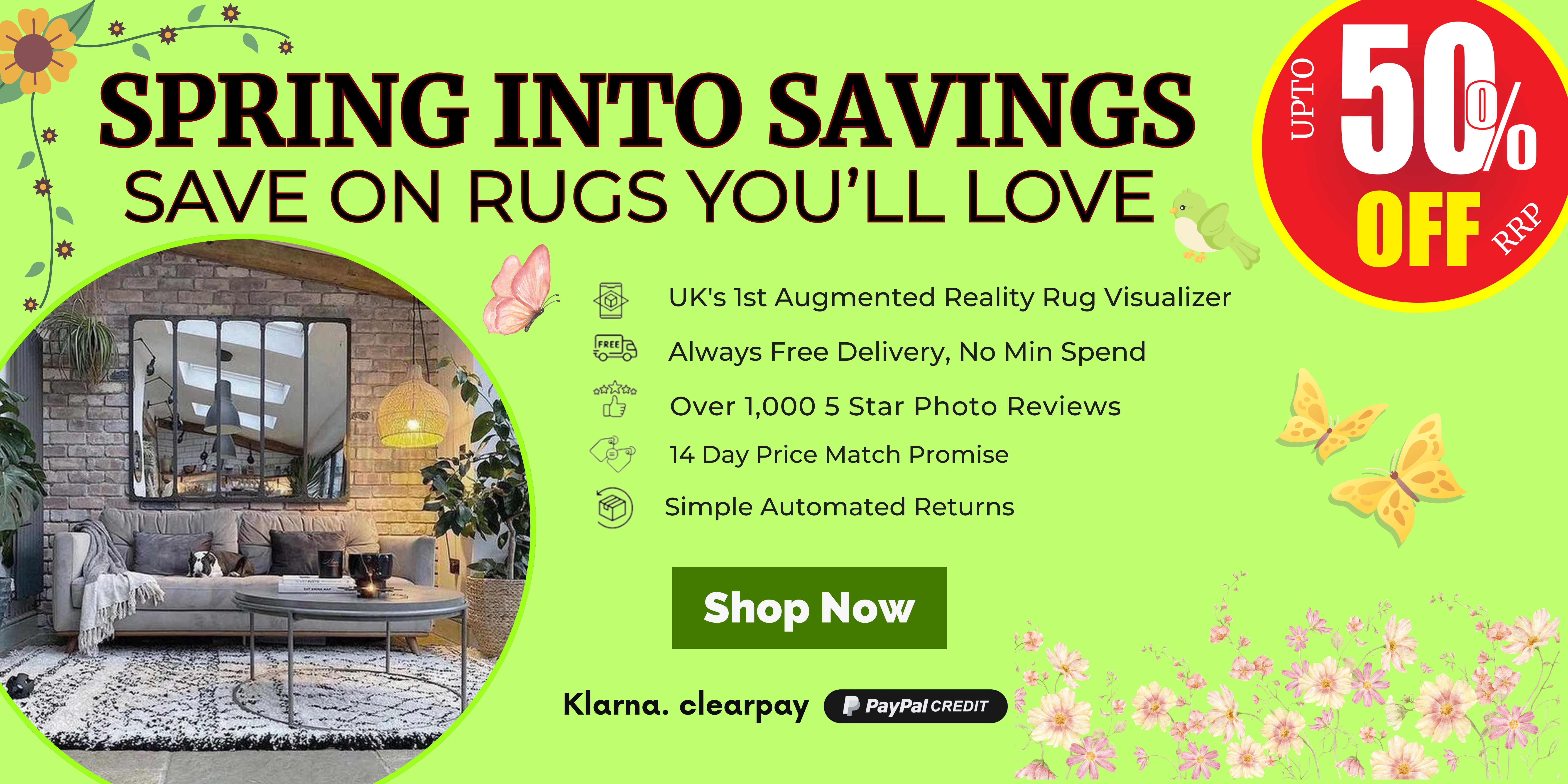 In 2021 Rug Love unveiled our innovative augmented reality Rug Visualizer—the first of its kind in the UK—With our virtual design tool you can view rugs in your room, No more guessing. Our customers love us: don't just take our word for it, sharing their homes with us through more than 1,500 5 Star Photo reviews. We are the first rug store to incorporate AI-assisted support, capable of delivering immediate responses to a wide range of inquiries, including complex ones. This ensures you get the information you need quickly, eliminating the usual wait times of traditional customer service, If you can't find what you're looking for, our dedicated customer support is here to help. We promise a response to all enquiries within 3 business hours. Rug Love proudly offers the original "Price Match Promise" in the rug industry; you won't get it cheaper, full stop...