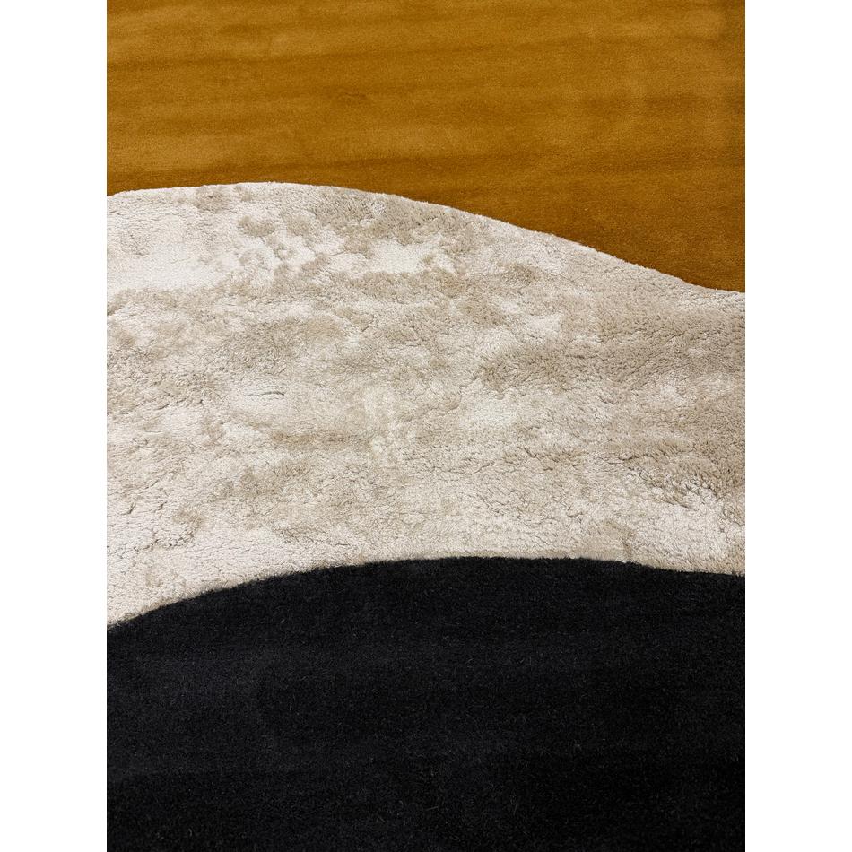 The Matrix MAX104 Signature Modern Geometric Rug is a beautifully crafted statement piece that merges bold, organic shapes with a warm, earthy colour palette. Its landscape-inspired design features smooth overlapping curves that evoke the calm flow of natural horizons, offering a perfect blend of artistry, balance, and modern sophistication. Hand-woven from a premium high-density blend of 92% wool, 7% viscose, and 1% nylon, this rug delivers a luxuriously soft yet durable texture. The wool provides natural resilience and warmth, while the viscose introduces a refined shimmer, adding a subtle light-reflective quality that changes with the viewing angle. Each piece is hand-finished with precision, ensuring an exceptionally smooth, dense pile and premium craftsmanship throughout.