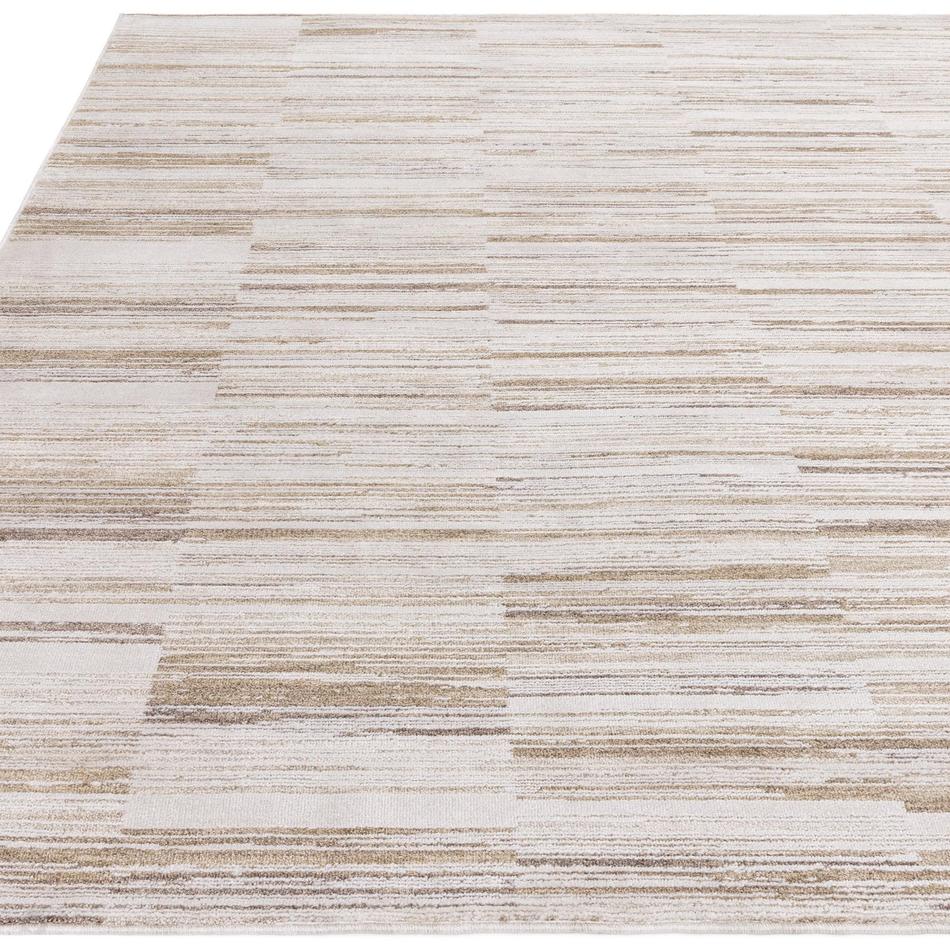 The Anders AN08 Ivory, Beige & Golden Sand Rug combines Warm Ivory, Natural Beige, Golden Sand, Muted Taupe, Frosted Cream, and Pale Stone within a modern stripe-block linear design. With its 7 mm low pile, soft polyblend texture, and gentle shimmer finish, it embodies quiet luxury with a relaxed warmth. Perfect for modern, Scandi, or minimalist interiors, this rug adds textural interest and light-enhancing elegance to any living space without overwhelming the décor.