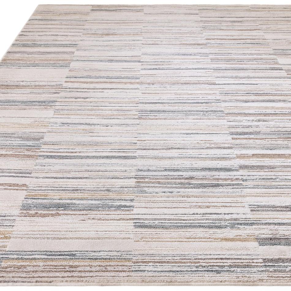 The Anders AN09 Ivory, Taupe, Grey, Blue & Gold Rug presents a perfectly balanced palette of Soft Ivory, Warm Taupe, Misty Grey, Slate Blue, Pale Gold, Stone Beige, and Frosted Cream tones. Its modern stripe-block layout and space-dyed yarns create subtle tonal movement with a low-profile 7 mm pile that feels smooth and refined. The result is a versatile, quietly luxurious rug that complements modern, Scandi, and neutral interiors with ease, adding depth and texture without overwhelming the space.