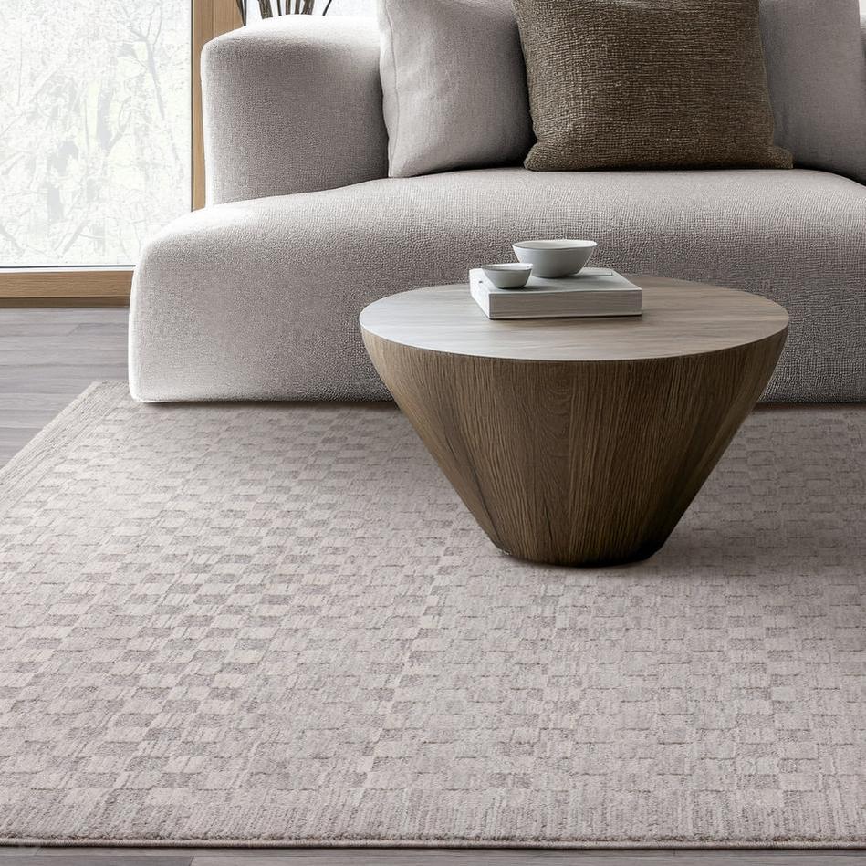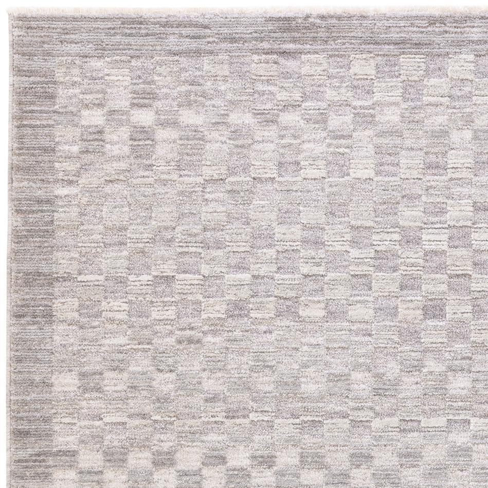 Laurent LA02 Modern Plain Distressed Subtle Geometric Checker Space-Dyed Tonal Textured Soft-Touch Durable Fine Yarn Polyester Low Profile Dense Short Pile Fringe Light Grey/Cream Rug