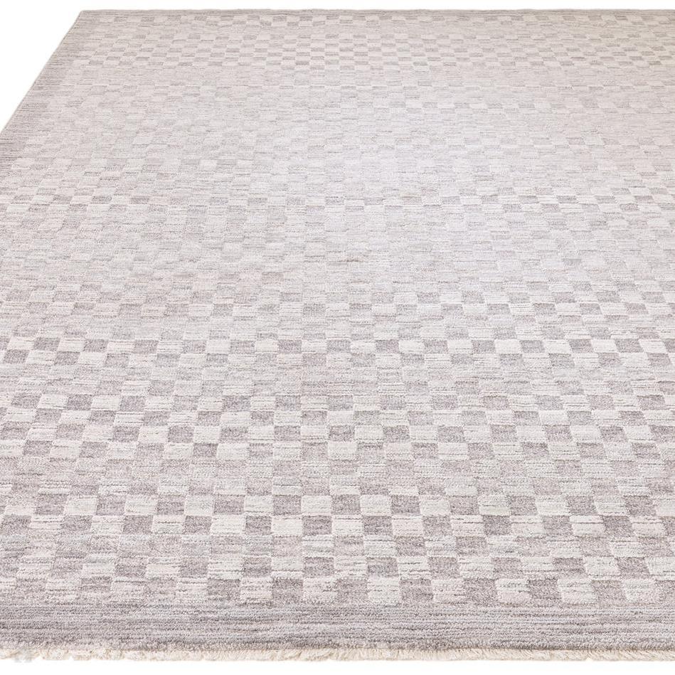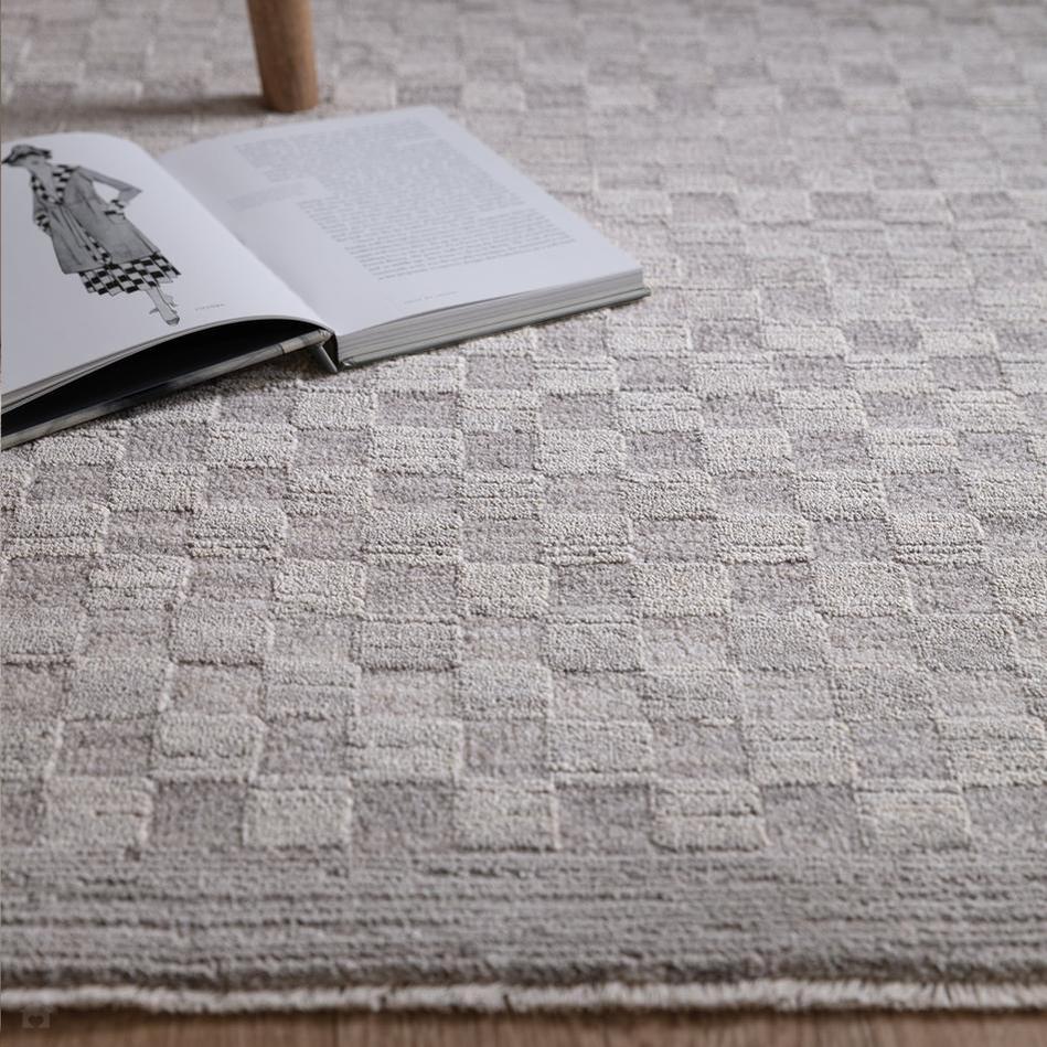 The Laurent LA02 Light Grey & Cream Rug captures a contemporary calm through a minimalist tonal palette and refined surface texture. Its geometric checker-inspired weave introduces soft dimension and quiet structure, while the space-dyed polyester yarns create subtle tonal variations that shift gently with the light.