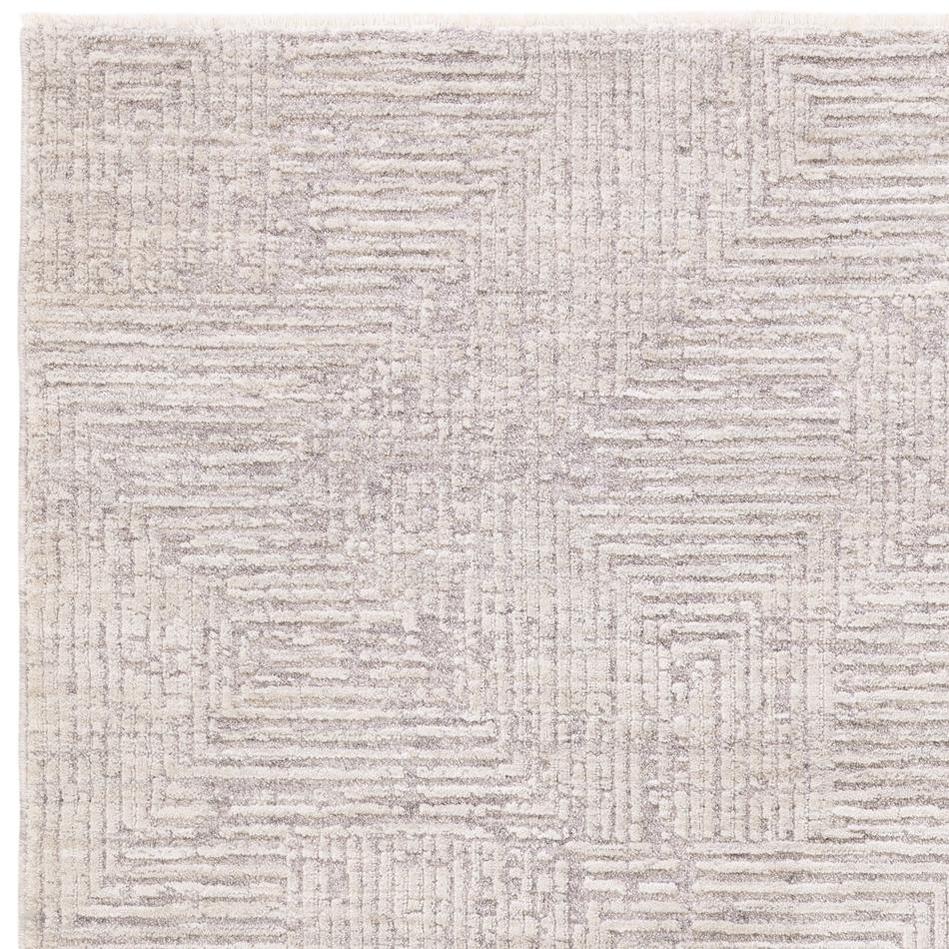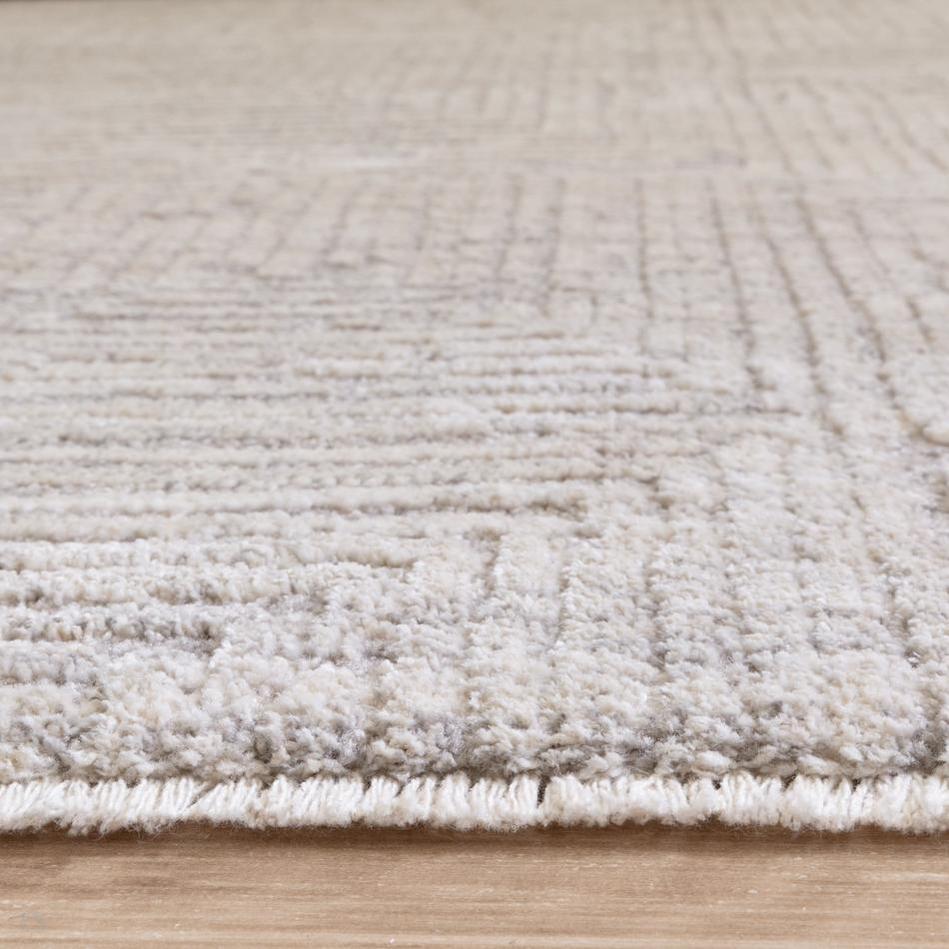 Laurent LA05 Modern Plain Distressed Subtle Geometric Maze Space-Dyed Tonal Textured Soft-Touch Durable Fine Yarn Polyester Low Profile Dense Short Pile Fringe Soft Grey/Cream Beige Rug