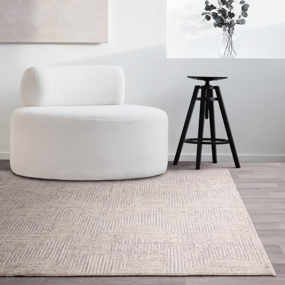The interplay of soft grey and cream, infused with silver mist and ash-beige undertones, gives the rug a layered, serene aesthetic that suits minimalist, Scandi, and neutral décor schemes alike.