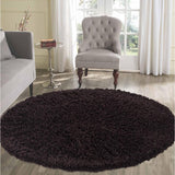 Oxford OXF00 Plain Plush Soft Stain-Resistant Textured Polypropylene Shaggy Brown Round Rug