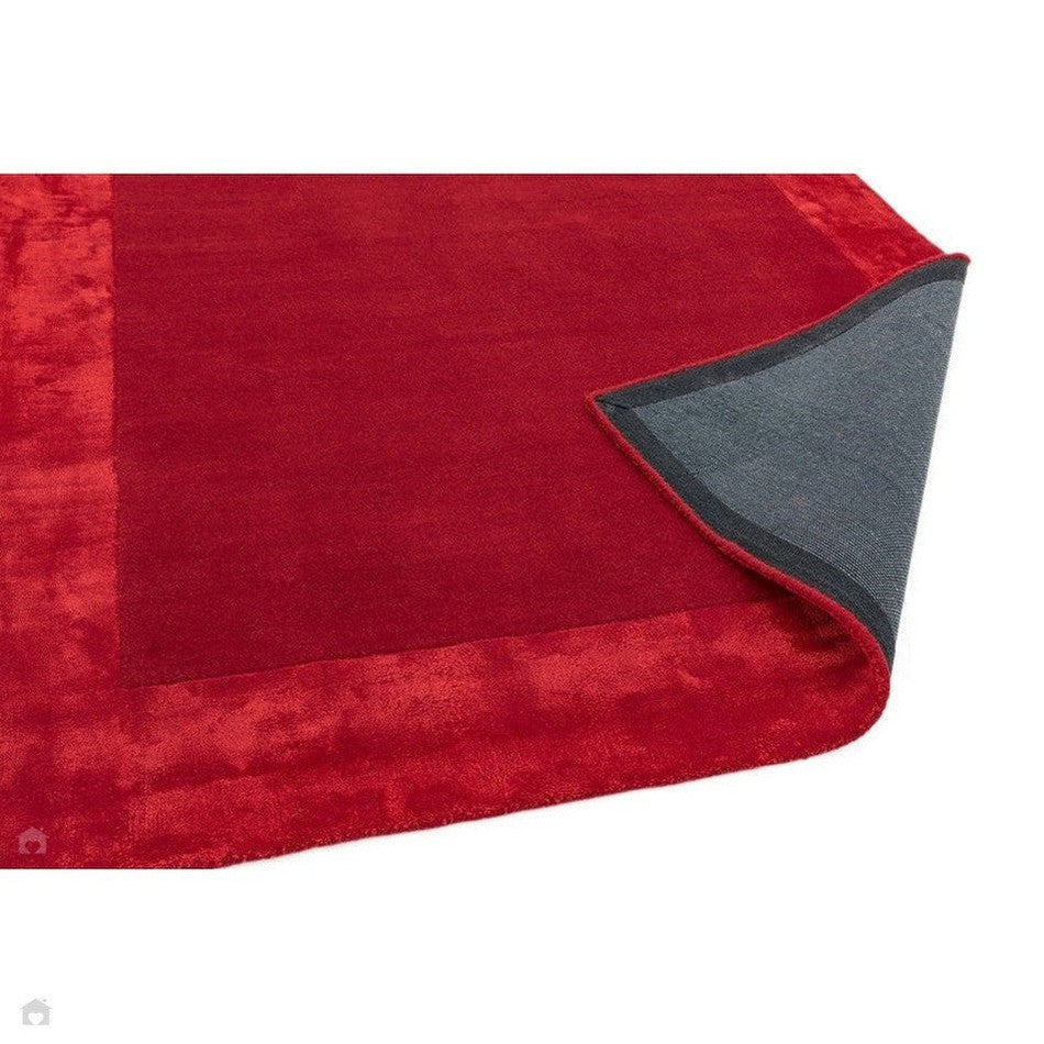 The Ascot Modern Plain Hand-Woven Wool Centred Loop Pile Metallic Shimmer Wide Viscose Border Crimson Red/Ruby Red Rug combines rich colour, tactile depth, and artisanal quality. The Crimson Red wool centre creates a strong, balanced foundation, while the Ruby Red viscose border adds definition and luxurious sheen.