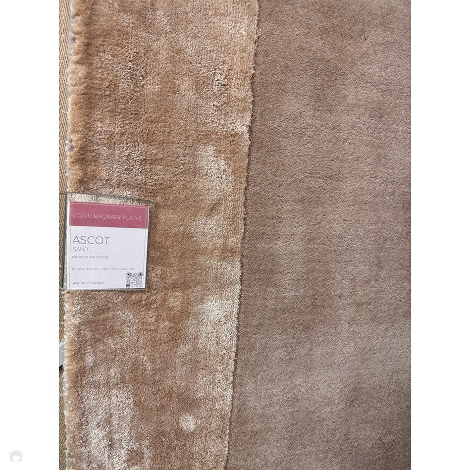 The Ascot Warm Sand Beige/Golden Taupe Rug exudes timeless sophistication, combining natural warmth with a subtle, refined shimmer. Hand-woven in India from a luxurious blend of 65% wool and 35% viscose, it balances the softness and durability of wool with the delicate sheen of viscose, creating a beautifully elegant focal point for modern and classic interiors alike.