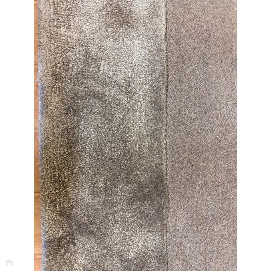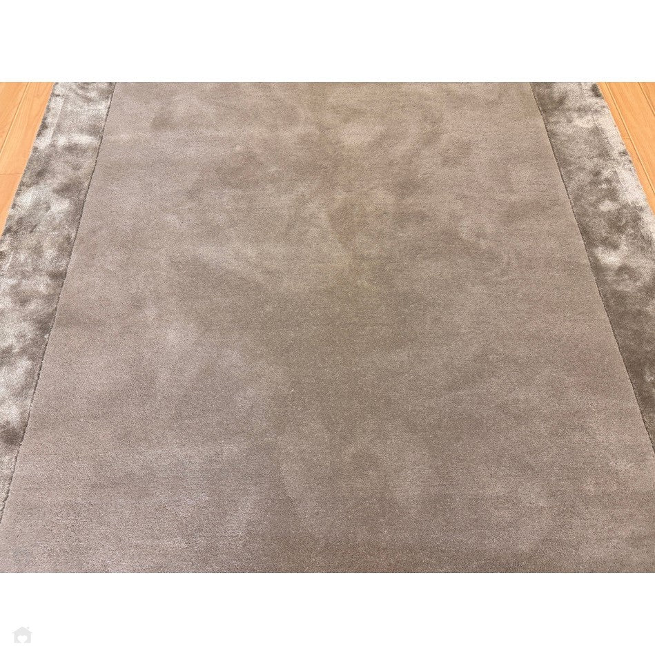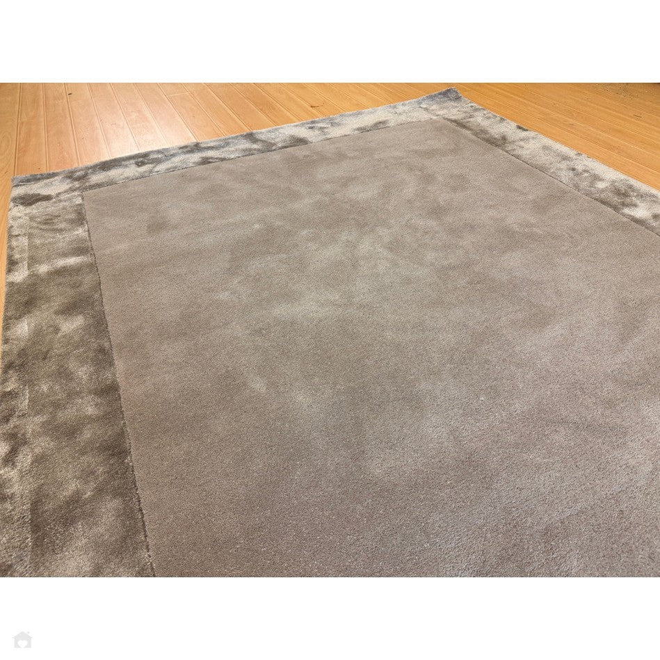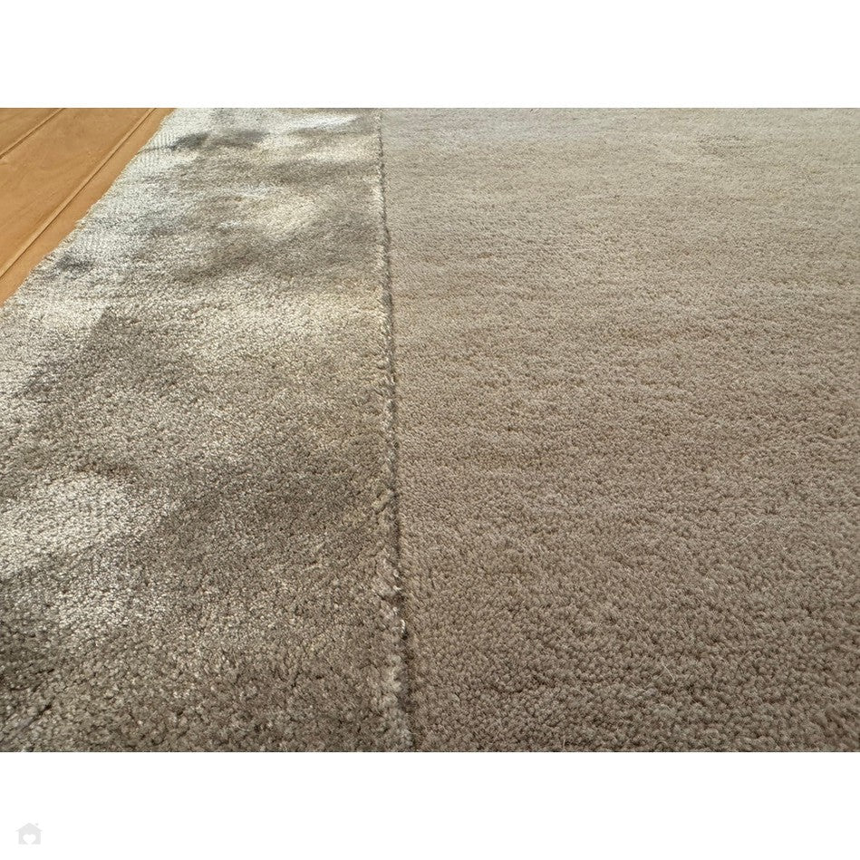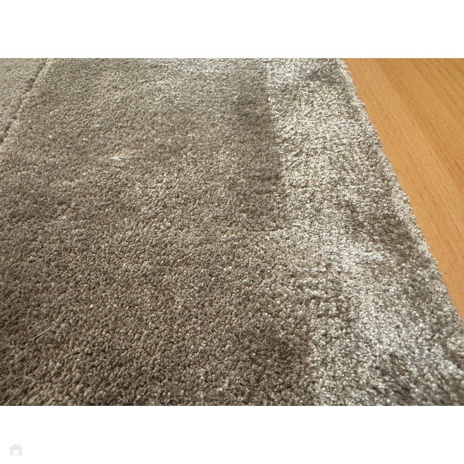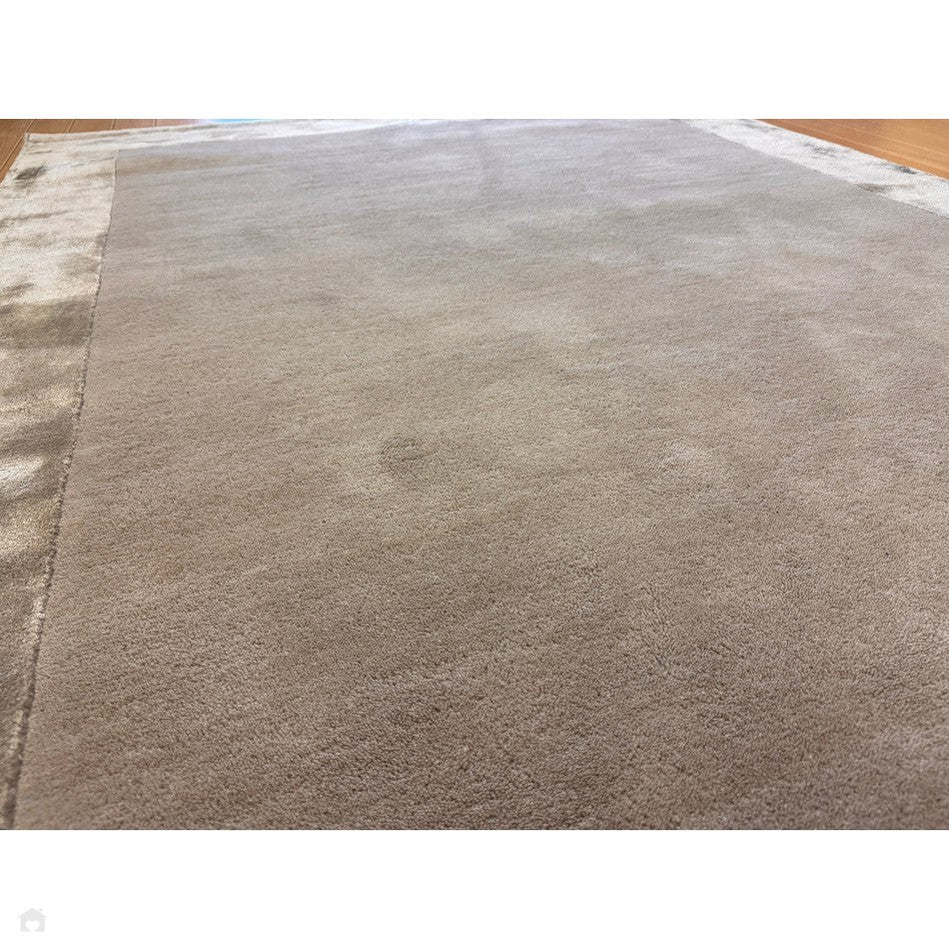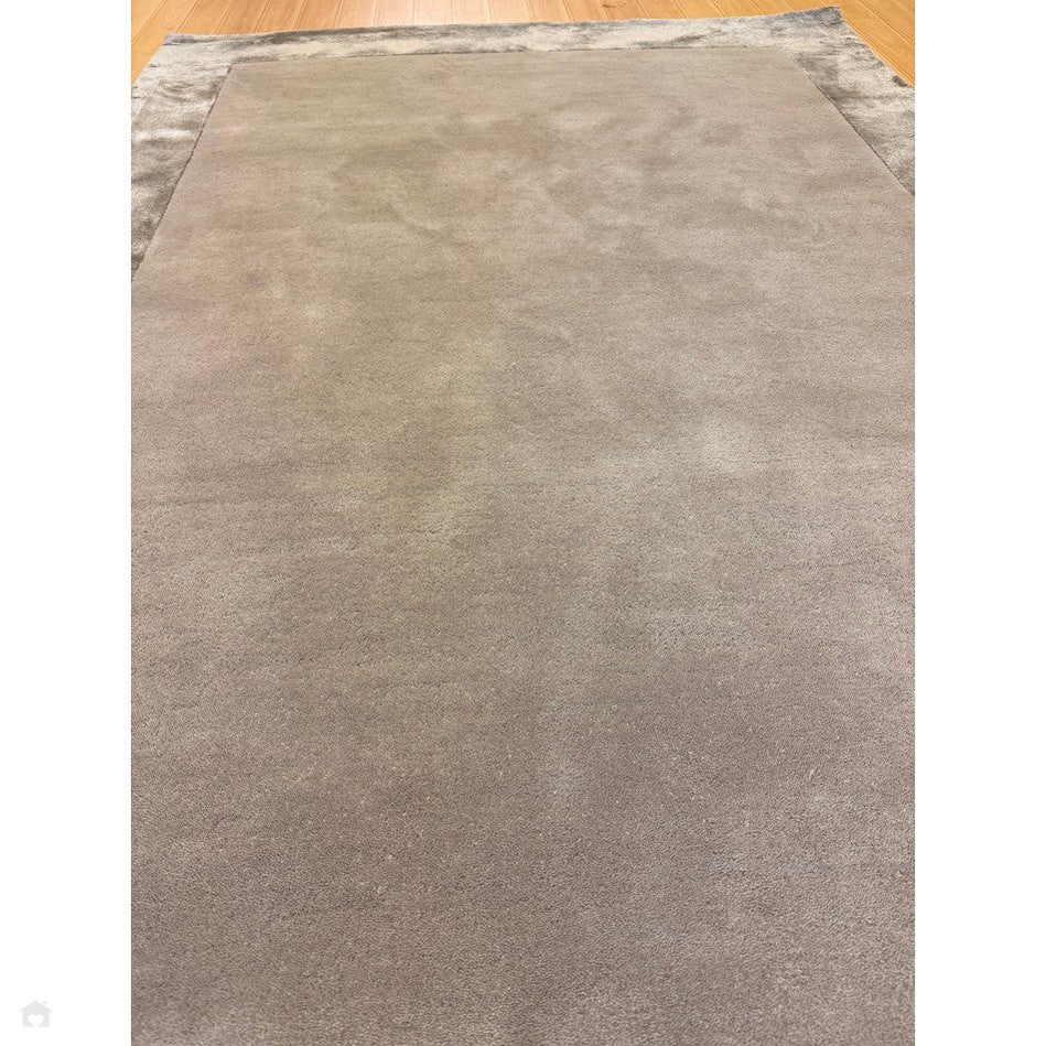 The loop pile wool centre delivers a smooth, matte foundation, while the lustrous viscose border frames the rug with a subtle, light-catching finish. This interplay of sheen and softness creates a quietly luxurious aesthetic that complements both minimal and classic décor styles. Ideal for living rooms, bedrooms, and formal spaces, it adds an understated yet elevated touch to any setting.