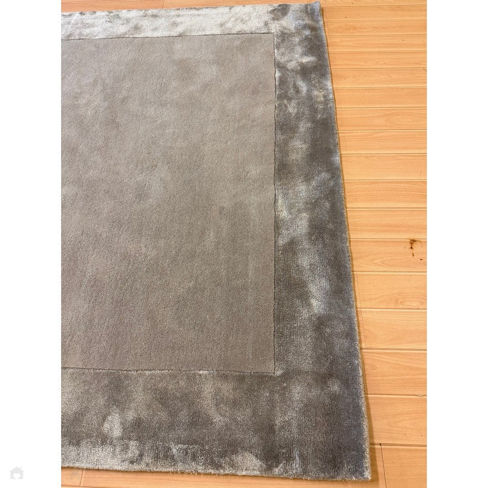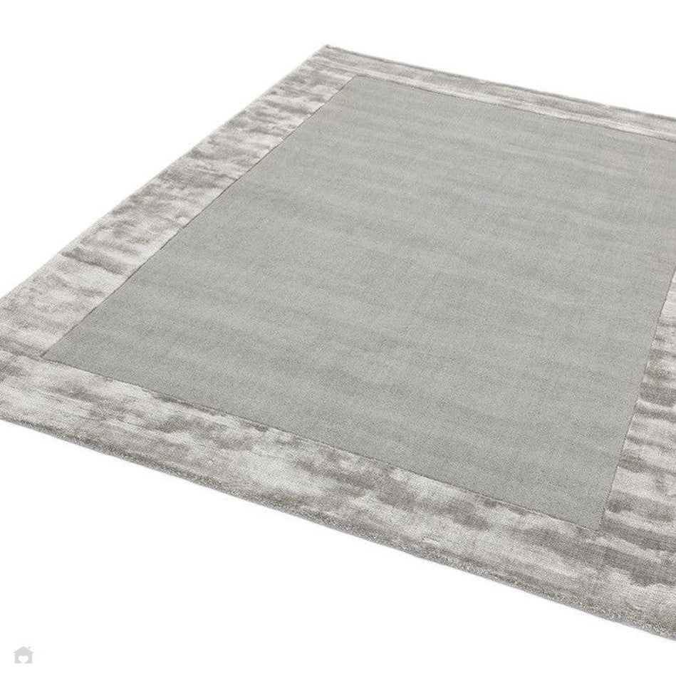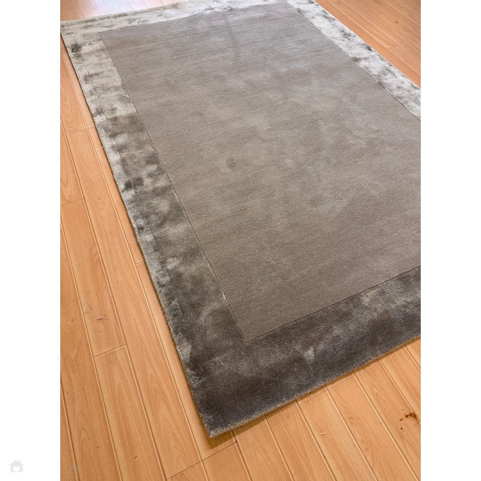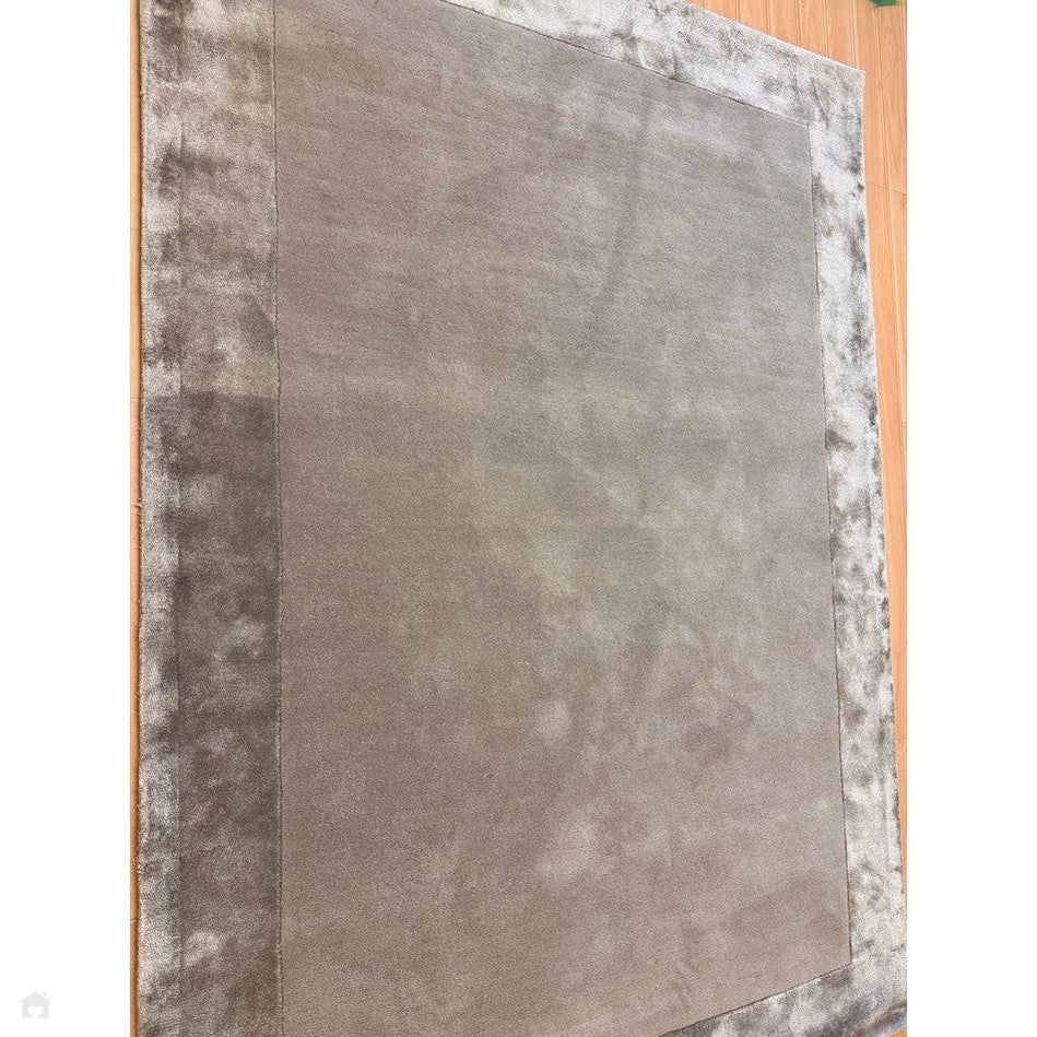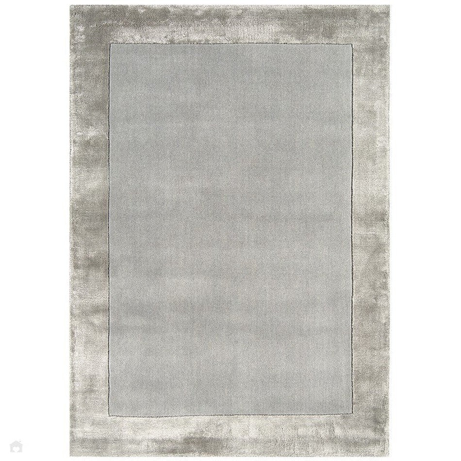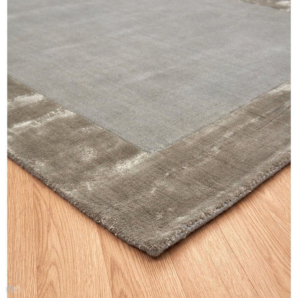 The Ascot Modern Plain Hand-Woven Wool Centred Loop Pile Metallic Shimmer Wide Viscose Border Pale Silver Grey/Platnium Grey Rug delivers a refined and elegant design defined by texture, tone, and craftsmanship. The Pale Silver Grey wool centre creates a calm, balanced aesthetic, while the Platinum Grey viscose border adds dimension through its reflective sheen, framing the rug with modern sophistication.