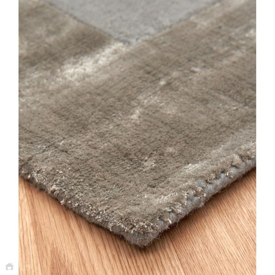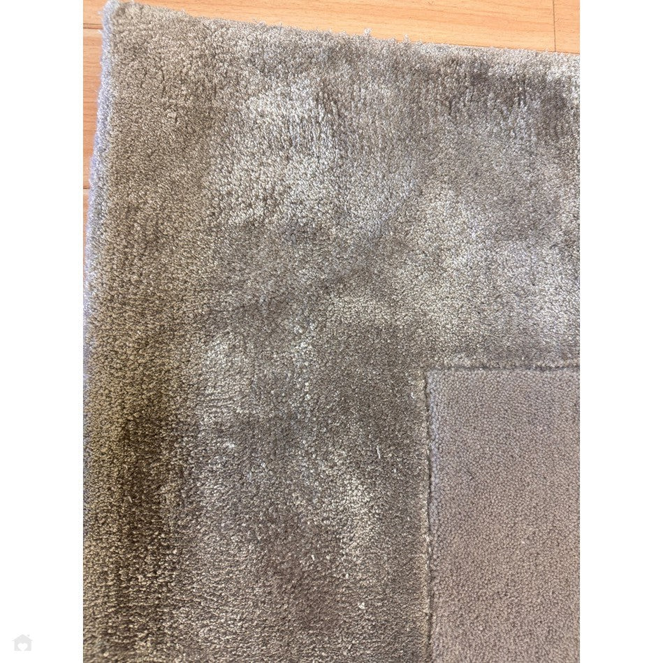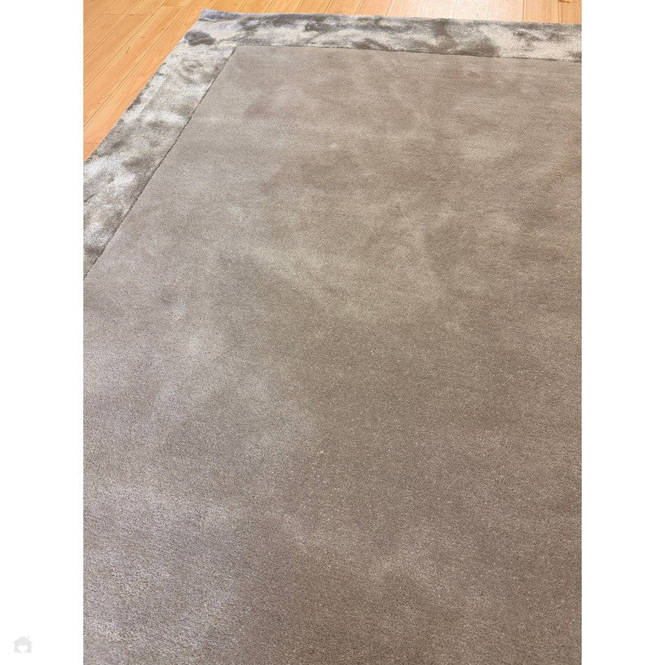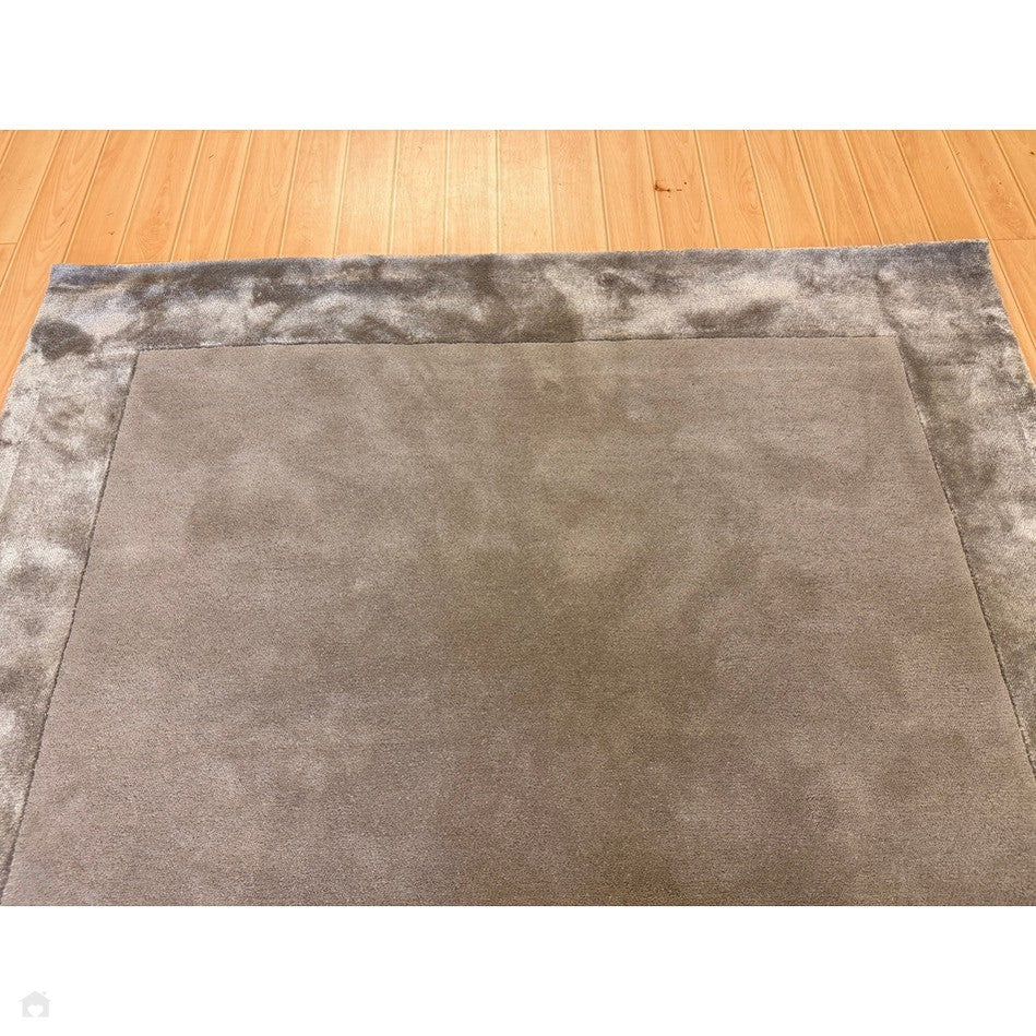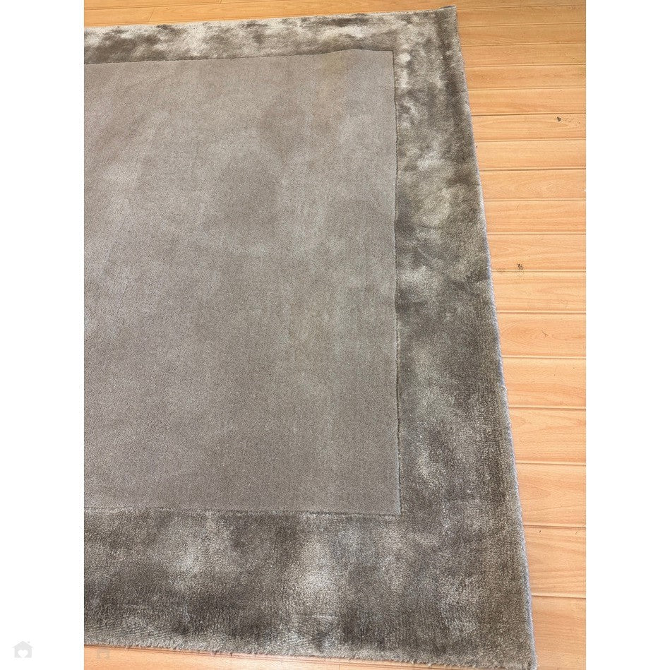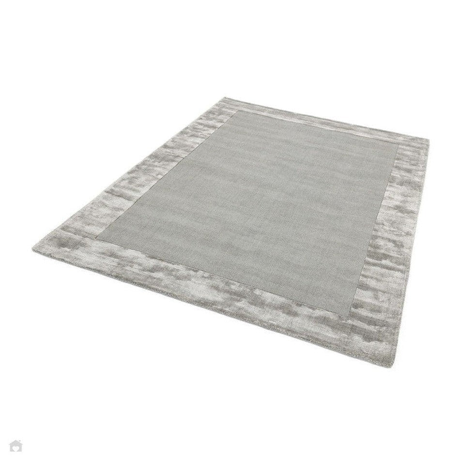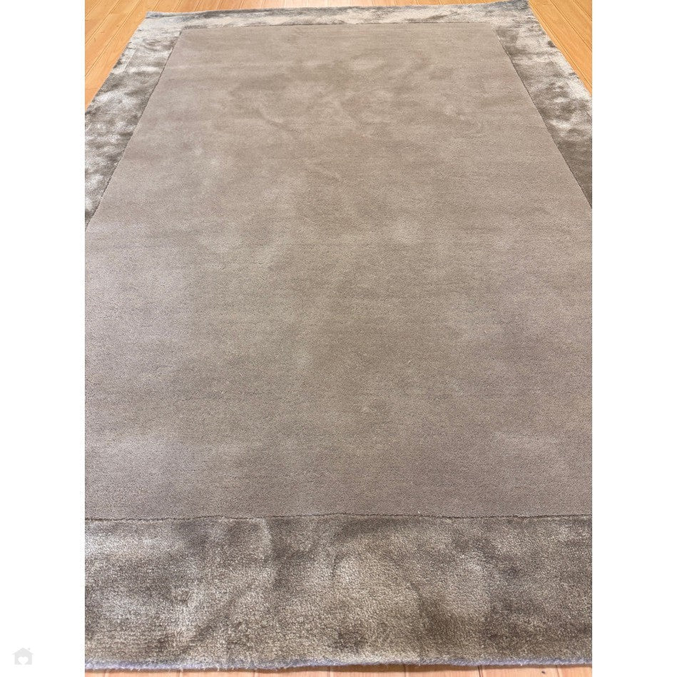 The Ascot Modern Plain Hand-Woven Wool Centred Loop Pile Metallic Shimmer Wide Viscose Border Pale Silver Grey/Platnium Grey Rug delivers a refined and elegant design defined by texture, tone, and craftsmanship. The Pale Silver Grey wool centre creates a calm, balanced aesthetic, while the Platinum Grey viscose border adds dimension through its reflective sheen, framing the rug with modern sophistication.