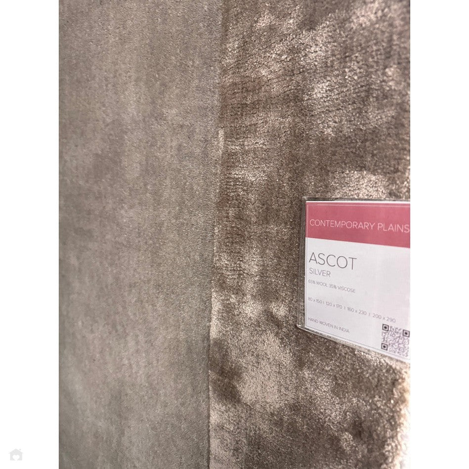 The Ascot Pale Silver Grey/Platinum Grey Rug embodies contemporary elegance, offering a perfect blend of soft texture and refined sheen. Hand-woven in India from a premium mix of 65% wool and 35% viscose, it balances the natural warmth of wool with the delicate shimmer of viscose, creating a beautifully sophisticated look for modern interiors.