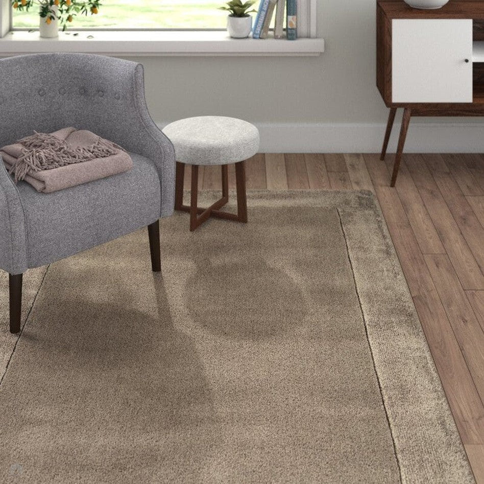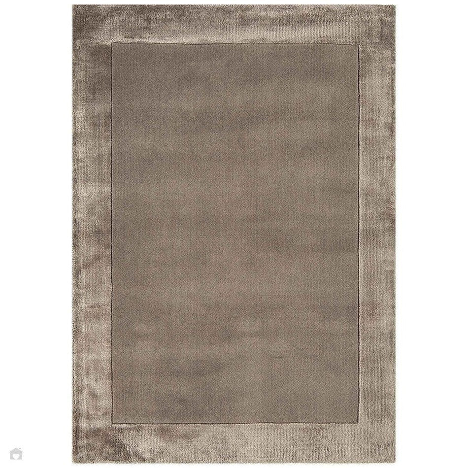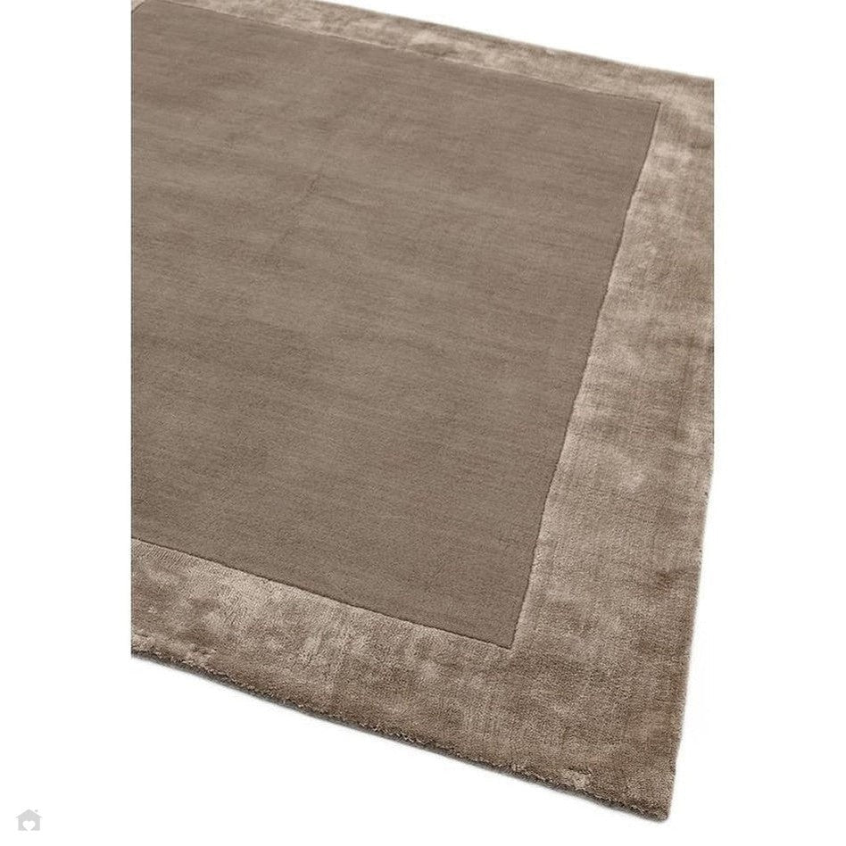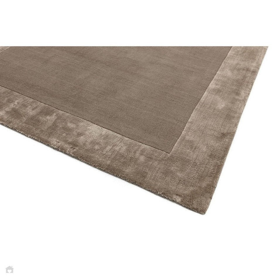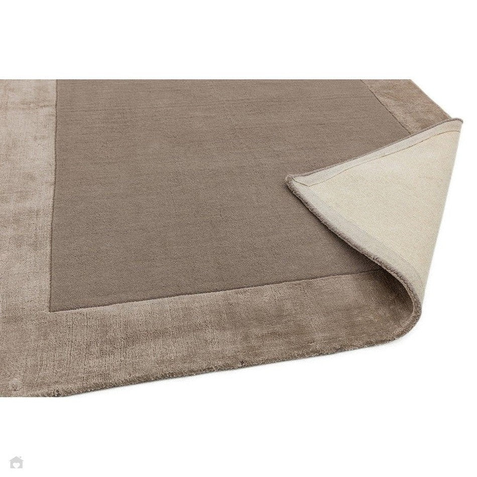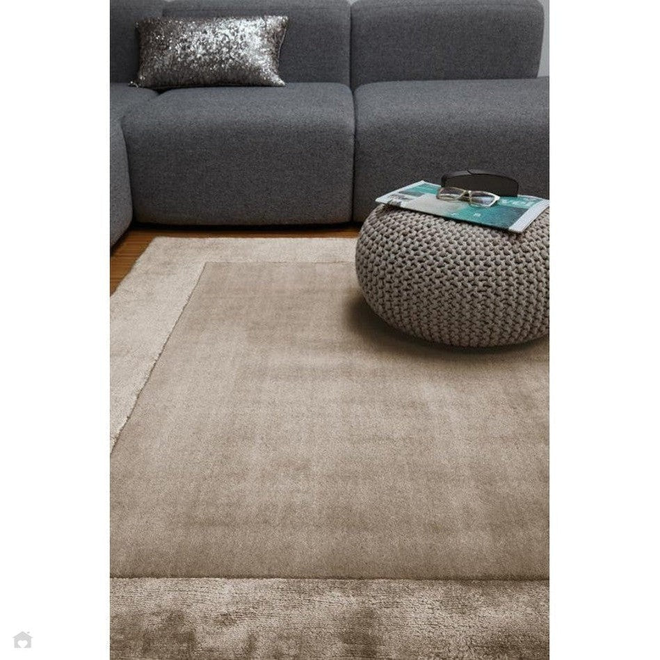 The Ascot Modern Plain Hand-Woven Wool Centred Loop Pile Metallic Shimmer Wide Viscose Border Soft Taupe/Champagne Taupe Rug showcases a perfect balance between texture and tone. The Soft Taupe wool centre creates calm warmth, while the Champagne Taupe viscose border brings a refined glow that subtly elevates the surrounding décor.