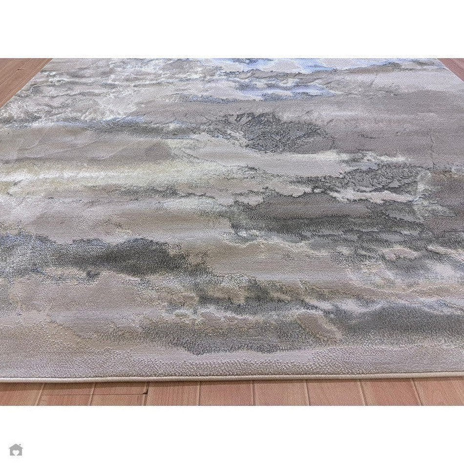 Aurora AU02 Cloud Modern Abstract Distressed Marbled Metallic Shimmer Textured High-Density Soft Smooth Low Profile Polyblend Short-Pile Grey/Beige/Silver/Cream/White Rug
