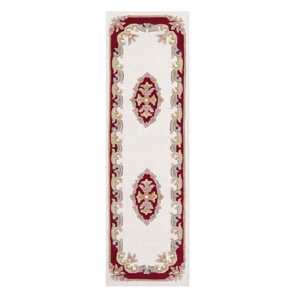 Introducing Royal Cream and Red Runner Rug, the perfect runner for traditionalists who appreciate fine craftsmanship. Hand-tufted in India with pure wool, this exquisite runner features an embossed Aubusson design. Sure to make a statement in any space. Timeless colours make this rug perfect for adding some traditional style to your home
