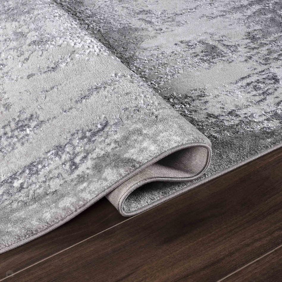 The Serenity 208 SRN08 Rug presents a sophisticated abstract marbled pattern in a refined palette of Steel Grey, Silver Grey, Charcoal Grey, Frosted White, and Pewter. Machine-woven from a durable polypropylene and polyester blend, this rug offers a soft-touch 12mm cut pile with a subtle sheen that catches the light beautifully, enhancing its textural appeal. The modern distressed design is both versatile and striking, making it ideal for contemporary living rooms, bedrooms, and home offices where you want to introduce depth and understated elegance. Its non-shedding, low-maintenance construction ensures it remains as practical as it is stylish. The pile’s direction subtly shifts under light, making the rug appear lighter or darker depending on the viewing angle – a feature that adds dimension and visual intrigue.