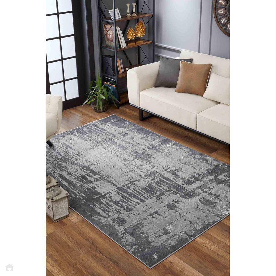The Serenity 211 SRN11 Grey Rug features an elegant abstract painterly pattern that blends Charcoal Grey, Mid Grey, Soft Silver Grey, and Ivory into a sophisticated tonal composition. Machine woven from a durable polypropylene and polyester blend, it offers a soft-touch 12mm cut pile with a subtle sheen that reflects the light beautifully. Its versatile monochrome palette makes it perfect for modern living rooms, dining areas, or home offices, adding texture and depth to neutral interiors. Designed to be low-maintenance, non-shedding, and hard-wearing, this rug is ideal for busy homes seeking a contemporary yet timeless style. The pile’s direction subtly shifts under light, making the rug appear lighter or darker depending on the viewing angle – a feature that adds dimension and visual intrigue.