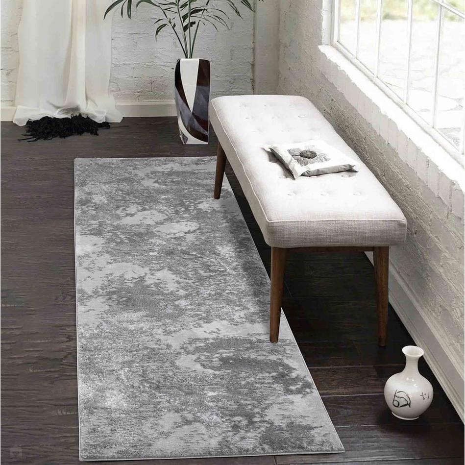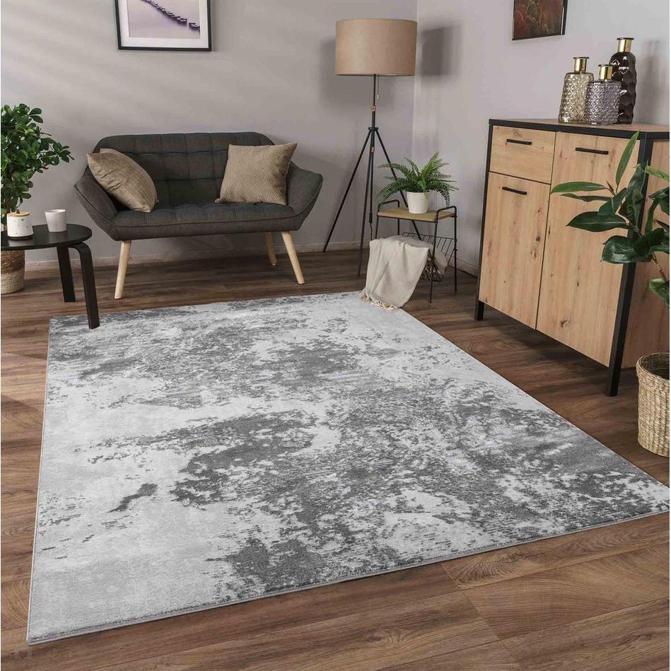 The Serenity 271 SRN71 Grey Rug combines an elegant abstract pattern with a rich tonal interplay of Mid Grey, Charcoal, Silver, Pale Grey, and subtle Steel Blue-Grey accents. Machine-woven in Turkey from a premium polypropylene and polyester blend, this rug features a 12mm soft, textured pile with a shimmering finish that delivers both comfort underfoot and visual sophistication. Its durable construction ensures a non-shedding surface, making it practical for busy households. Perfect for living rooms, bedrooms, hallways, and open-plan spaces, the Serenity Grey Rug enhances your space with its reflective sheen and contemporary appeal. The pile’s direction subtly shifts under light, making the rug appear lighter or darker depending on the viewing angle – a feature that adds dimension and visual intrigue.