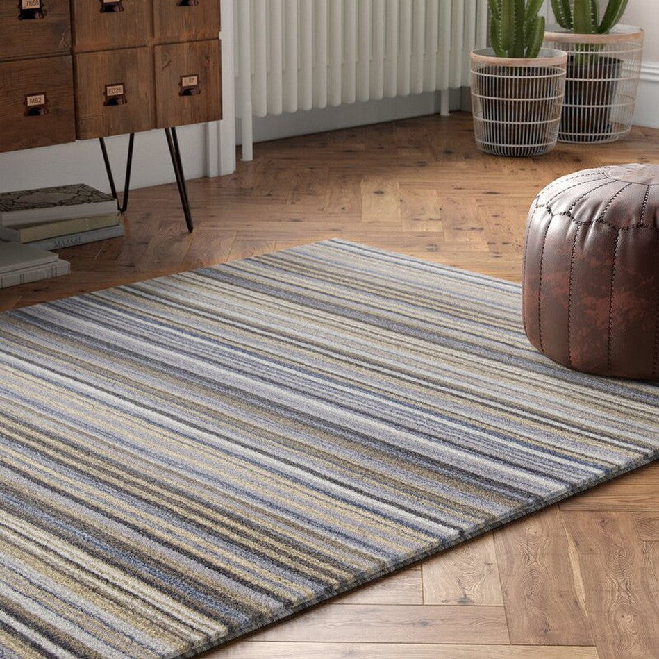 Elevate your home with the timeless style of the Carter Collection. This modern striped wool rug blends soft natural tones with versatile greys, creating a calm and balanced aesthetic that suits a wide range of interiors.