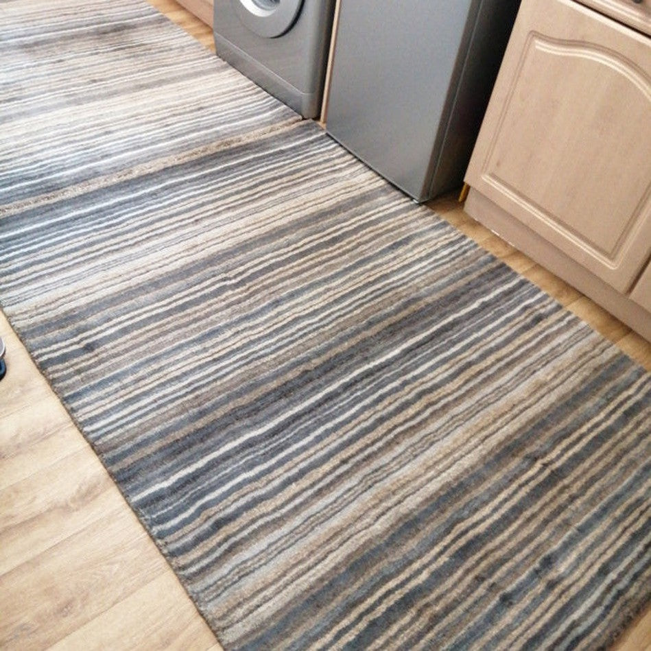 Introducing the Carter Modern Stripe Wool Rug in Grey/Natural