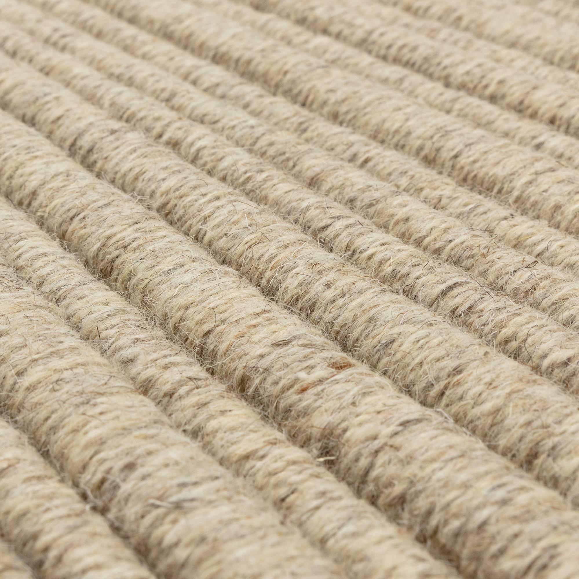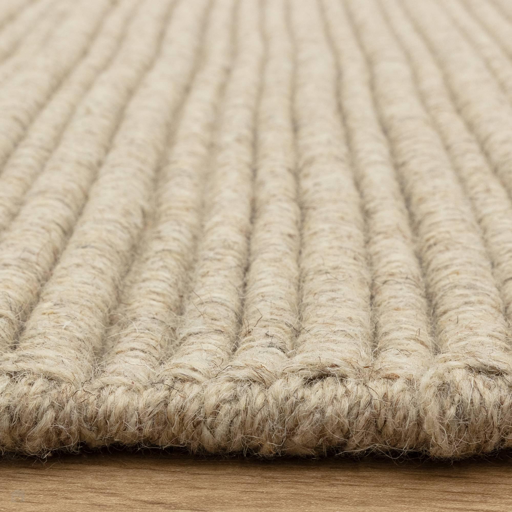 Hand-woven in India from a natural blend of 83% undyed wool and 17% polyester, the Ravine Sand Wool Rug embodies understated modern texture. The loop pile construction forms soft, irregular ridges across the surface, enhancing its textural depth and natural character. The low 6mm profile and unbacked weave create a flexible, tactile rug ideal for layering in contemporary or Scandi-inspired spaces. Durable, textural, and beautifully natural in tone, Ravine brings quiet sophistication to any interior.