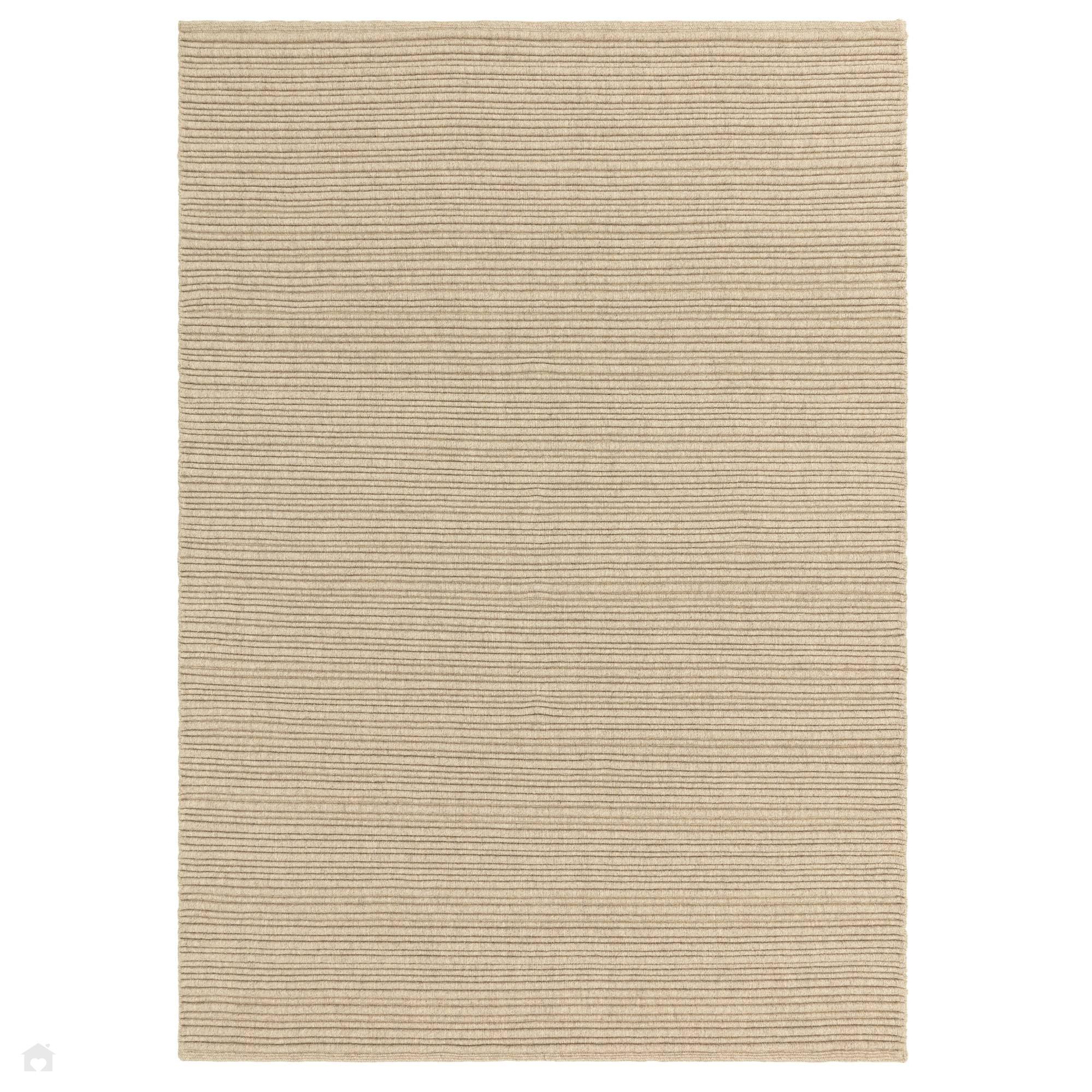 The Ravine Sand Wool Rug showcases a beautifully woven ribbed loop pile crafted from undyed wool, offering both texture and tonal variation. The interplay of Warm Sand, Natural Oat, Fawn Beige, and Speckled Taupe creates an elegant, grounded palette that complements both minimalist and rustic interiors. With its 6mm low-profile height, hand-woven unbacked construction, and blend of natural durability and modern simplicity, this rug provides a refined, tactile foundation perfect for living rooms, dining areas, and serene bedroom spaces.