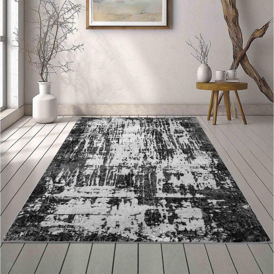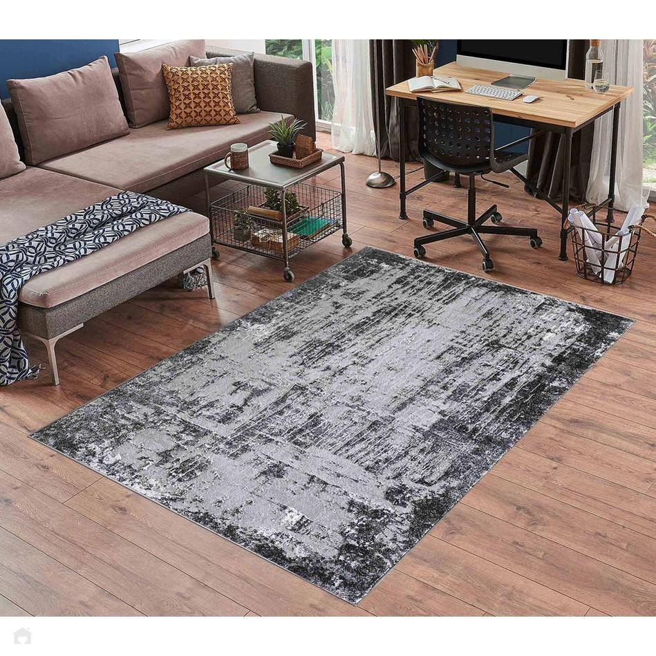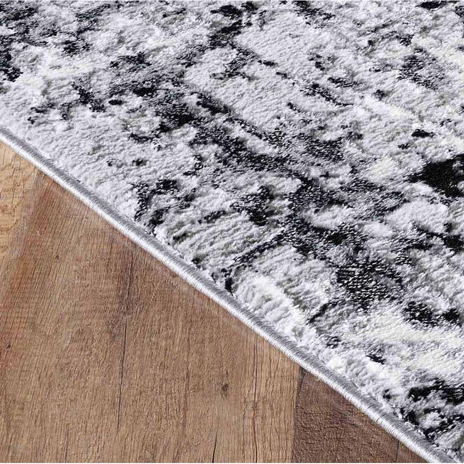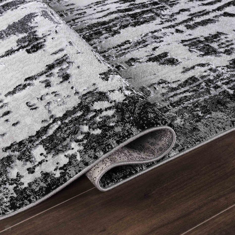 The Serenity 211 SRN11 Rug features a dramatic abstract design with a distressed, painterly effect that adds modern sophistication to any space. Its refined palette of Mid Grey, Charcoal Black, Light Grey, and Off-White creates a striking high-contrast look that works beautifully in monochrome and minimalist interiors. Crafted from a durable polypropylene and polyester blend, it boasts a soft-touch 12mm cut pile with a subtle sheen that catches the light for an elegant finish. Non-shedding, low-maintenance, and hard-wearing, this rug is ideal for living rooms, bedrooms, and open-plan areas where a statement piece is desired. The pile’s direction subtly shifts under light, making the rug appear lighter or darker depending on the viewing angle – a feature that adds dimension and visual intrigue.