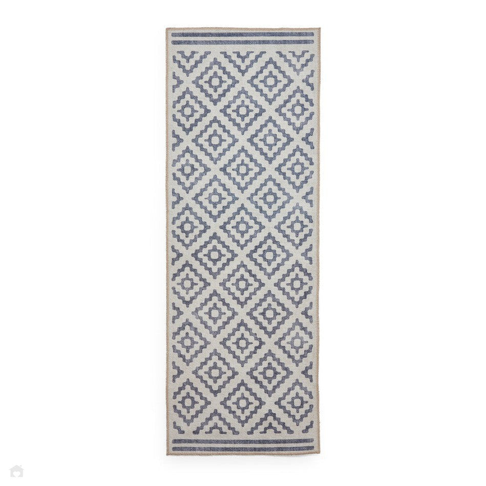 The Washable Coral H1058 Blue Rug combines relaxed coastal tones with a crisp geometric pattern in Denim Blue, Steel Blue, Pale Grey, and Ivory. Its flatweave, low-profile construction provides a smooth and durable surface ideal for placement beneath furniture, while digitally printed detailing ensures sharp definition and colour precision. Made in Turkey from mixed recycled polyester, this lightweight and fully washable rug offers an eco-conscious and practical choice for contemporary homes. With its 0.2cm slim profile, it’s perfect for kitchens, dining areas, and modern interiors seeking a cool, understated pop of colour.