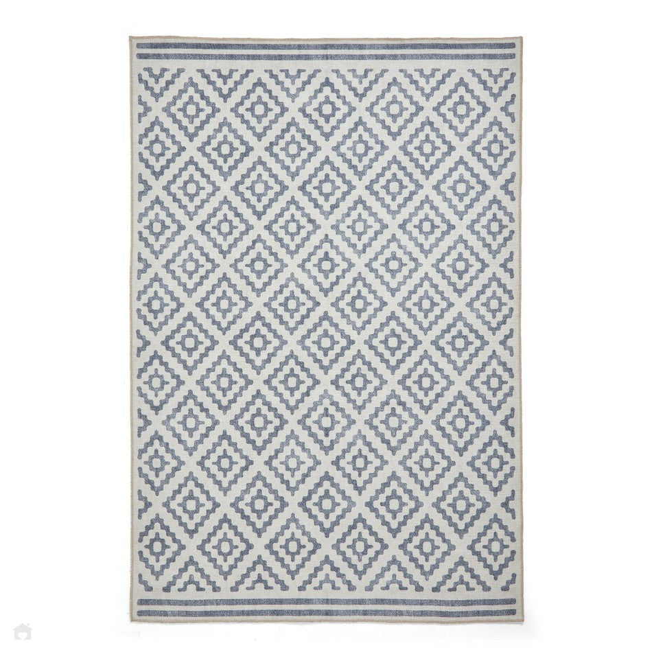 The Washable Coral H1058 Blue Rug showcases a modern geometric diamond design in a flatweave, low-profile pile, offering subtle texture and a clean, contemporary finish. Crafted from lightweight, digitally printed polyester flatweave, it blends sharp pattern detail with practical, easy-care functionality. Made in Turkey from mixed recycled polyester, this rug combines sustainable materials with high-definition digital printing and a smooth woven texture. With its 0.2cm slim profile, it sits neatly under furniture and is perfectly suited to modern living spaces.