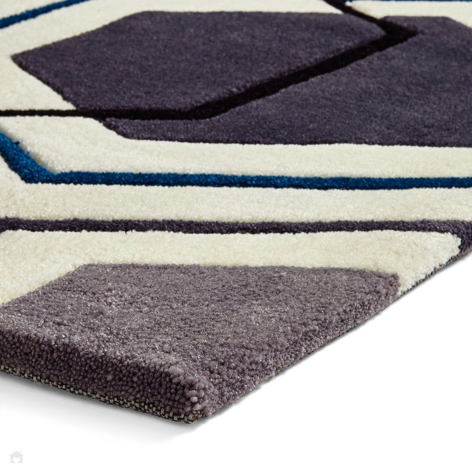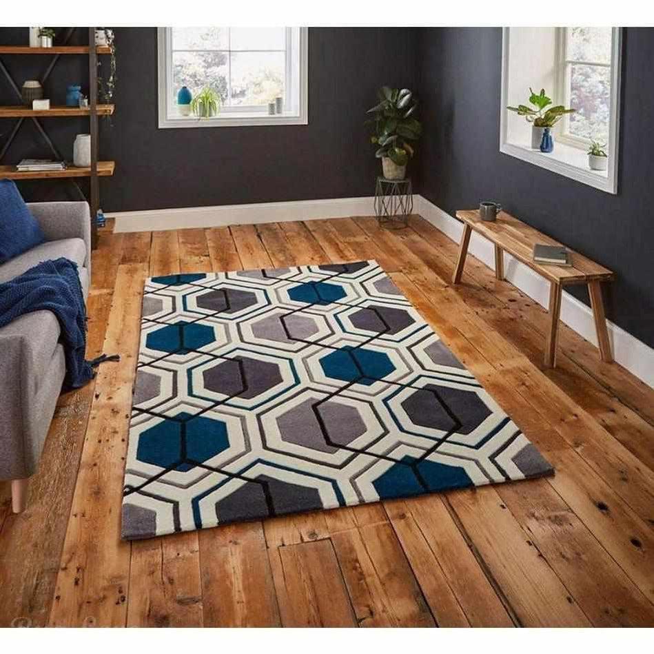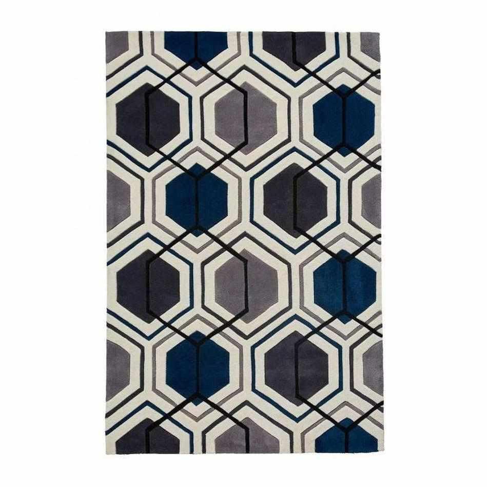 This contemporary rug features a striking hexagonal pattern in a modern palette of ivory, navy blue, dark grey, light grey, and black. The combination of deep navy tones and crisp ivory creates a bold yet balanced look, ideal for both modern and industrial-style interiors. The high-contrast design adds depth and dimension, making it a statement piece in any space. The geometric diamond pattern in contrasting Grey and Navy tones creates a striking visual effect, adding depth and character to any room. Designed with the perfect pile height, it provides a plush, comfortable surface, making it ideal for both relaxation and everyday use. This rug’s versatile colour combination complements a range of interior styles, from minimalist to bold and eclectic. Place it at the centre of your living room with a sleek coffee table and modern furnishings for a chic and inviting look, or use it to anchor your dining area, creating a refined and welcoming atmosphere.