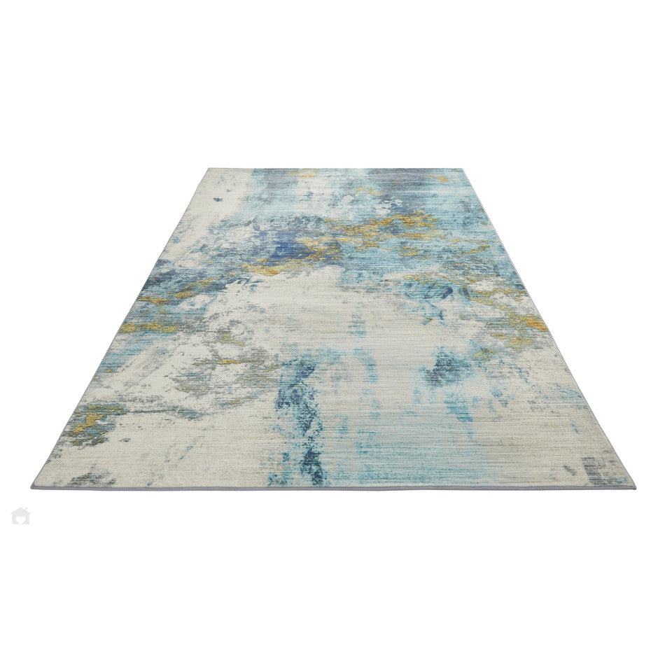 The Washable Lux LUX04 Rug blends Ivory, Sky Blue, Royal Blue, Steel Grey, and Golden Ochre in a sophisticated abstract marbled composition. Its faux rabbit fur texture and 9mm short pile deliver exceptional softness, while the machine-made, non-shedding construction ensures durability and long-lasting performance. Featuring a jute backing and stain-guard finish, this fully washable rug combines elegance and practicality. Ideal for living rooms, bedrooms, or modern open-plan interiors, it introduces a refined splash of colour and texture, creating a calm yet striking centrepiece that complements both warm and cool décor schemes.