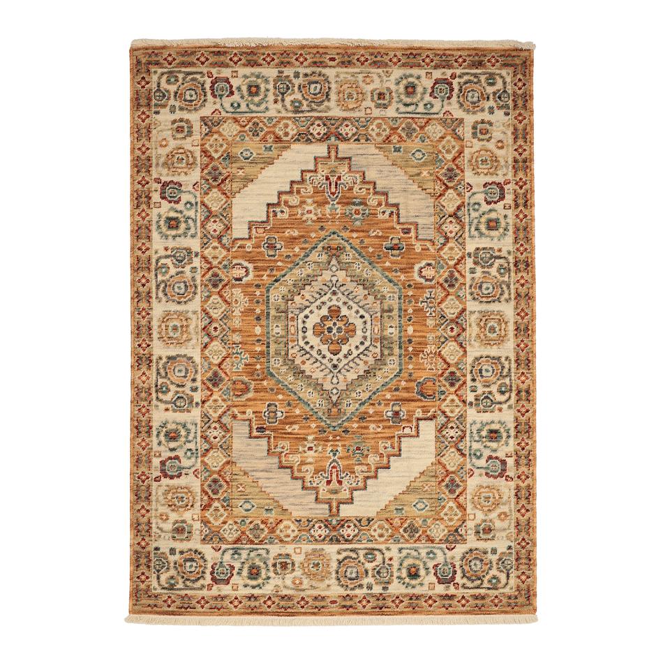 Ivory – Used throughout the central medallion and surrounding motifs, providing light contrast and highlighting the intricate pattern.