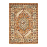 Teal Blue – Present in small highlights throughout the medallion and motifs, adding a pop of cool contrast.