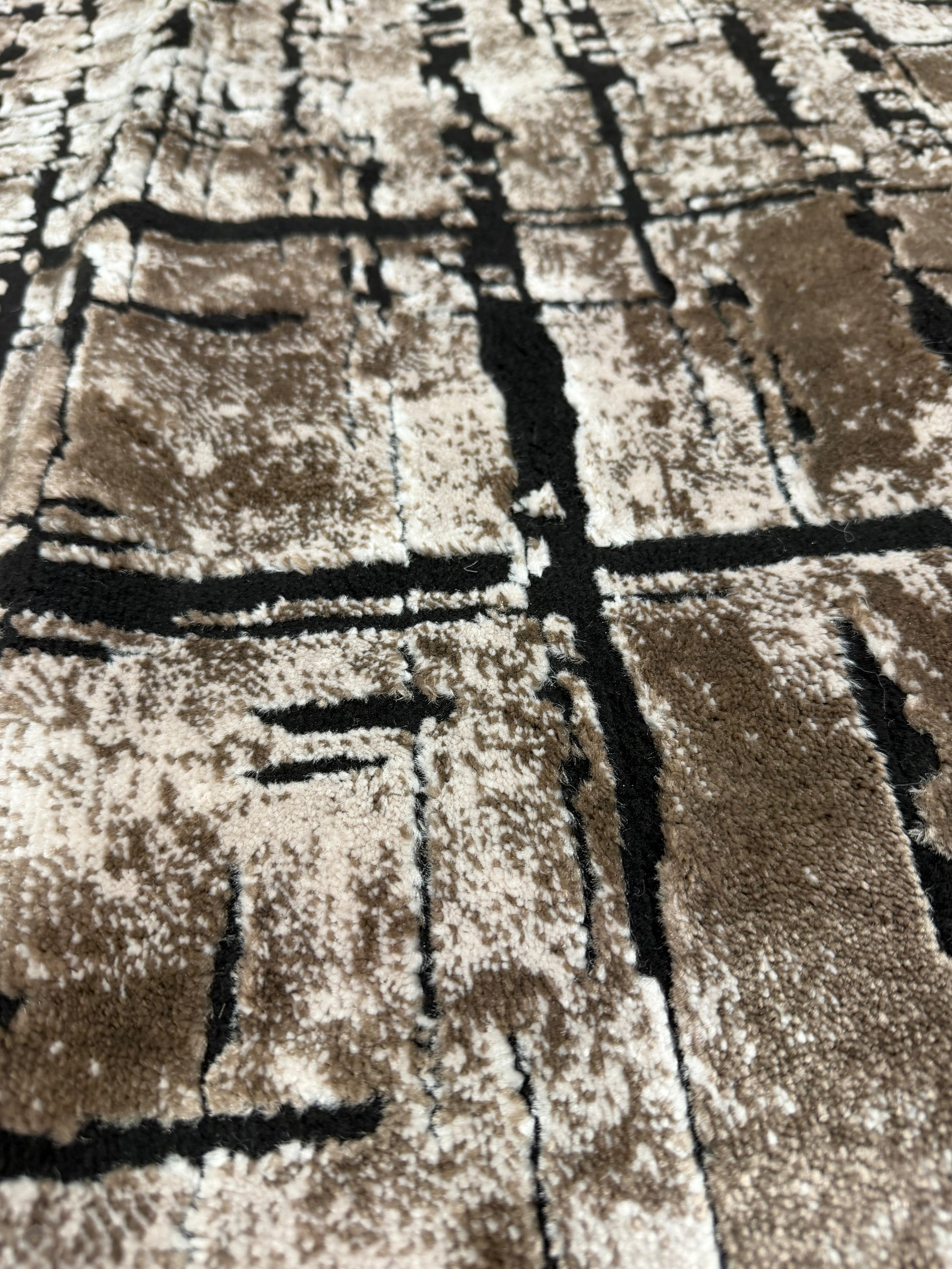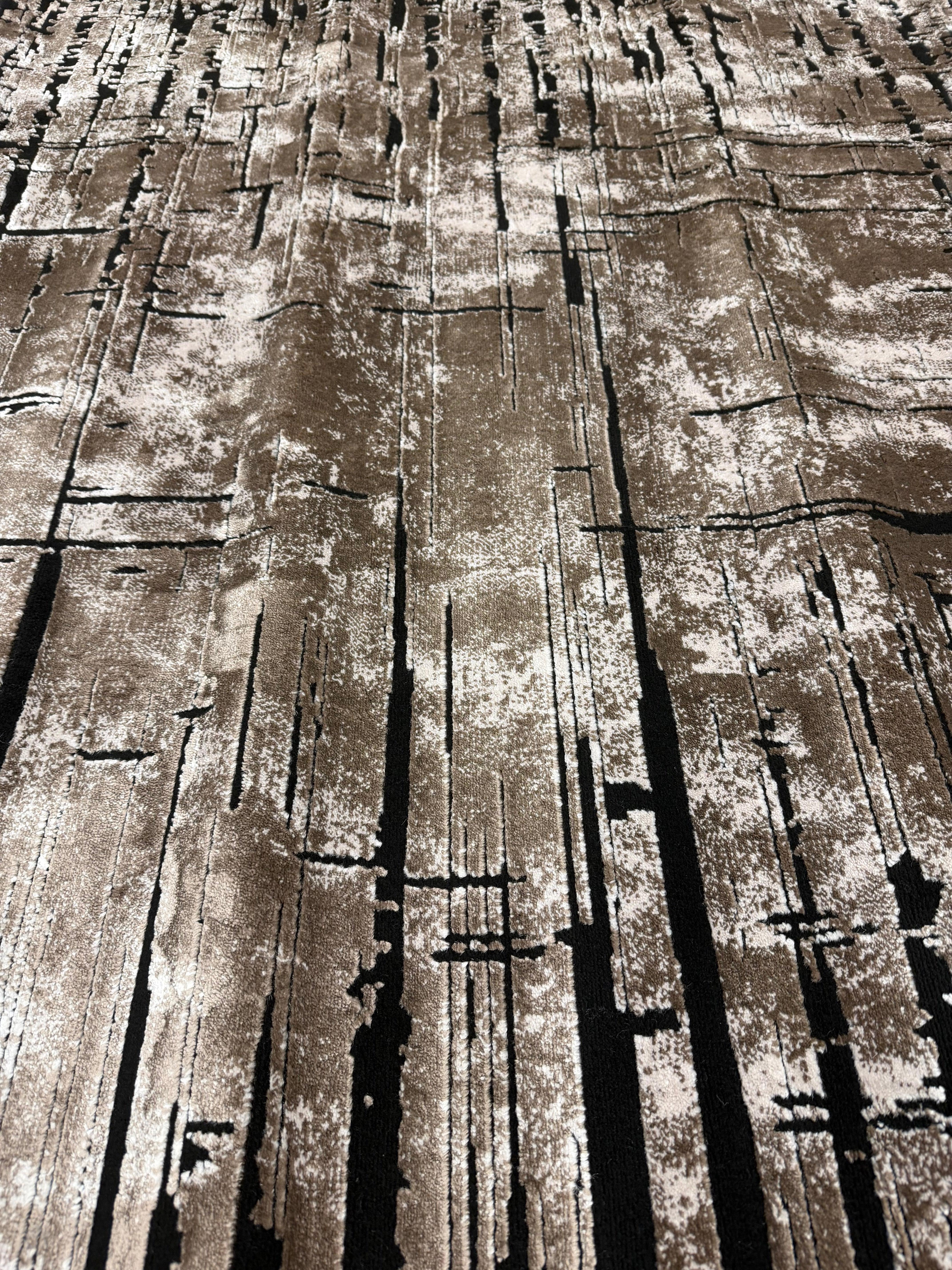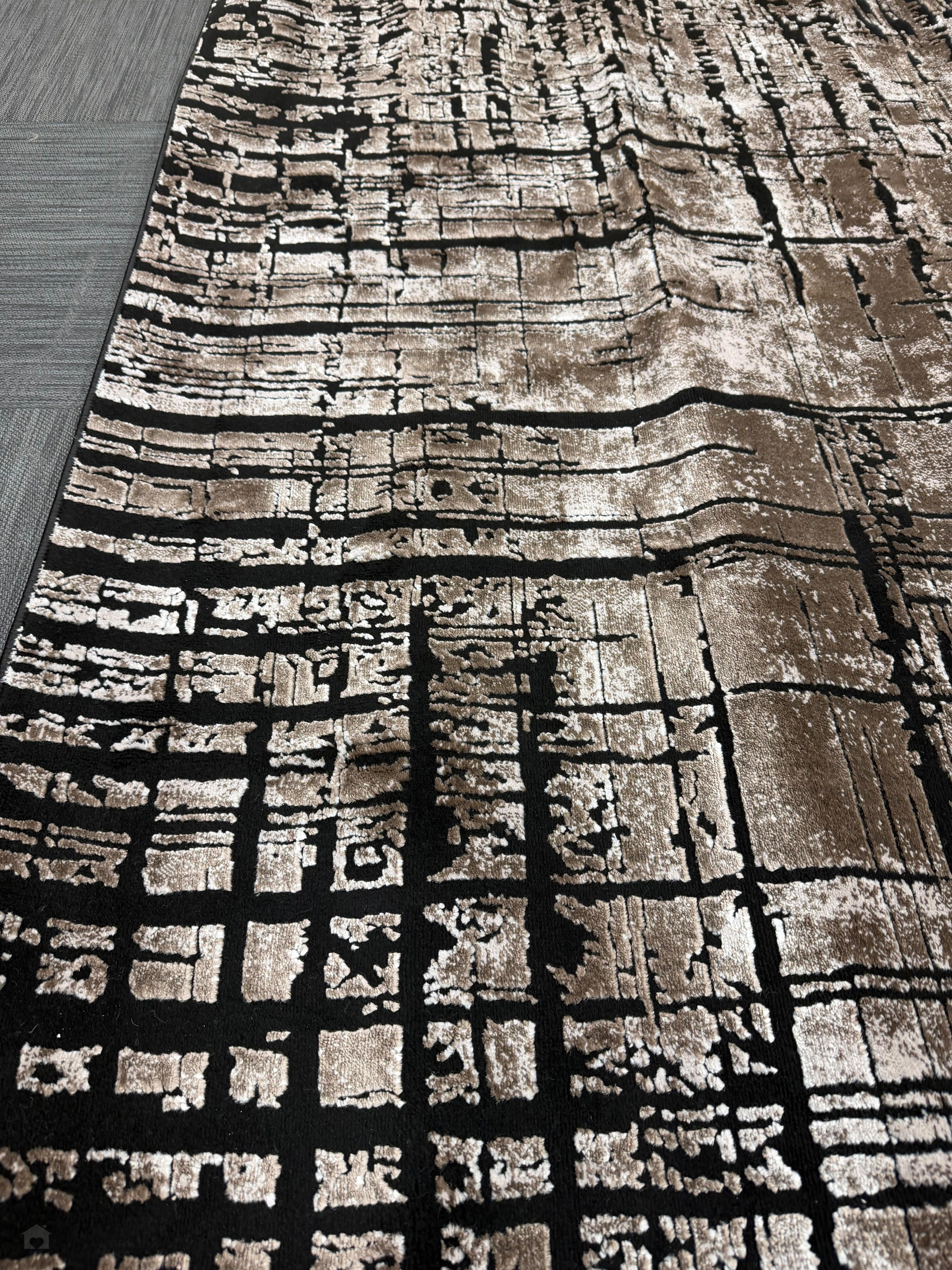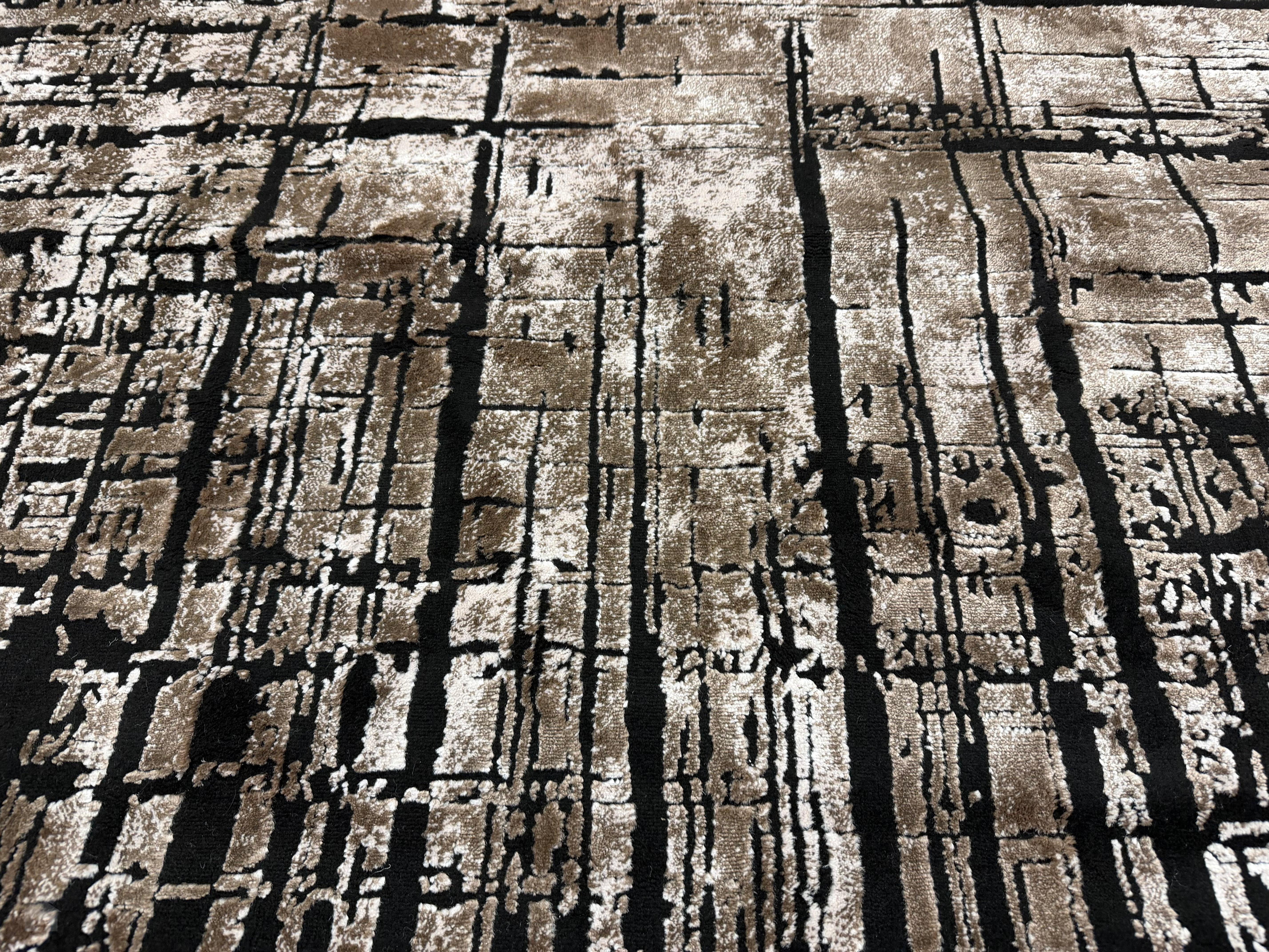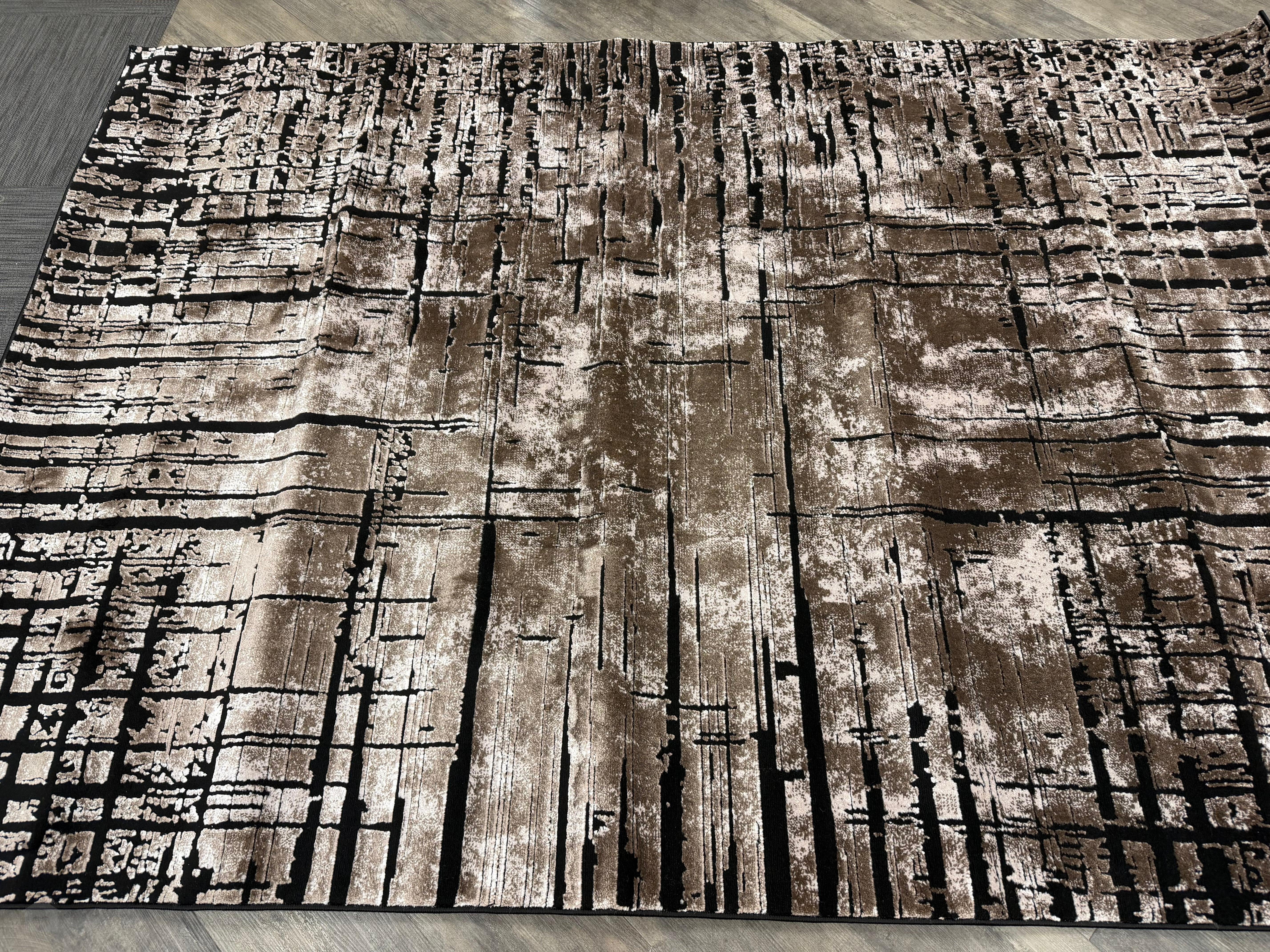 The Belgravia Nexus Mocha Rug features a modern abstract design with a bold linear pattern layered over a distressed, textured base. Its palette of Mocha Brown, Taupe, Ivory, and Charcoal creates a warm yet contemporary aesthetic, making it versatile for both neutral and statement interiors. The velvet-like cut pile offers a metallic sheen that changes with the light, giving this rug a luxurious, designer finish. Crafted in Turkey from a durable blend of polypropylene and polyester with a cotton backing, and with a 12 mm pile height, this rug combines resilience with comfort, making it ideal for modern living spaces, lounges, and bedrooms seeking both style and practicality. The pile’s direction subtly shifts under light, making the rug appear lighter or darker depending on the viewing angle – a feature that adds dimension and visual intrigue.