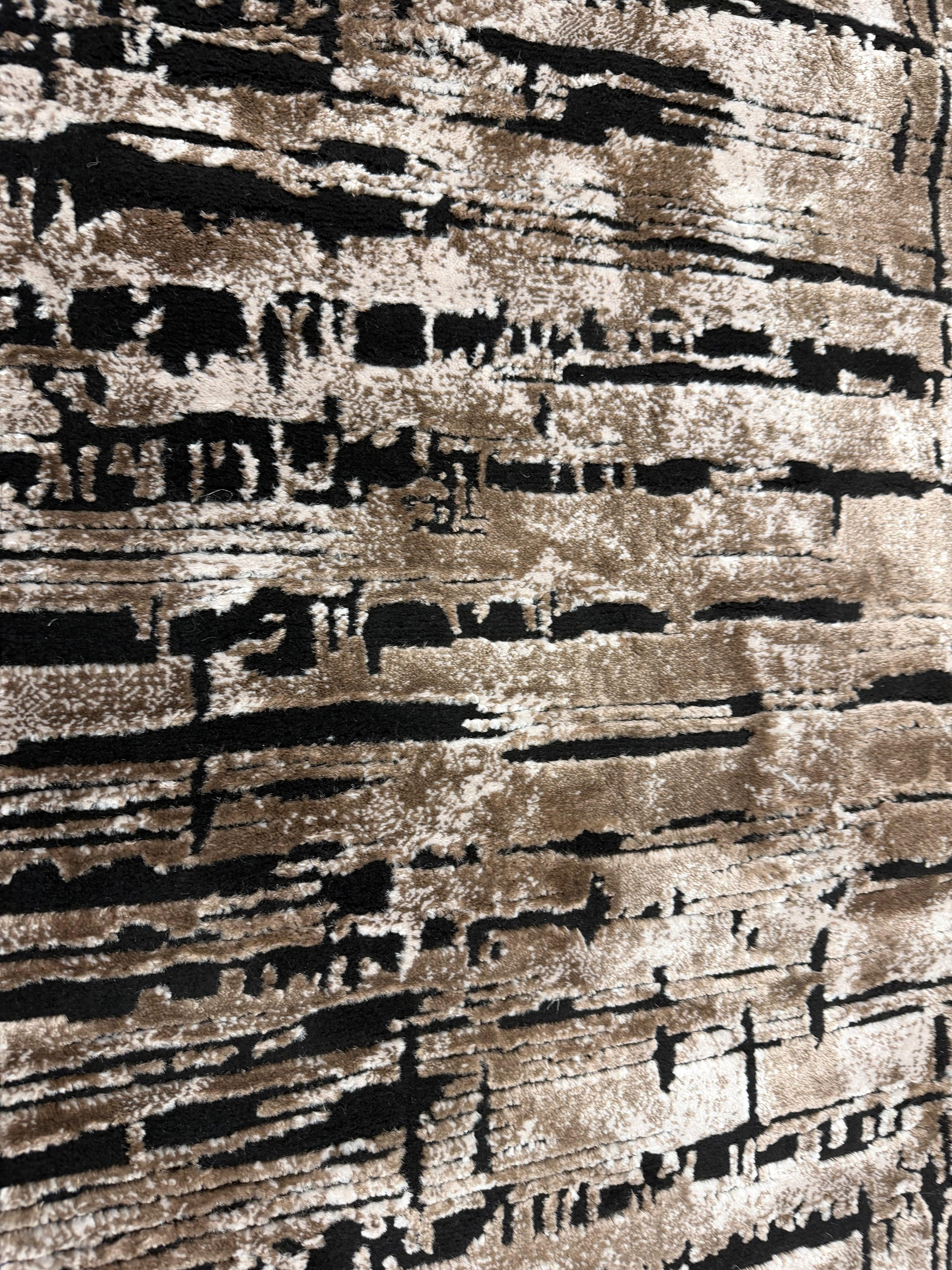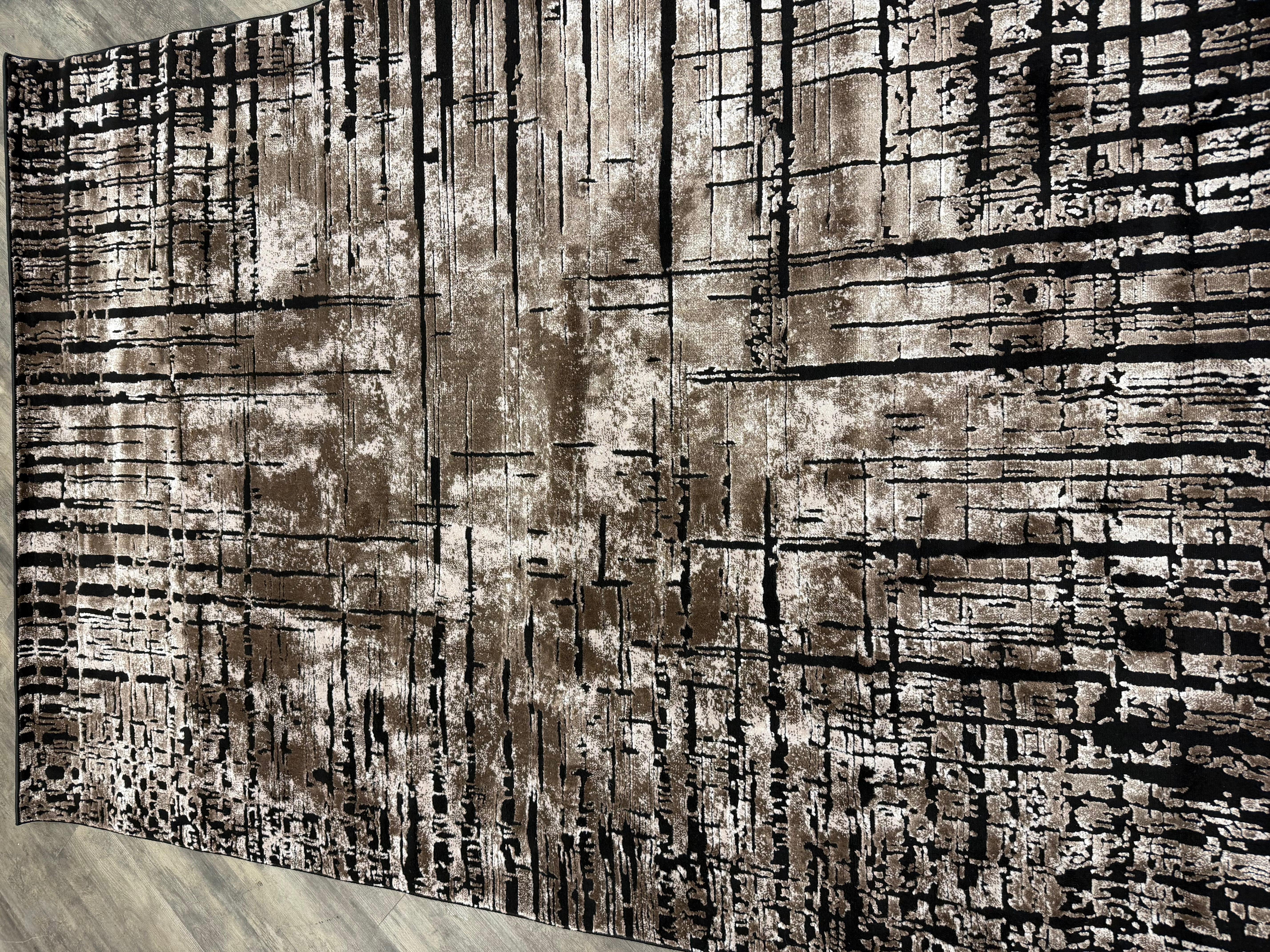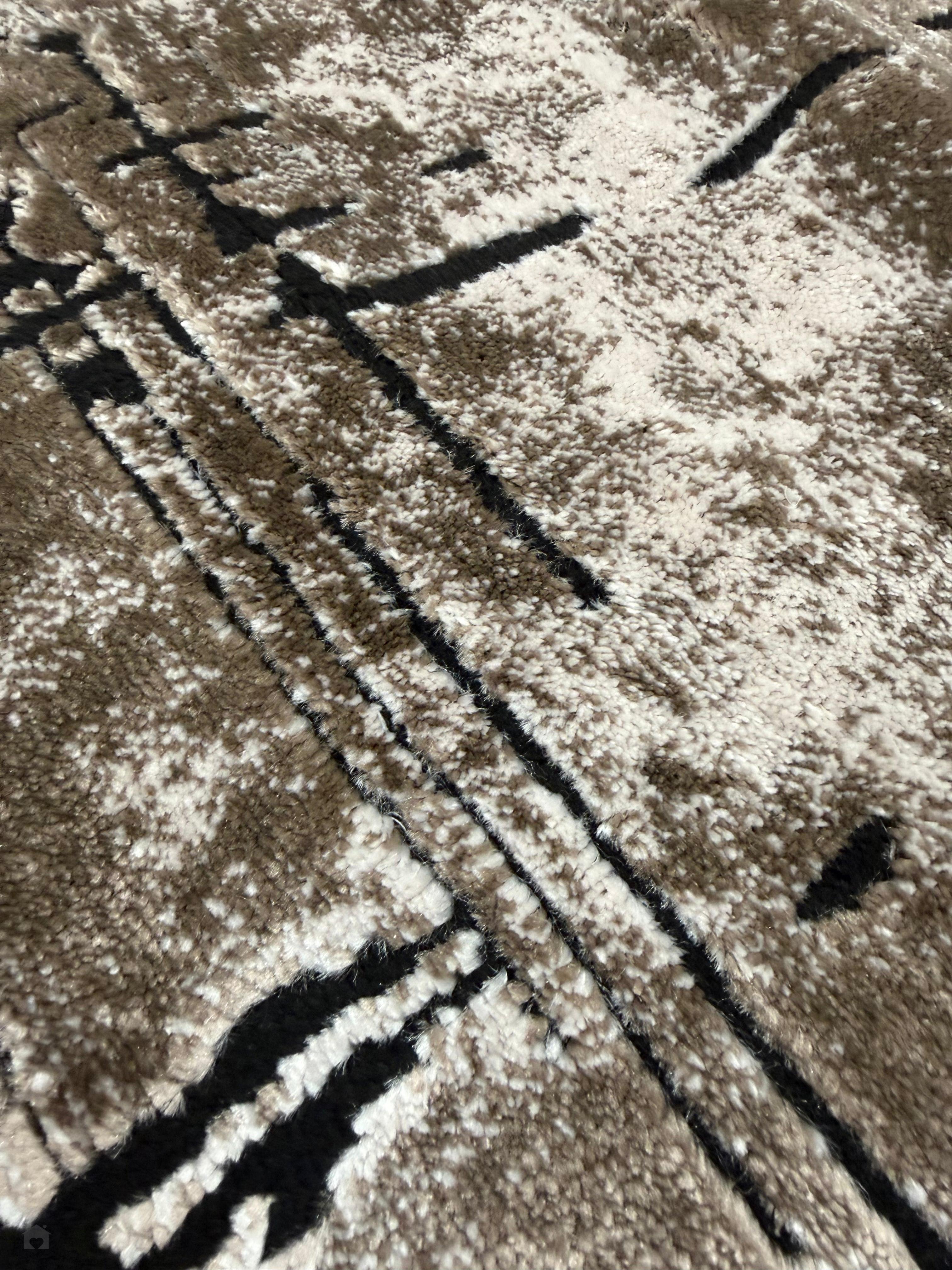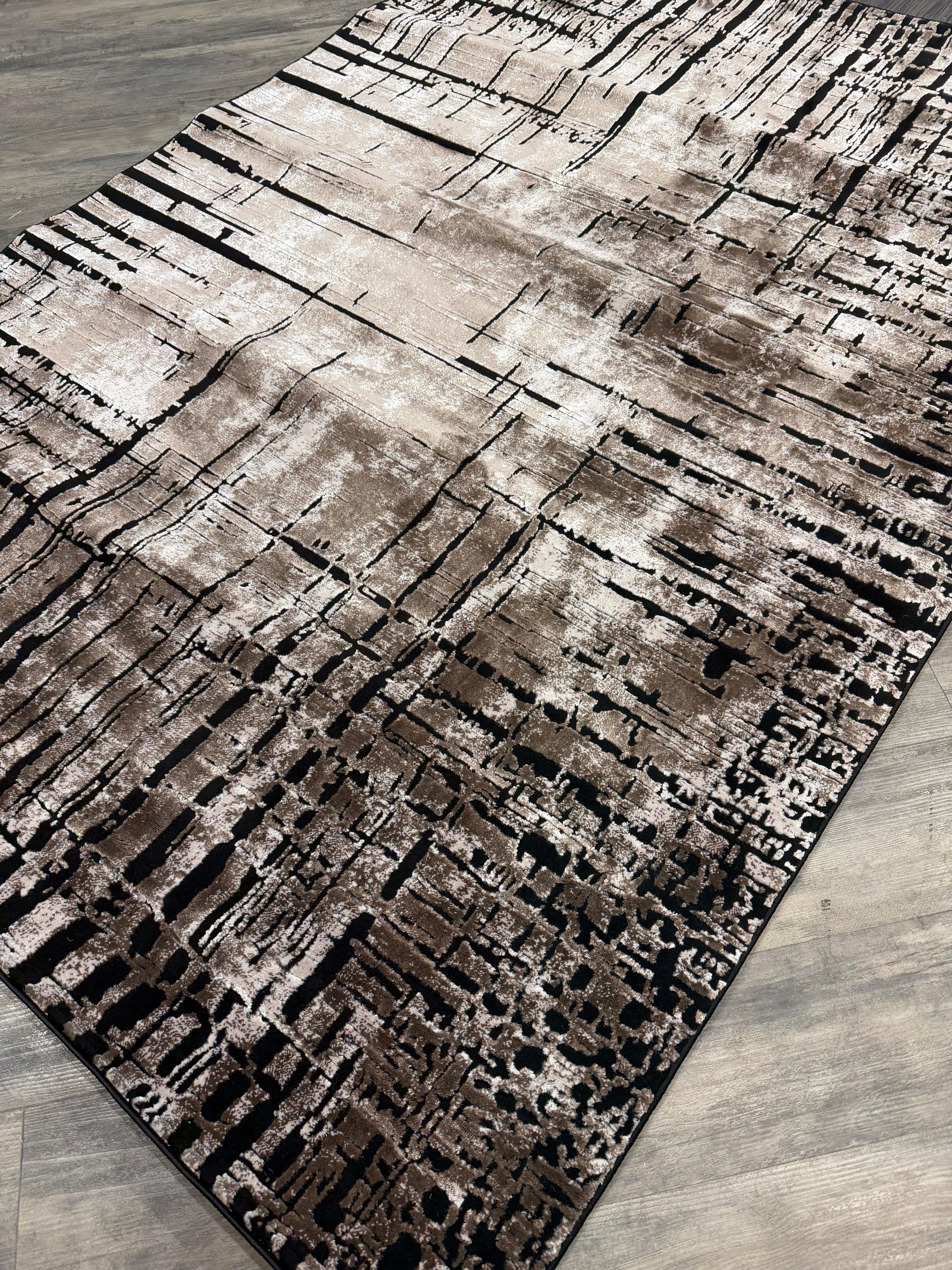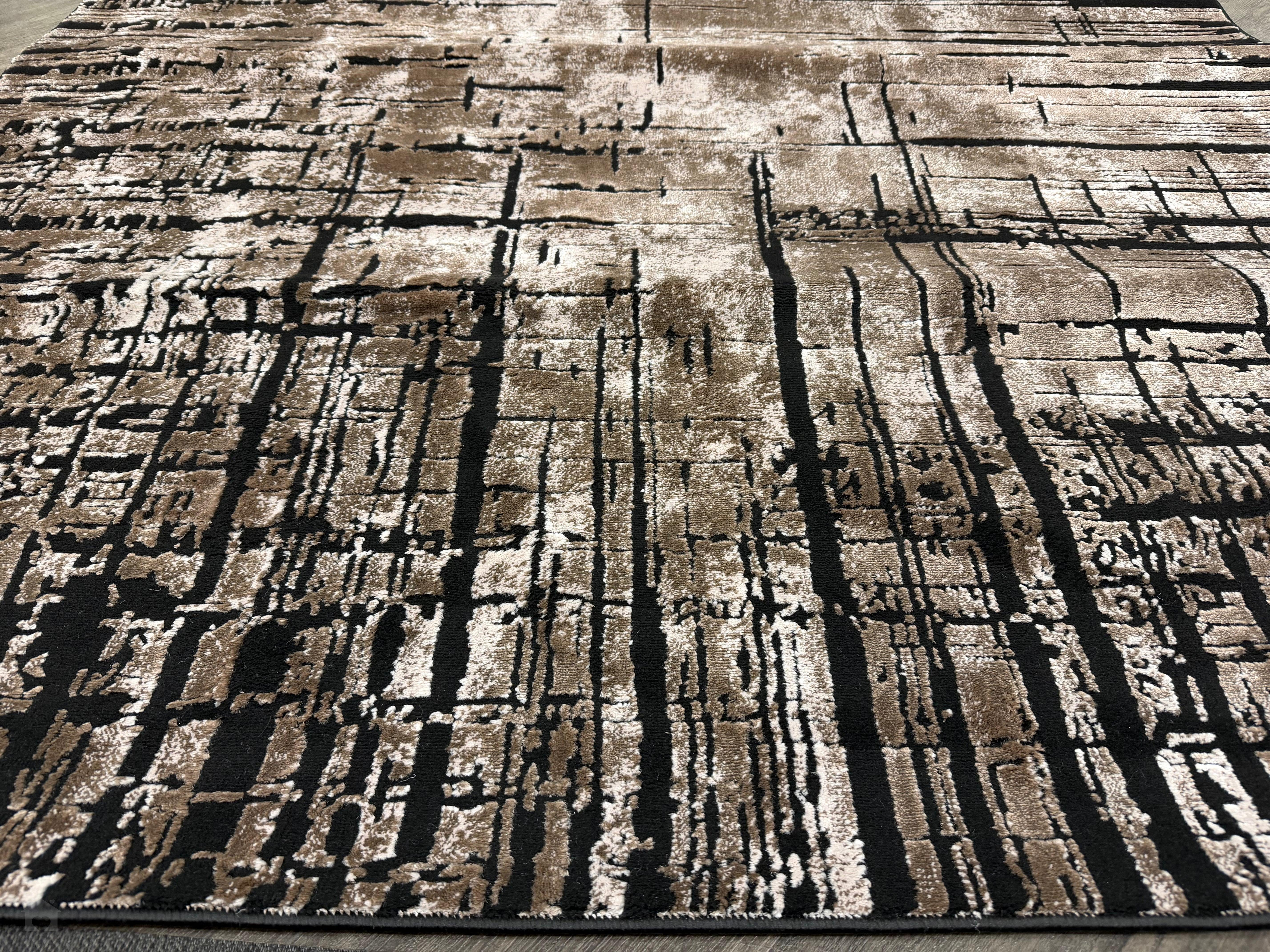 The Belgravia Nexus Mocha Rug features a modern abstract design with a bold linear pattern layered over a distressed, textured base. Its palette of Mocha Brown, Taupe, Ivory, and Charcoal creates a warm yet contemporary aesthetic, making it versatile for both neutral and statement interiors. The velvet-like cut pile offers a metallic sheen that changes with the light, giving this rug a luxurious, designer finish. Crafted in Turkey from a durable blend of polypropylene and polyester with a cotton backing, and with a 12 mm pile height, this rug combines resilience with comfort, making it ideal for modern living spaces, lounges, and bedrooms seeking both style and practicality. The pile’s direction subtly shifts under light, making the rug appear lighter or darker depending on the viewing angle – a feature that adds dimension and visual intrigue.