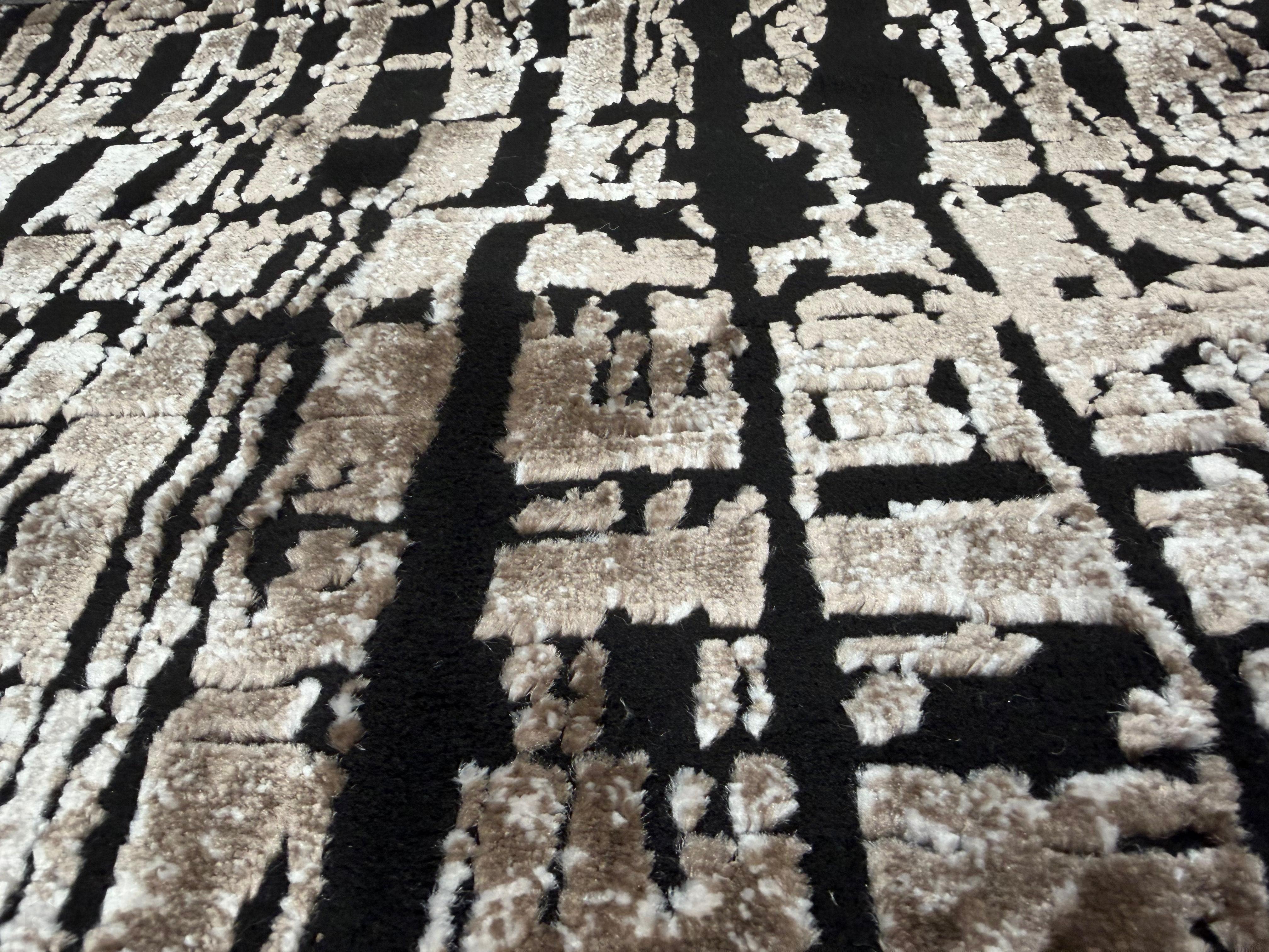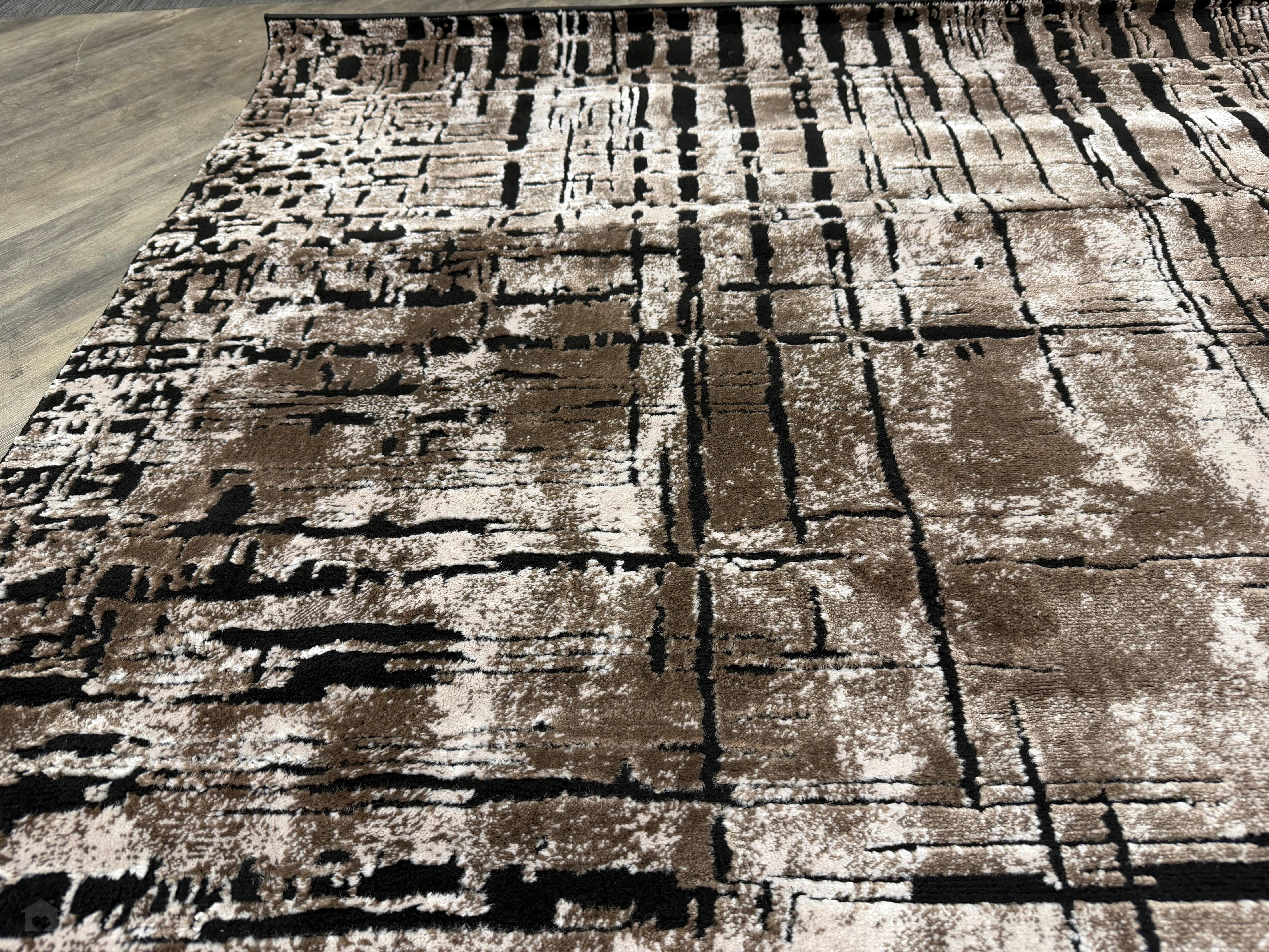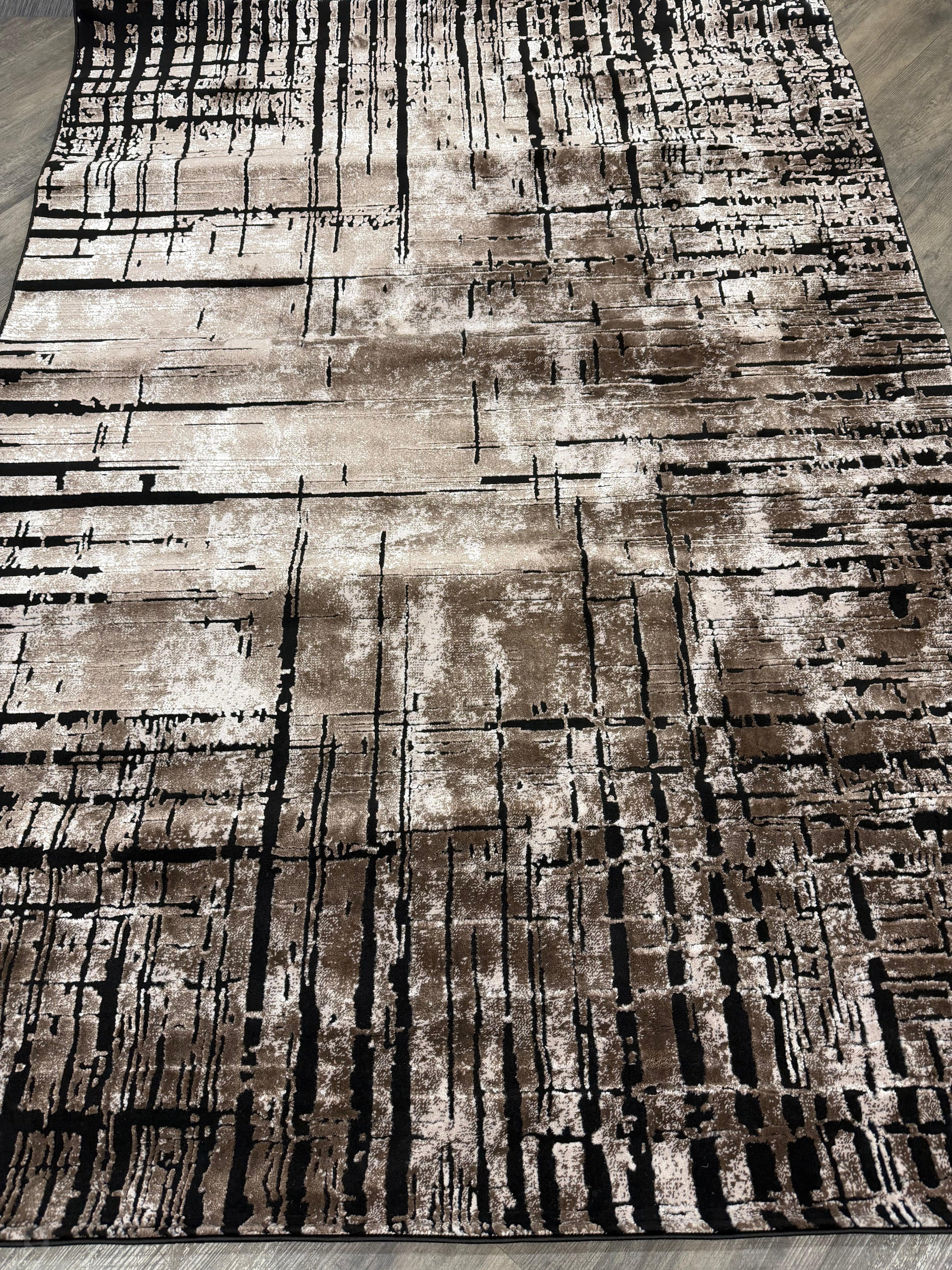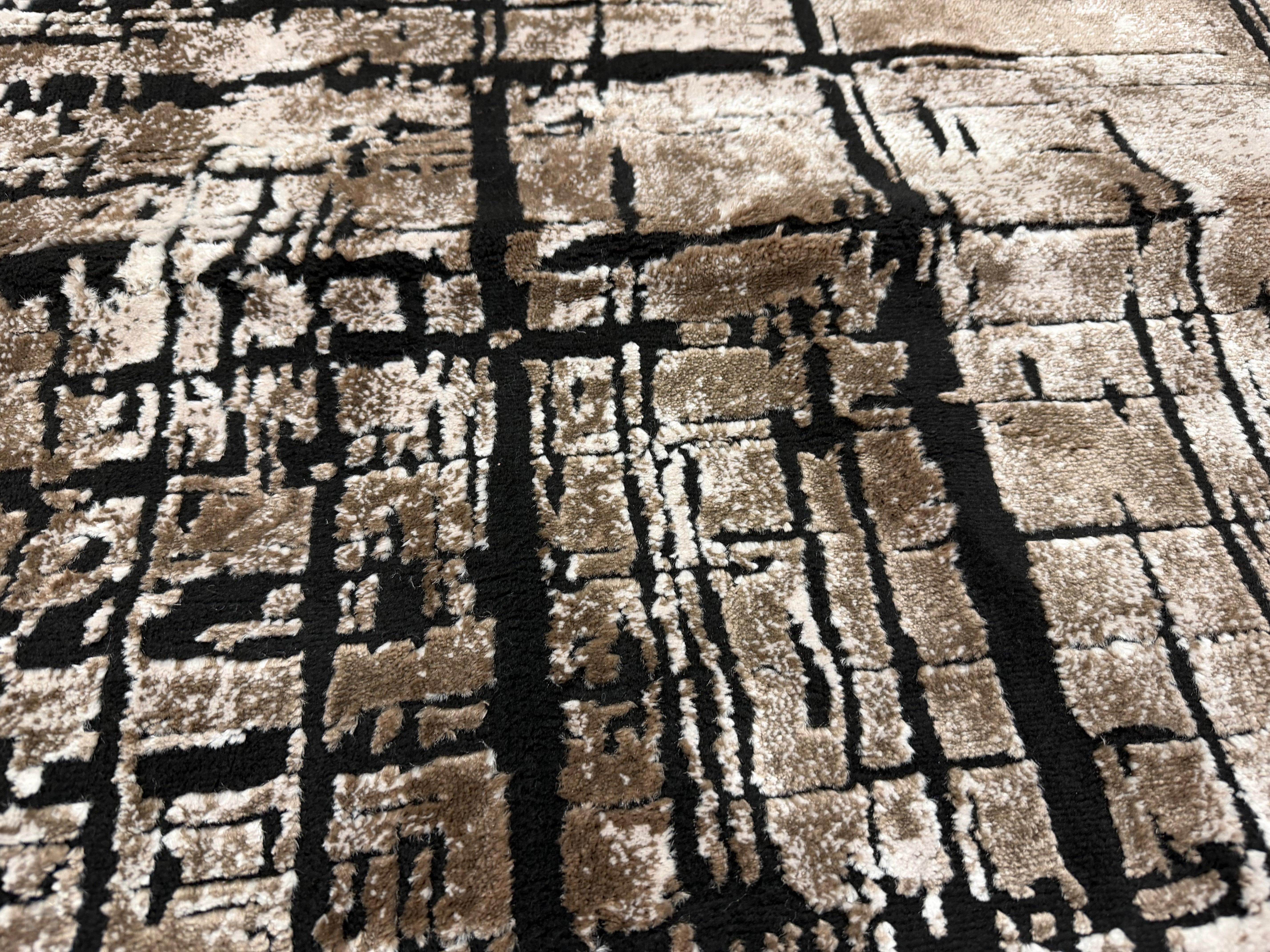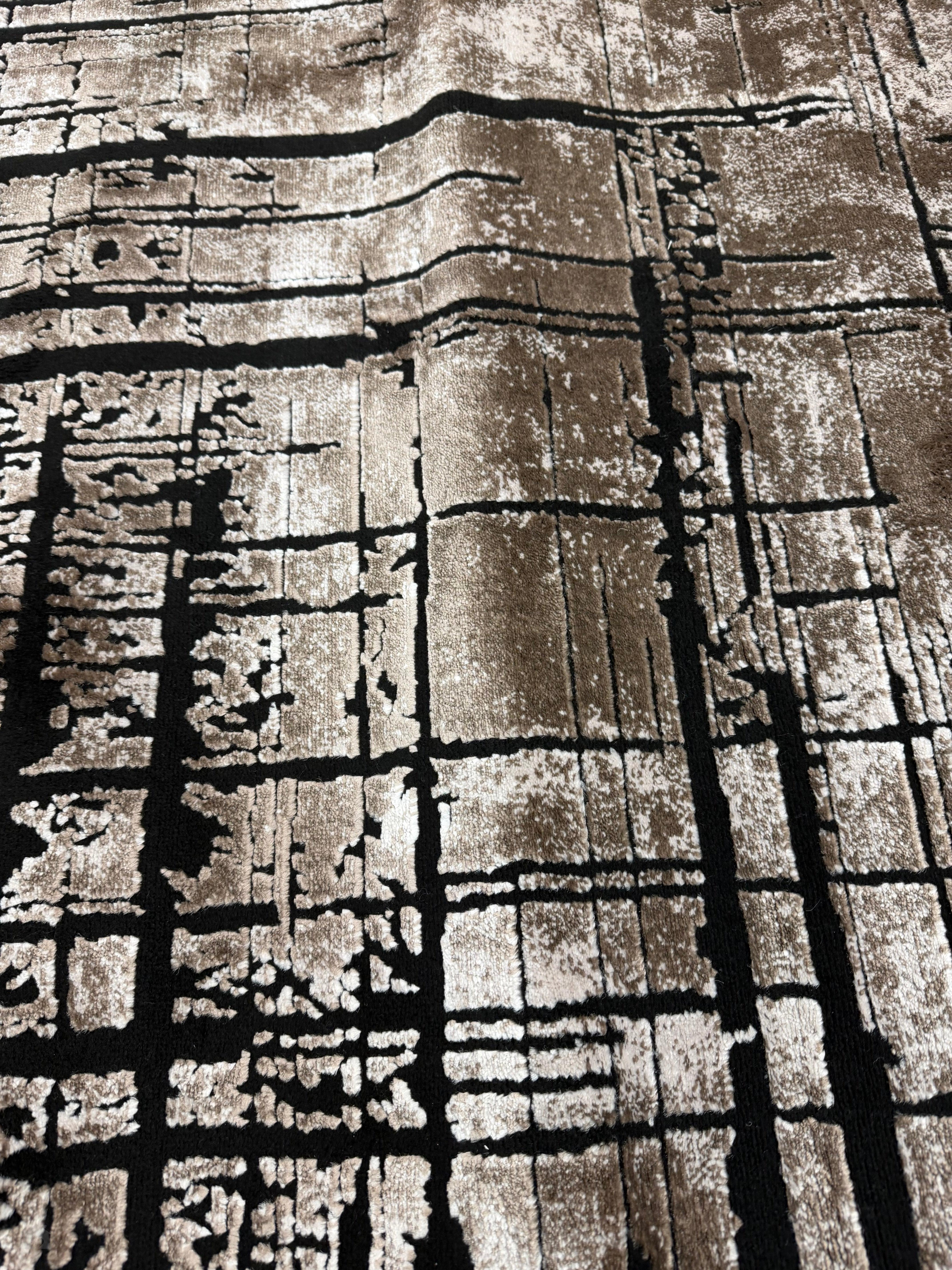 The Belgravia Nexus Mocha Rug features a modern abstract design with a bold linear pattern layered over a distressed, textured base. Its palette of Mocha Brown, Taupe, Ivory, and Charcoal creates a warm yet contemporary aesthetic, making it versatile for both neutral and statement interiors. The velvet-like cut pile offers a metallic sheen that changes with the light, giving this rug a luxurious, designer finish. Crafted in Turkey from a durable blend of polypropylene and polyester with a cotton backing, and with a 12 mm pile height, this rug combines resilience with comfort, making it ideal for modern living spaces, lounges, and bedrooms seeking both style and practicality. The pile’s direction subtly shifts under light, making the rug appear lighter or darker depending on the viewing angle – a feature that adds dimension and visual intrigue.