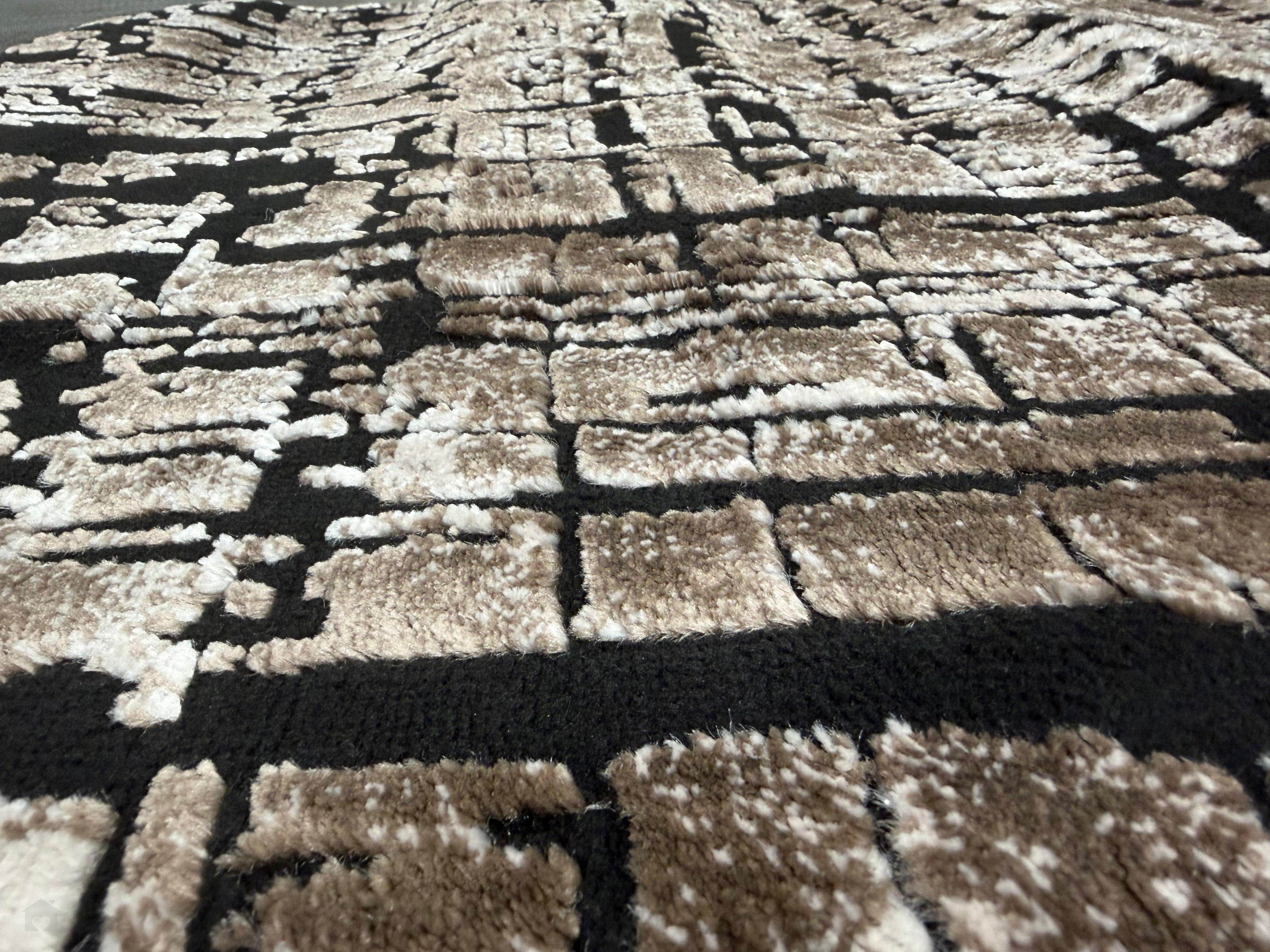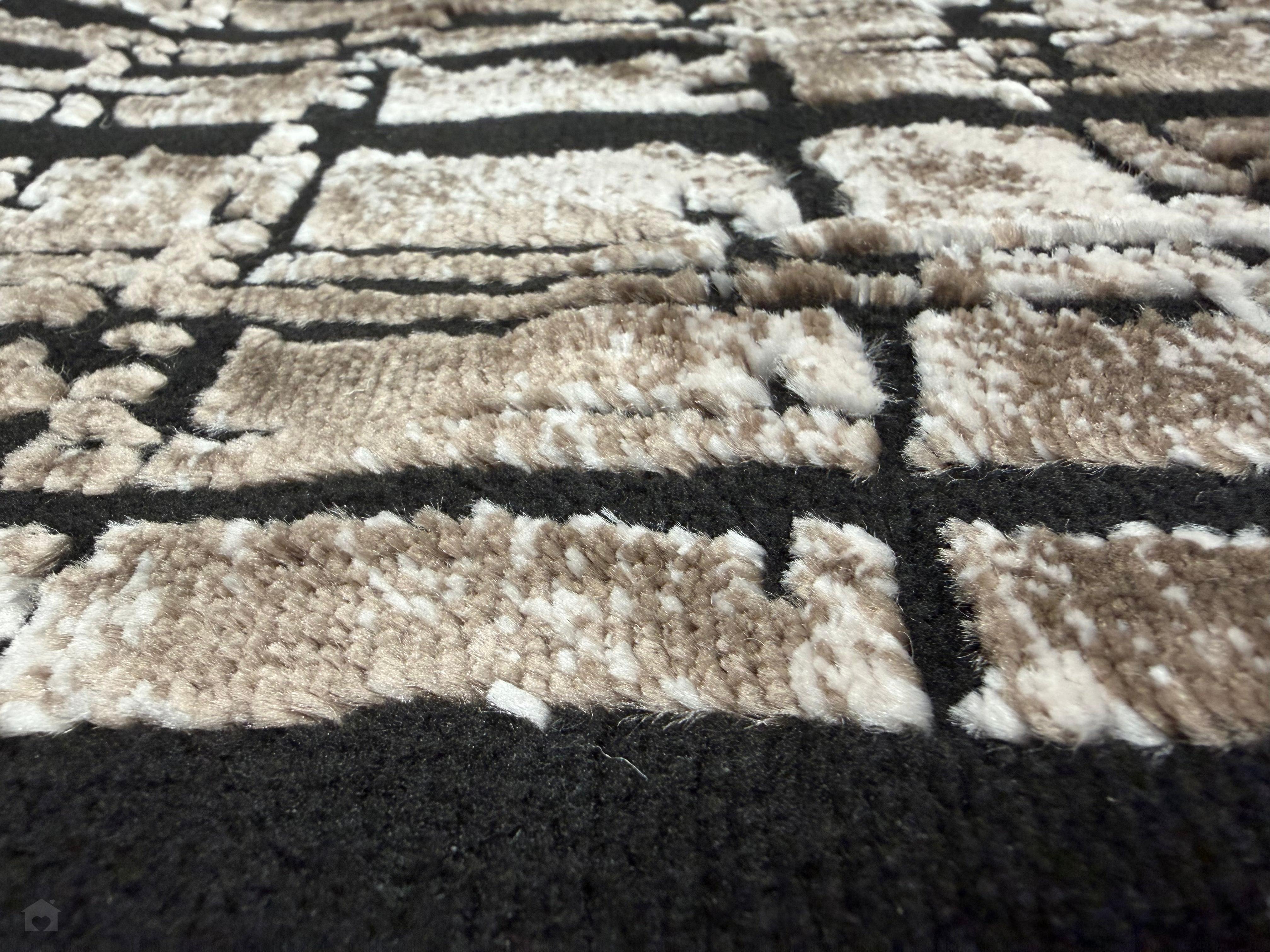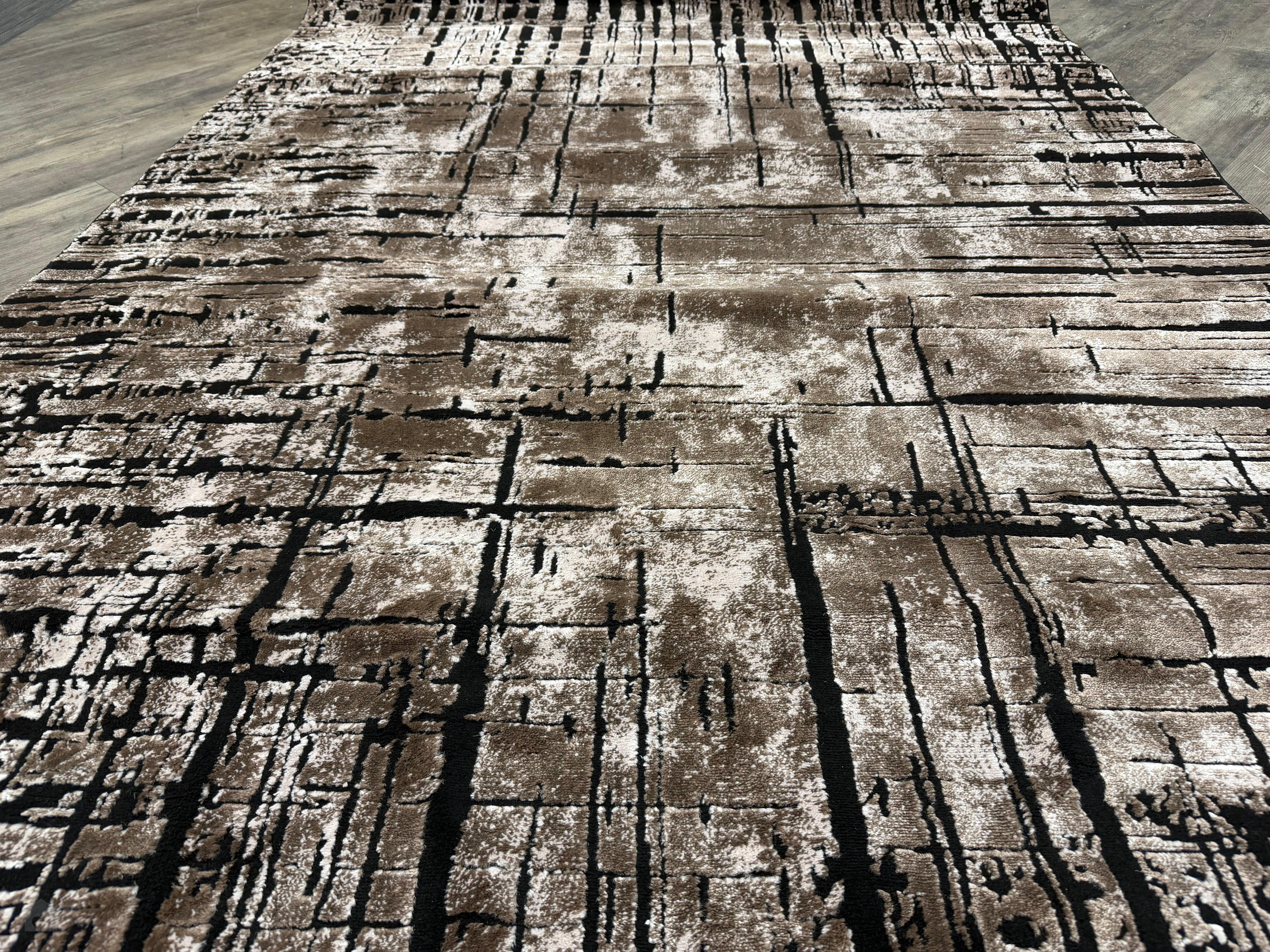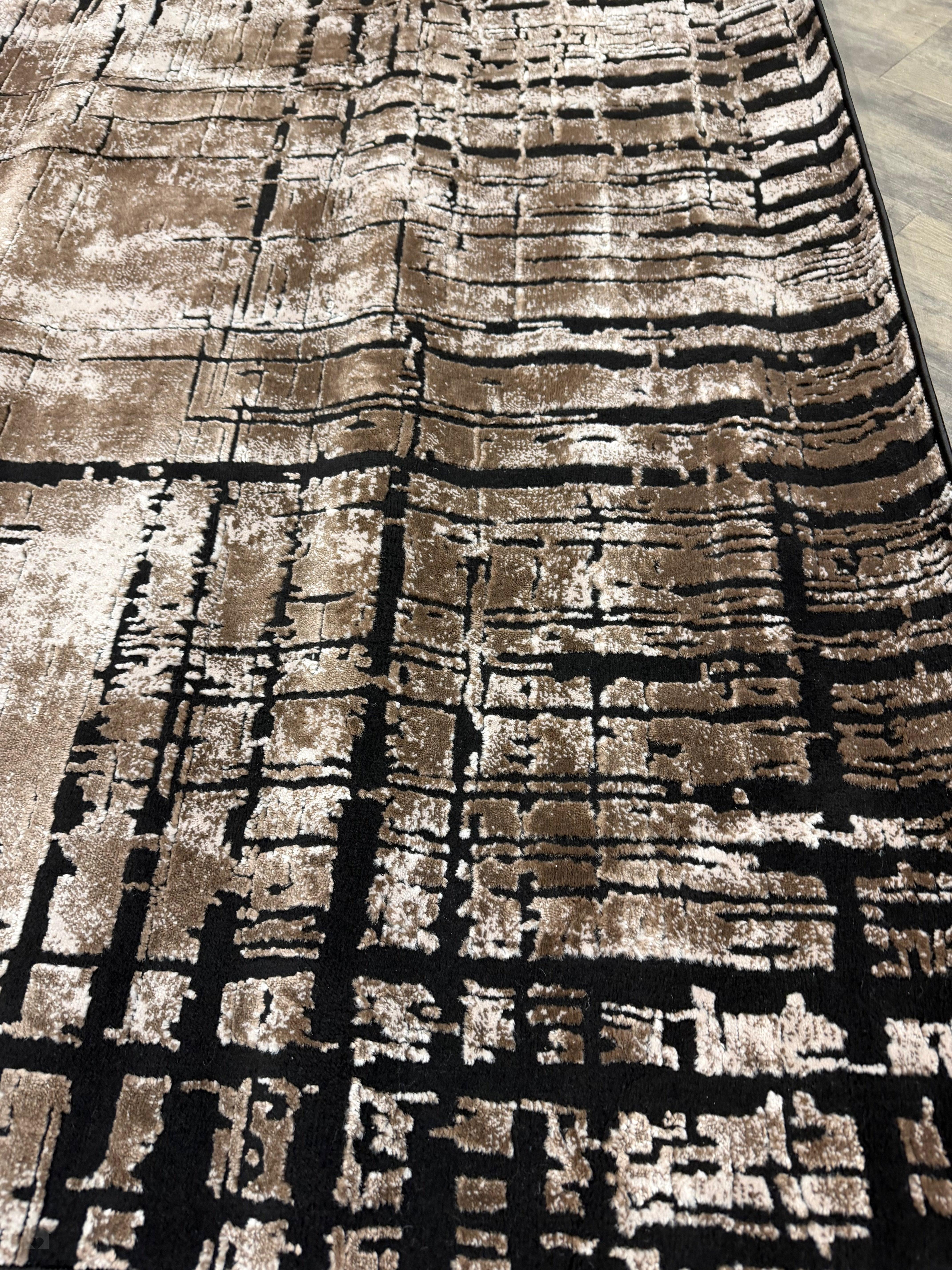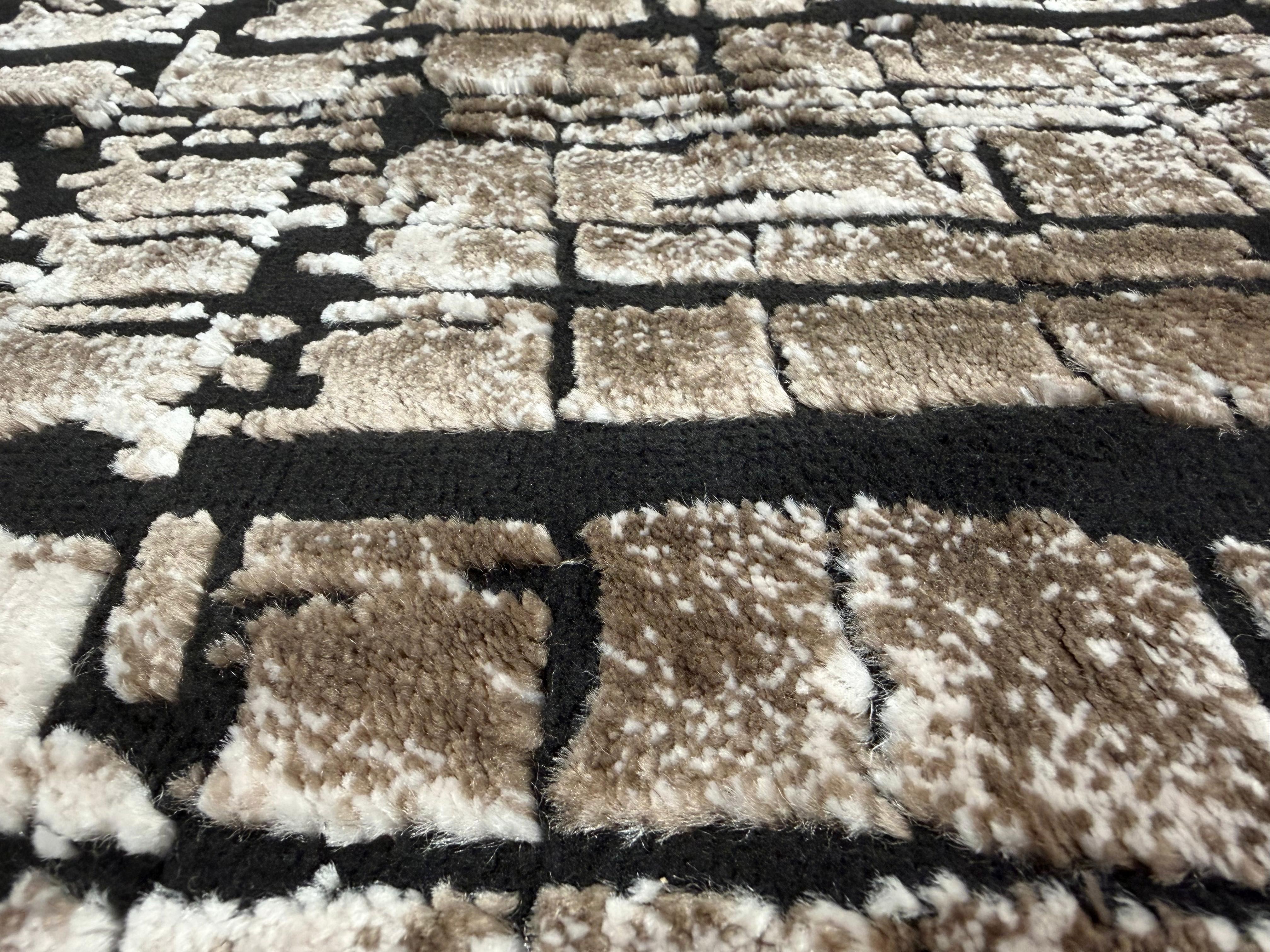 The Belgravia Nexus Mocha Rug features a modern abstract design with a bold linear pattern layered over a distressed, textured base. Its palette of Mocha Brown, Taupe, Ivory, and Charcoal creates a warm yet contemporary aesthetic, making it versatile for both neutral and statement interiors. The velvet-like cut pile offers a metallic sheen that changes with the light, giving this rug a luxurious, designer finish. Crafted in Turkey from a durable blend of polypropylene and polyester with a cotton backing, and with a 12 mm pile height, this rug combines resilience with comfort, making it ideal for modern living spaces, lounges, and bedrooms seeking both style and practicality. The pile’s direction subtly shifts under light, making the rug appear lighter or darker depending on the viewing angle – a feature that adds dimension and visual intrigue.