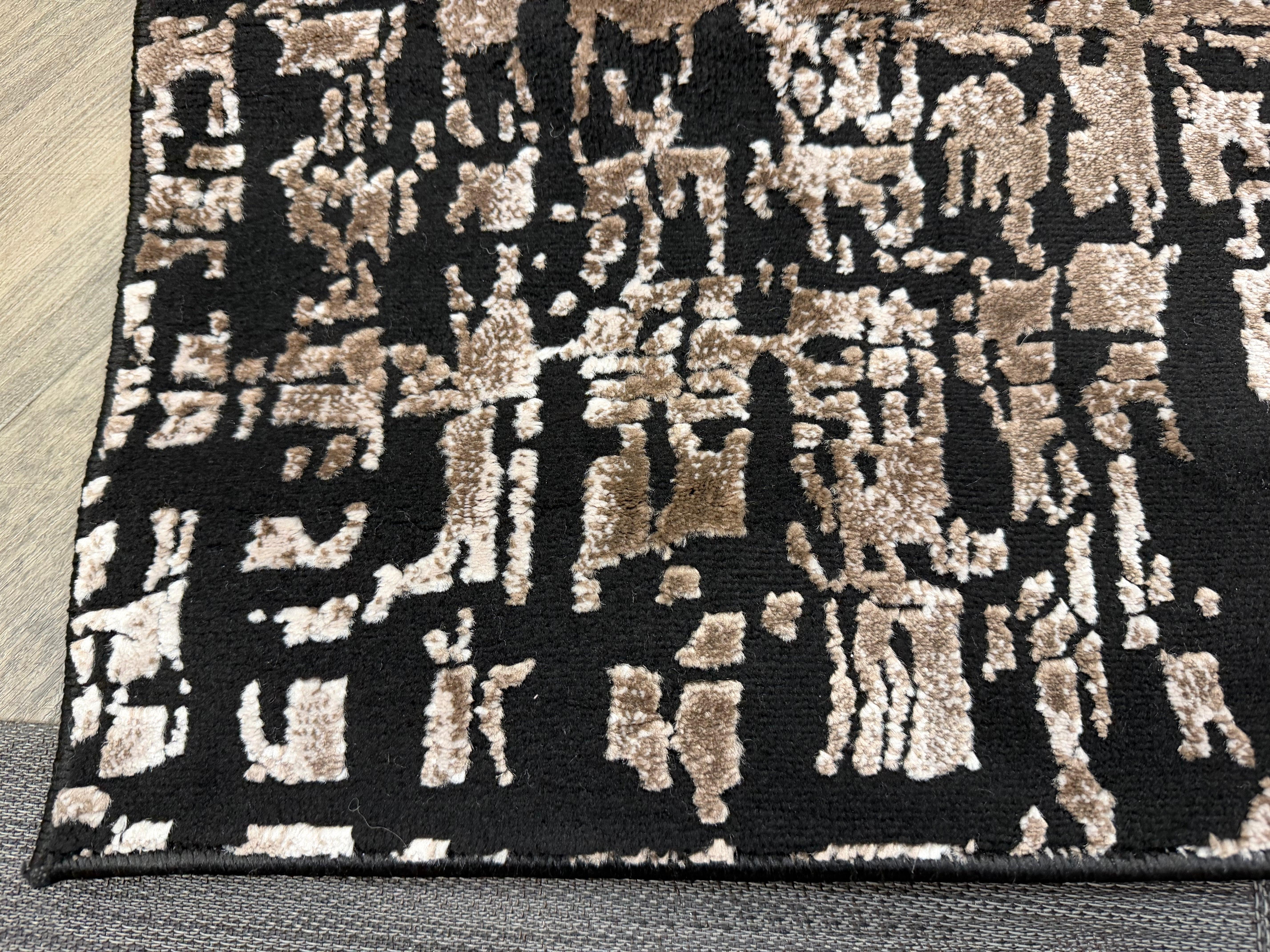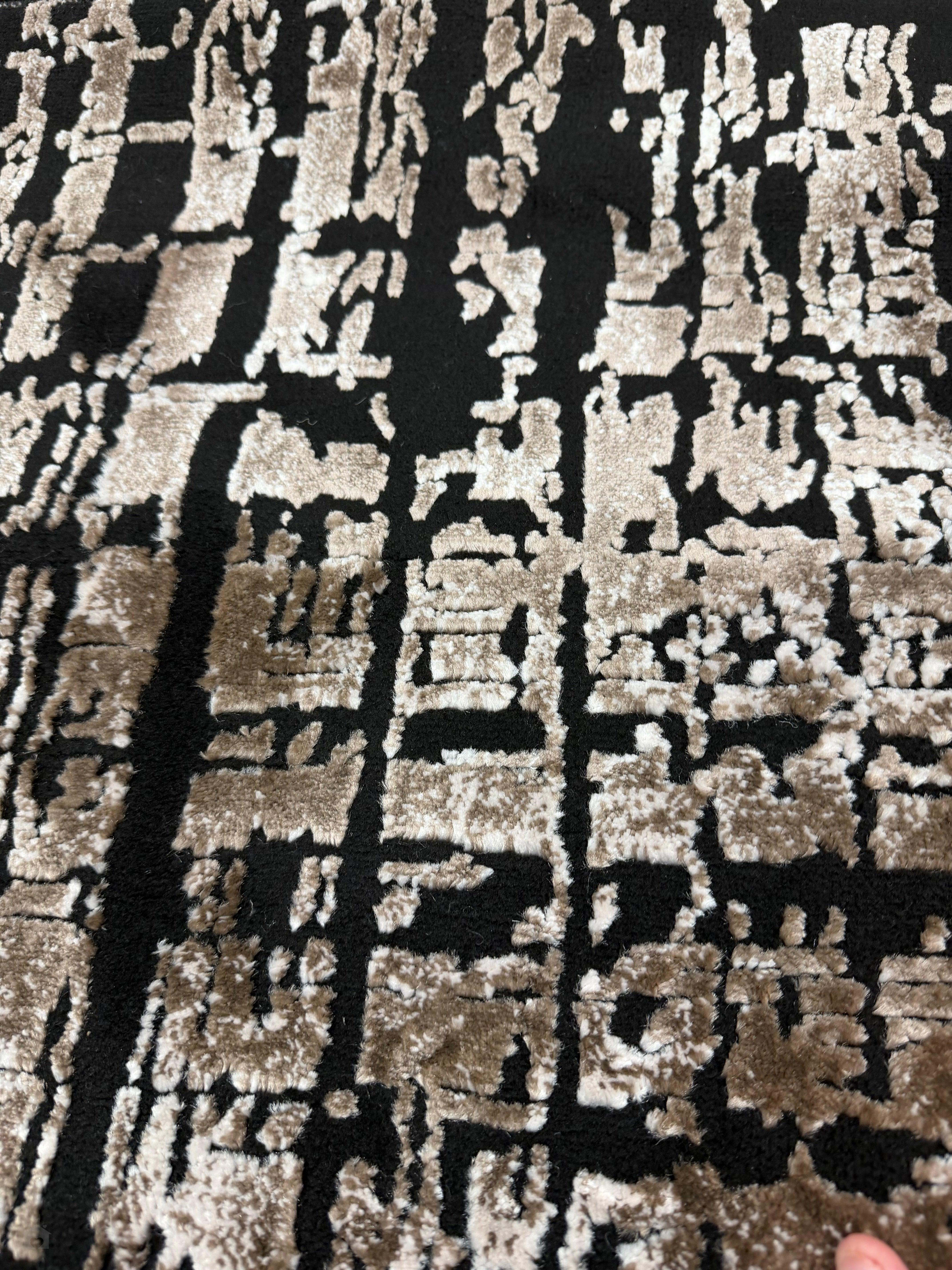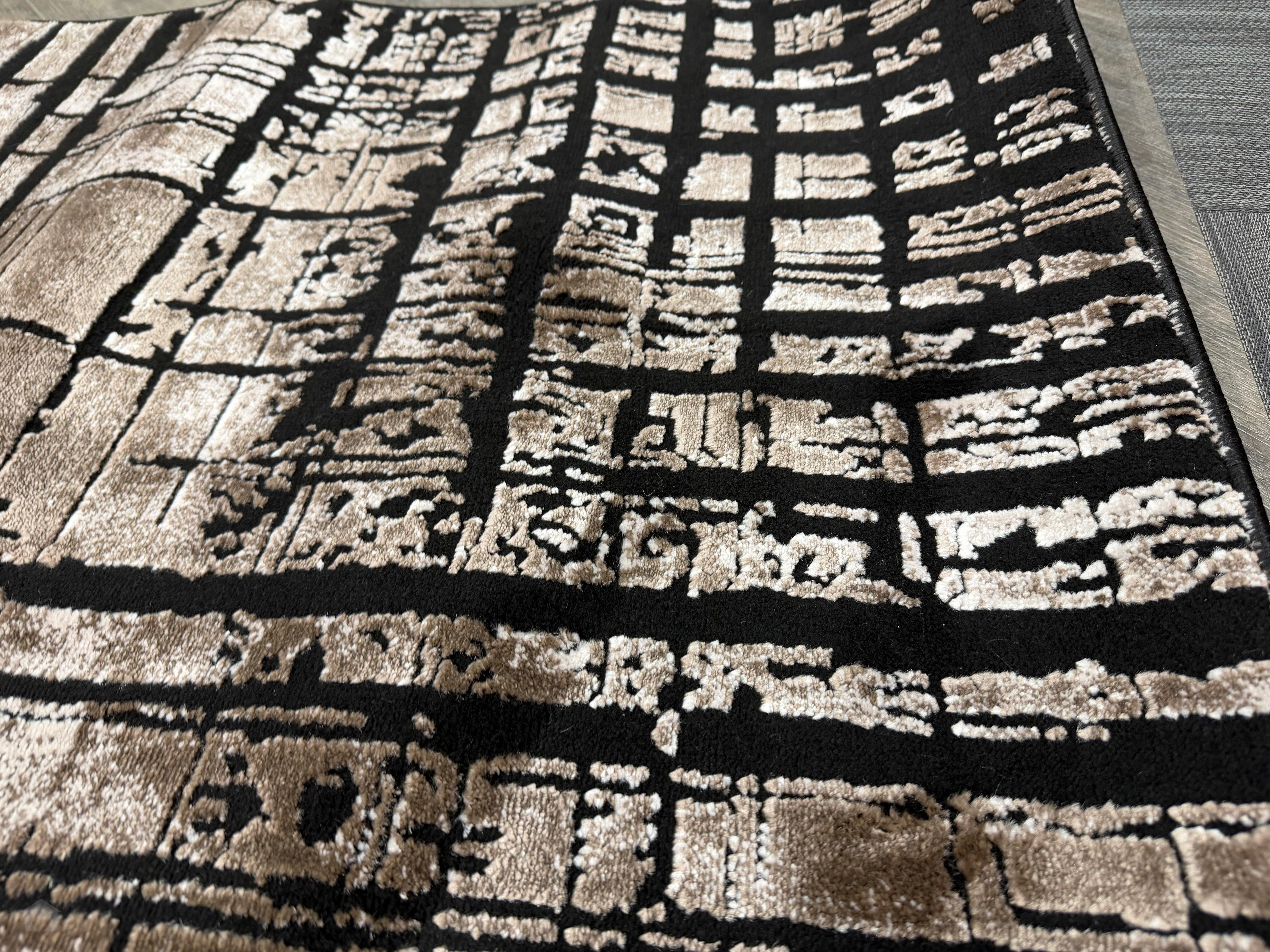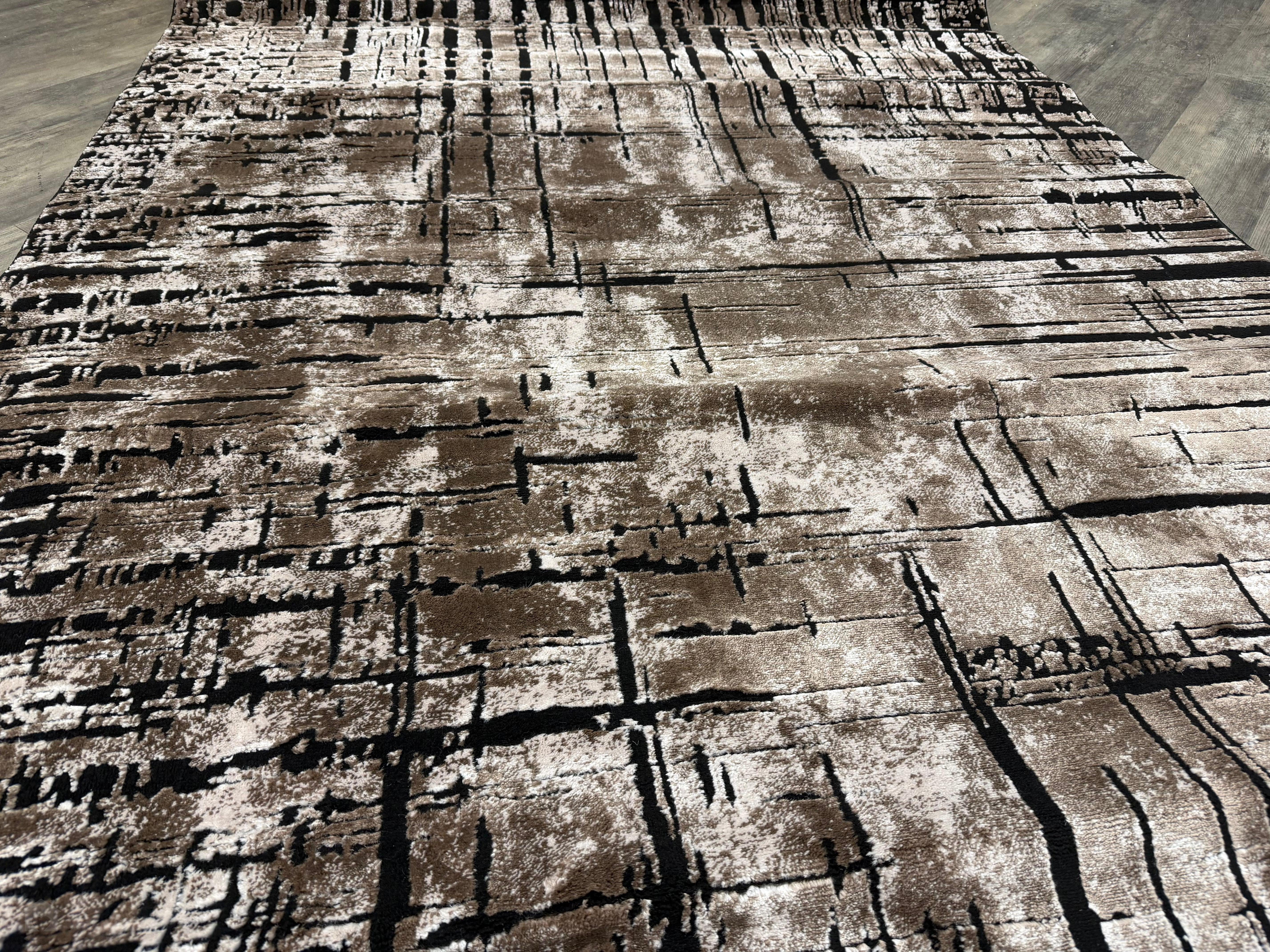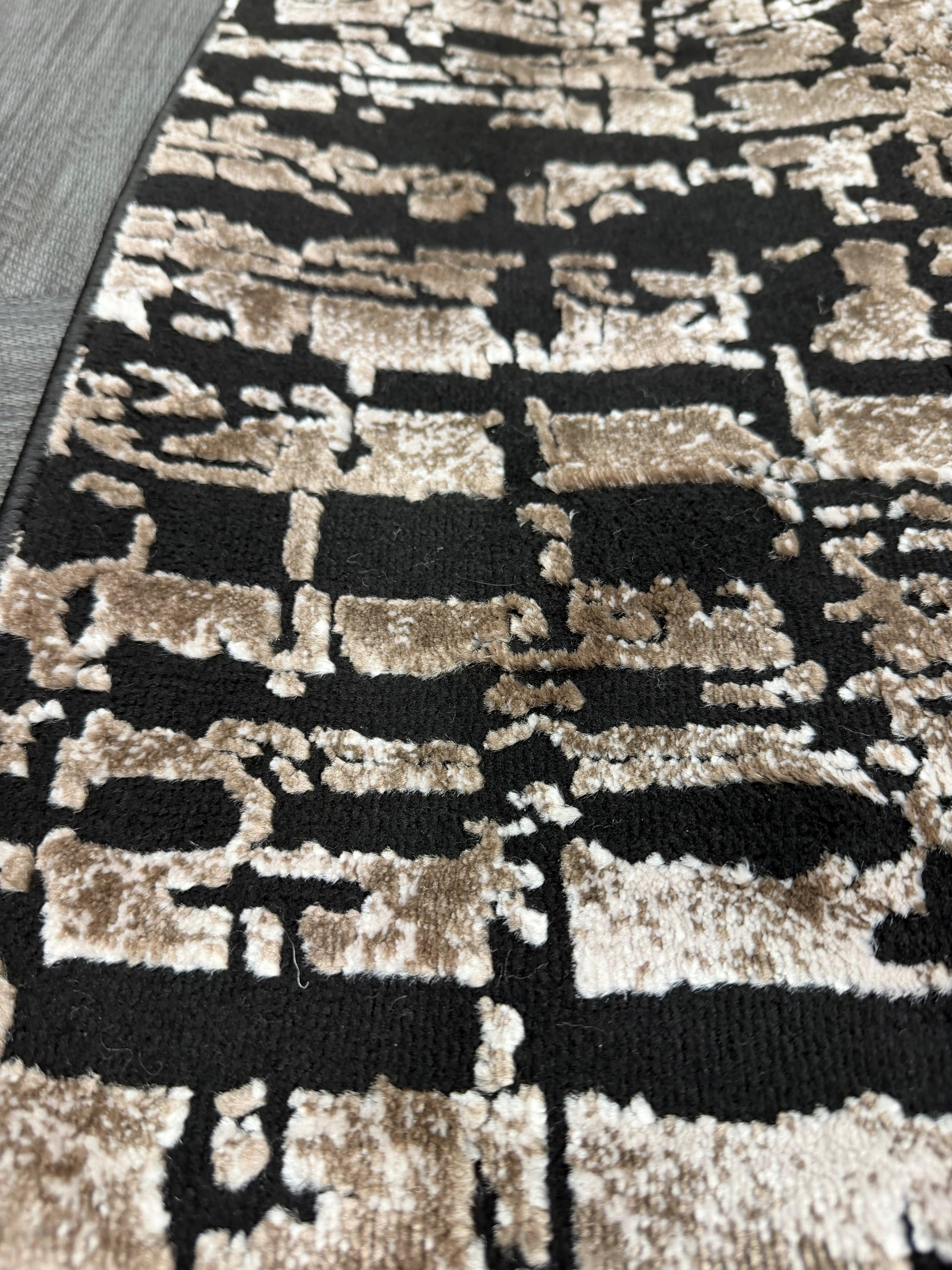 The Belgravia Nexus Mocha Rug features a modern abstract design with a bold linear pattern layered over a distressed, textured base. Its palette of Mocha Brown, Taupe, Ivory, and Charcoal creates a warm yet contemporary aesthetic, making it versatile for both neutral and statement interiors. The velvet-like cut pile offers a metallic sheen that changes with the light, giving this rug a luxurious, designer finish. Crafted in Turkey from a durable blend of polypropylene and polyester with a cotton backing, and with a 12 mm pile height, this rug combines resilience with comfort, making it ideal for modern living spaces, lounges, and bedrooms seeking both style and practicality. The pile’s direction subtly shifts under light, making the rug appear lighter or darker depending on the viewing angle – a feature that adds dimension and visual intrigue.