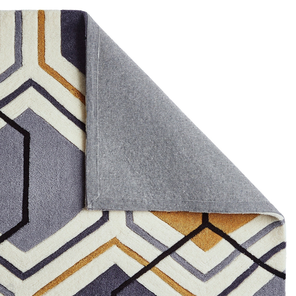 This rug features a striking geometric hexagonal pattern in a refined mix of ivory, grey, mustard yellow, and black. The combination of bold and subtle hues creates a dynamic, contemporary aesthetic that is both stylish and versatile. The interplay of colours and high-low textures adds depth and visual interest, making it a perfect statement piece for modern interiors. The geometric diamond design, featuring a stylish combination of Ivory, Yellow, and Charcoal Grey, creates a bold yet versatile aesthetic that enhances any interior. The balanced pile height offers a comfortable walking surface, making it perfect for a living room, dining area, or any space in need of a contemporary touch. Whether your décor is minimalist, eclectic, or vibrant, the Ivory, Yellow, and Charcoal Grey colour palette effortlessly complements a variety of styles. Place it in the centre of your living room with sleek furniture for a chic and inviting atmosphere, or use it to anchor your dining space, adding warmth and sophistication.