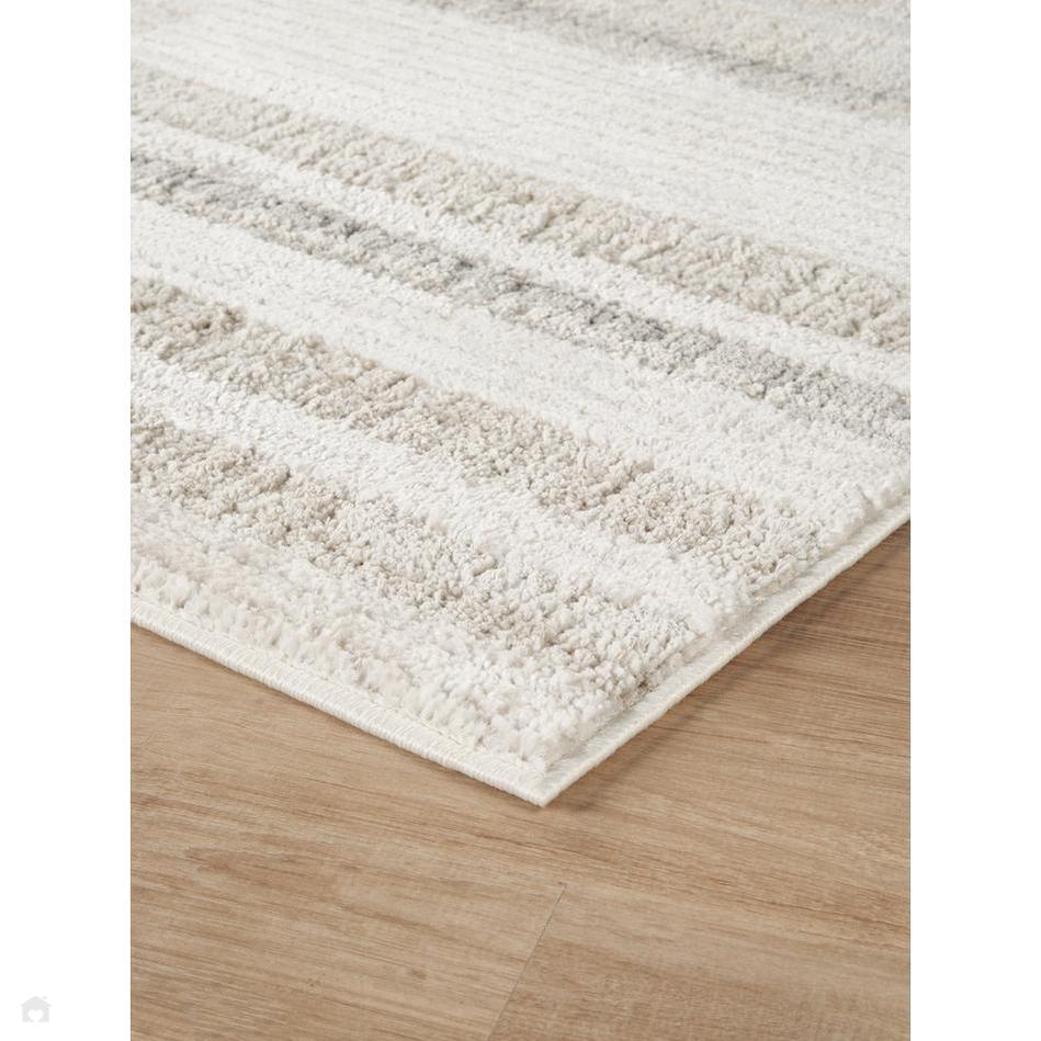 Muted Beige – Blended within the alternating stripes, softening the contrast and enhancing the rug’s cosy and contemporary appeal.