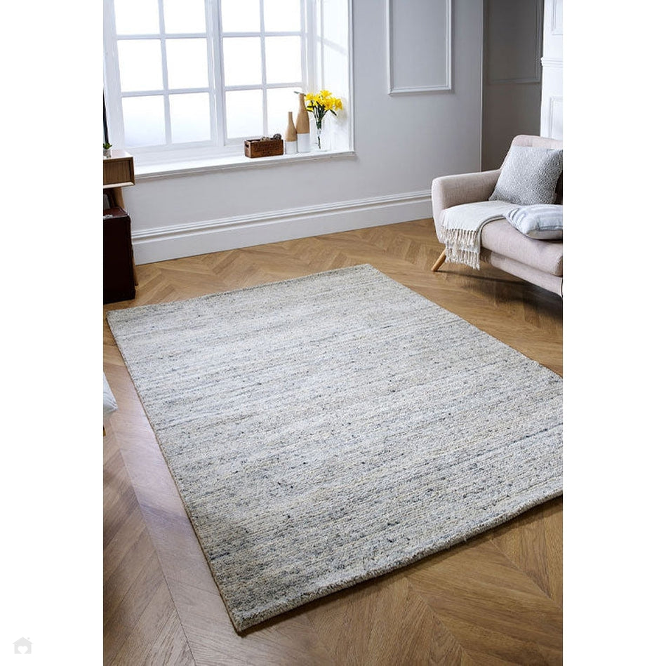 Vista Modern Plain Hand-Woven Ribbed Textured Wool Rug in Cream / Natural Beige / Charcoal. Bring an understated, organic elegance to your home with the Vista Modern Plain Hand-Woven Rug. Crafted by skilled artisans on a traditional handloom, this rug is made from 100% pure wool and features a ribbed, textured weave that adds natural character and depth. The high-quality wool pile provides a soft, cushioned feel underfoot, making it both a stylish and practical choice for everyday living.