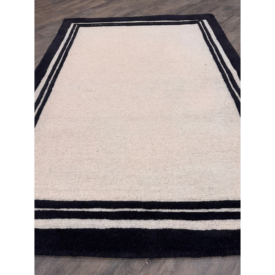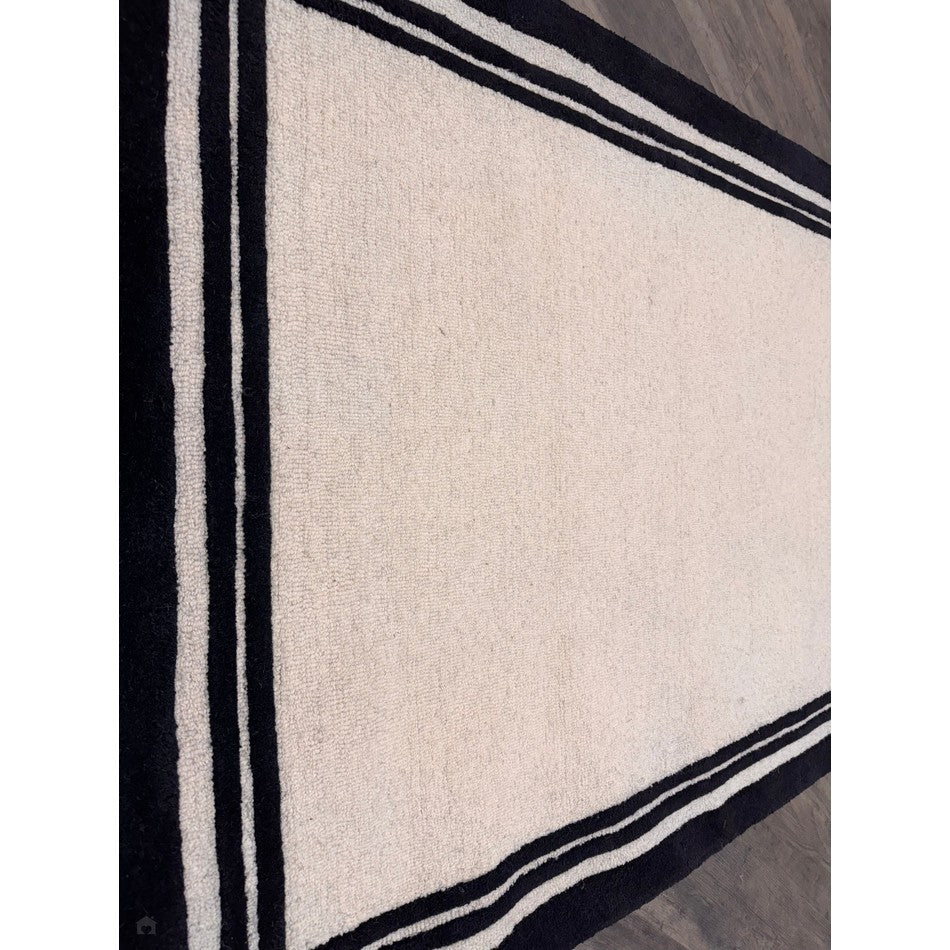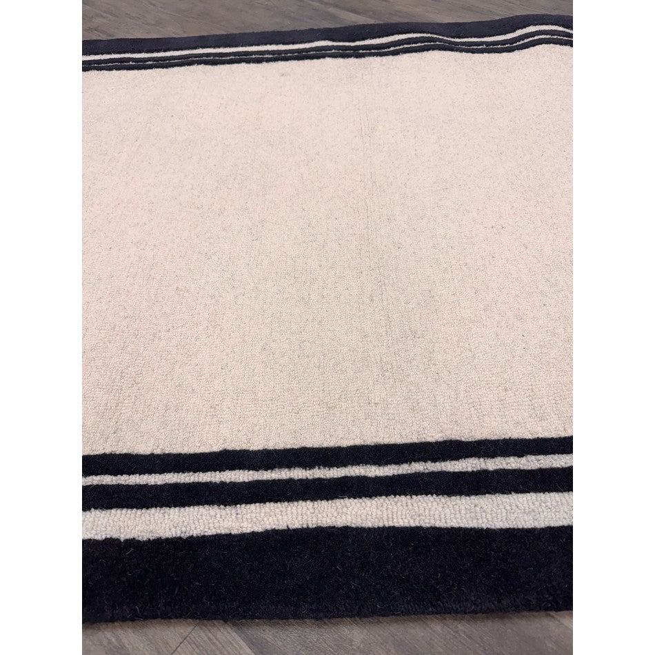 The Piper Modern Plain Textured Loop Pile Smooth Border Hand-Woven Wool Cream/Black Rug is a statement of subtle luxury and craftsmanship. The interplay of textured loop pile and smooth cut borders creates both visual and tactile contrast, offering a refined yet comfortable feel underfoot.