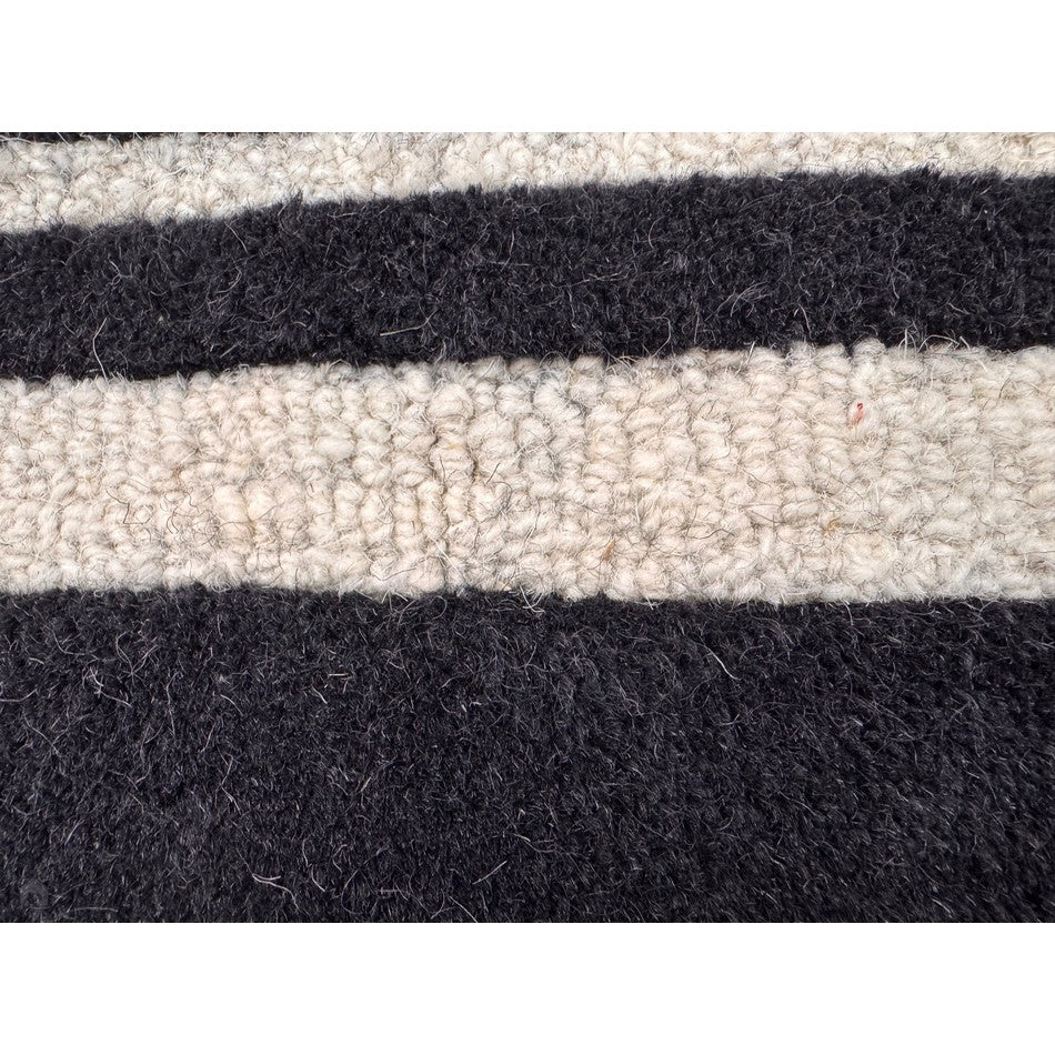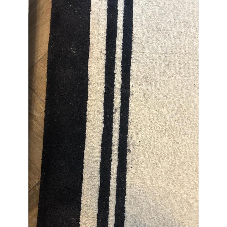 The black and cream contrast may highlight shedding where the colours meet; this is typical of wool rugs and will reduce over time.