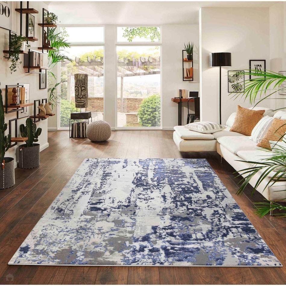 Emperor 320 Styra EMP20 Modern Abstract Distressed Metallic Shimmer Soft Textured Hi-Lo Polyblend Short Pile Navy Rug