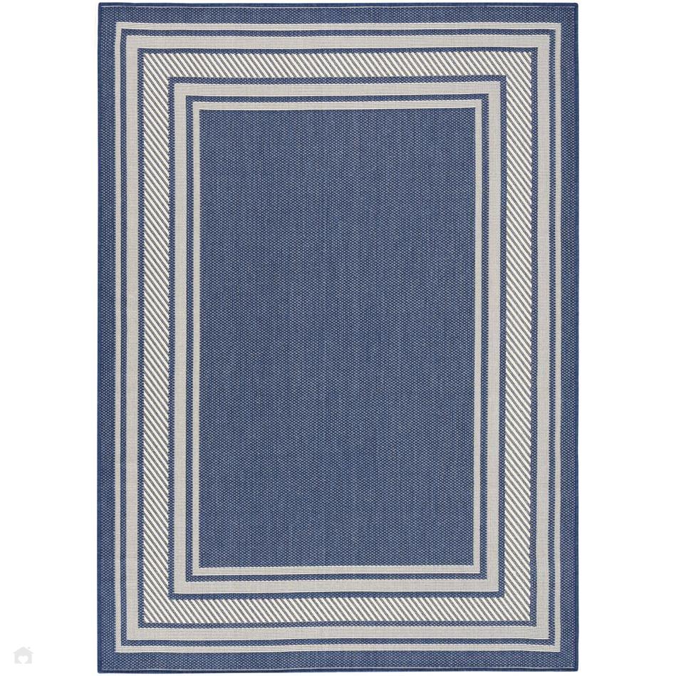 Transform any space with this modern navy-blue outdoor rug from the Horizon collection. Showcasing a striking bordered design, this rug beautifully frames your space while adding structure to patio conversation or living room and dining room seating areas. The two-tone palette, enhanced with subtle tonal variations, helps draw the eye while creating a focal point for your dcor. Made from a blend of polyester and polypropylene finished with a subtle high-low pile.