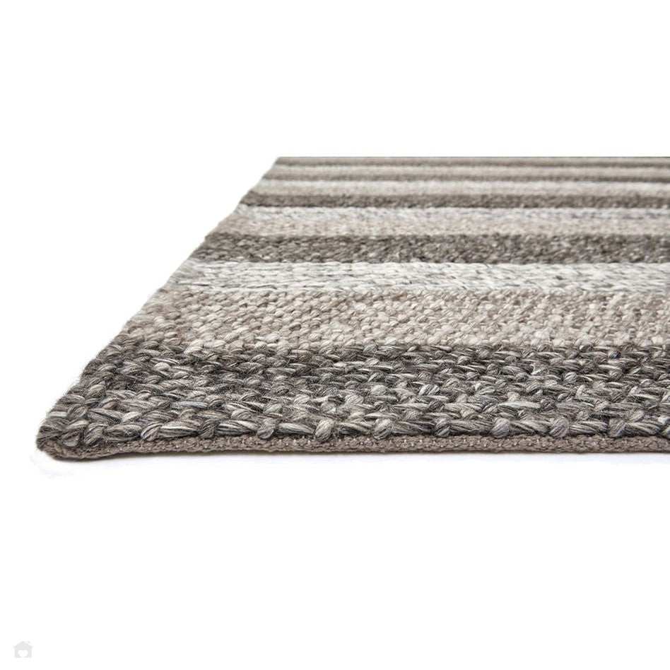 Katherine Carnaby Coast CS08 Modern Designer Plain Varied Stripe Hand-Woven Textured Wool&Viscose Flatweave Taupe Brown Rug