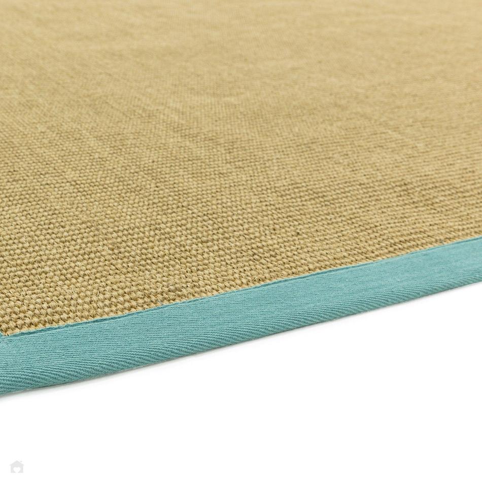 Sisal Modern Plain Cotton Border Natural-Fibre Ribbed Textured Flatweave Natural/Aqua Blue Rug