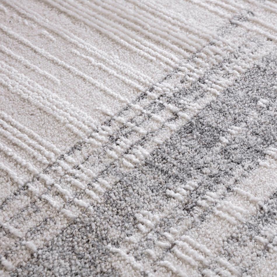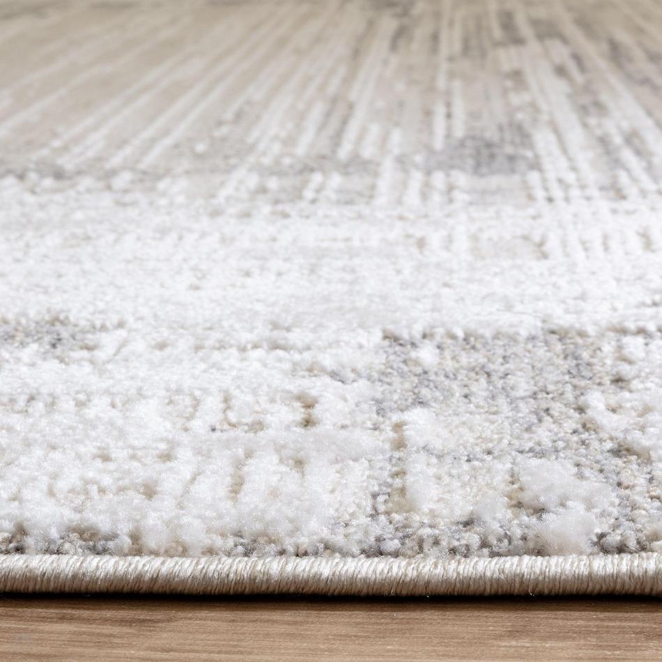 This rug features a finely layered palette of ivory, beige, silver, and grey tones with a modern abstract border design. The subtle shimmer in the pile creates movement depending on light and angle, giving the rug a dynamic yet serene quality. With its low-profile and short-pile texture, the rug delivers a sleek, contemporary look while maintaining a plush and inviting feel. Ideal for both modern and transitional interiors seeking a touch of softness and sophistication.