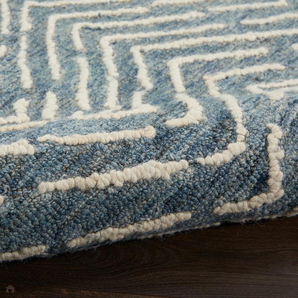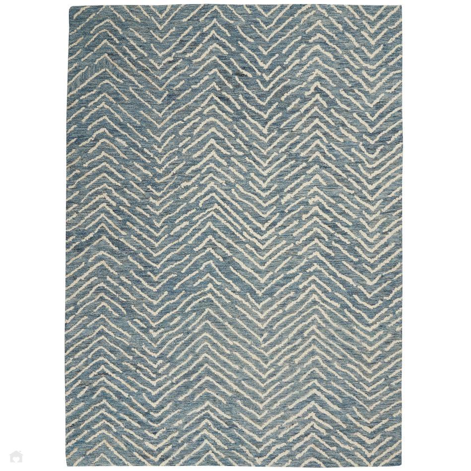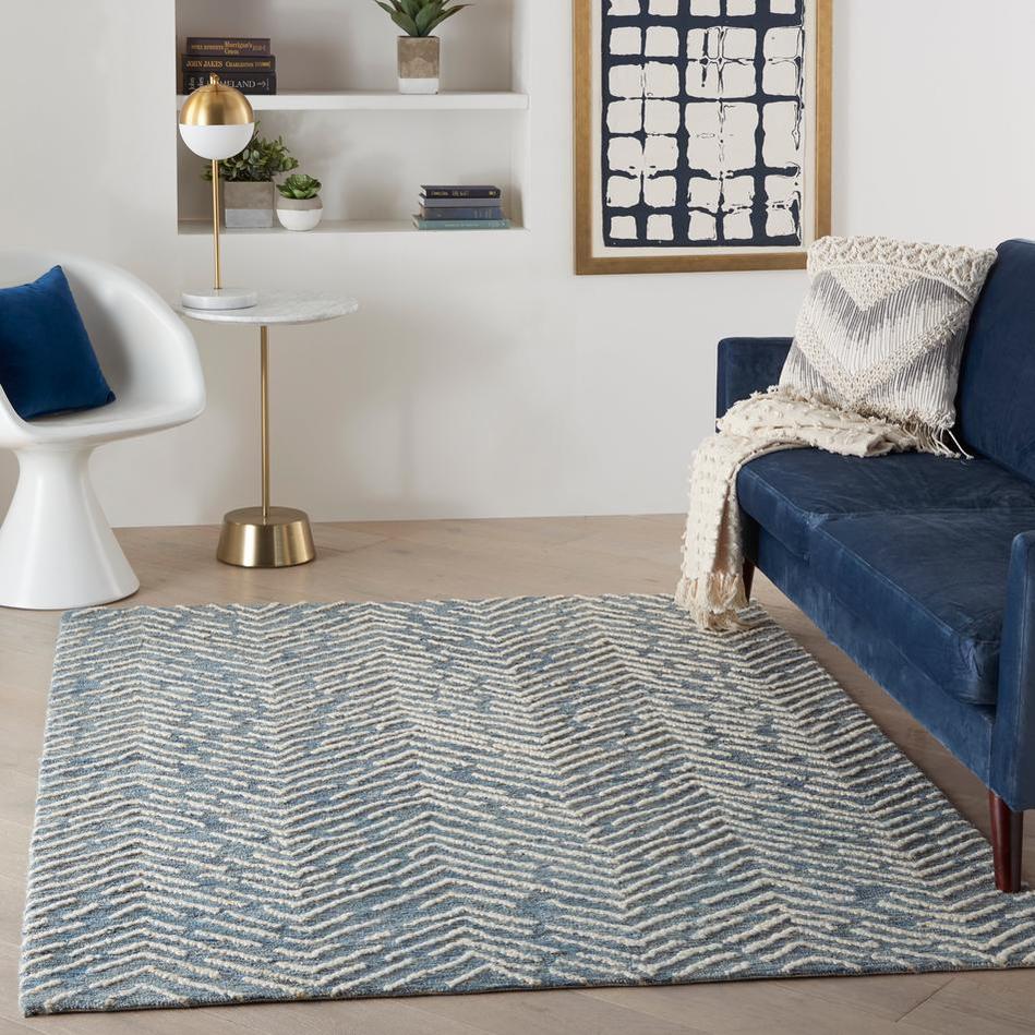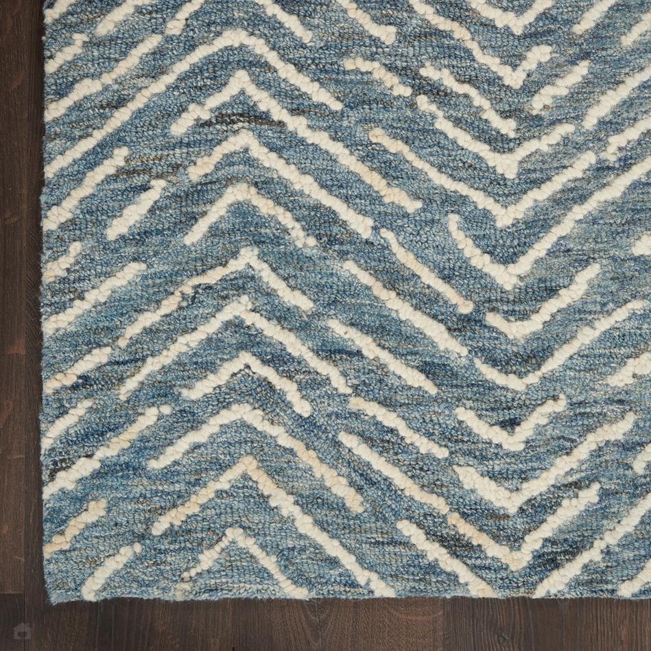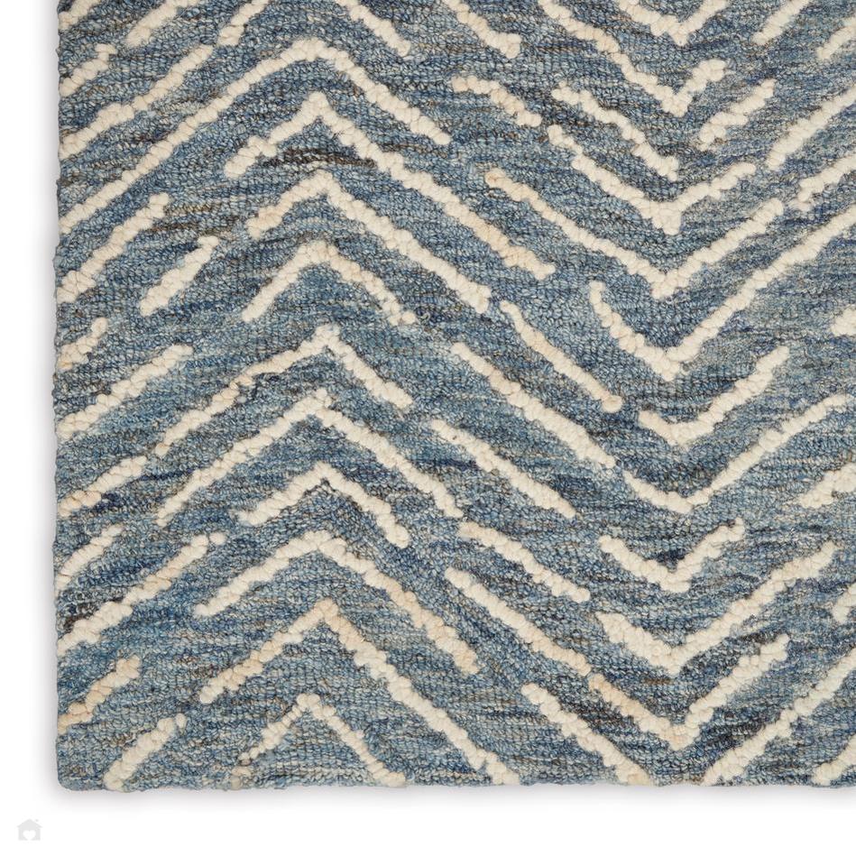 The Colorado CLR02 Indigo/Ivory Rug blends earthy charm with a modern linear aesthetic, featuring a hand-tufted loop pile made from 100% natural wool. The textured chevron pattern is brought to life through raised ivory loops set against a richly layered indigo blue base, softened with tonal variations of steel blue, warm cream, and slate grey. With a 12mm pile height, cotton backing, and serged edges, this piece brings a tactile, artisan feel that suits both rustic farmhouse and urban loft interiors. Hand-made in India, the Colorado range offers natural comfort and warmth, though some shedding is to be expected due to the wool composition — regular vacuuming will help reduce this over time. Ideal for living rooms, bedrooms, and relaxed modern spaces.