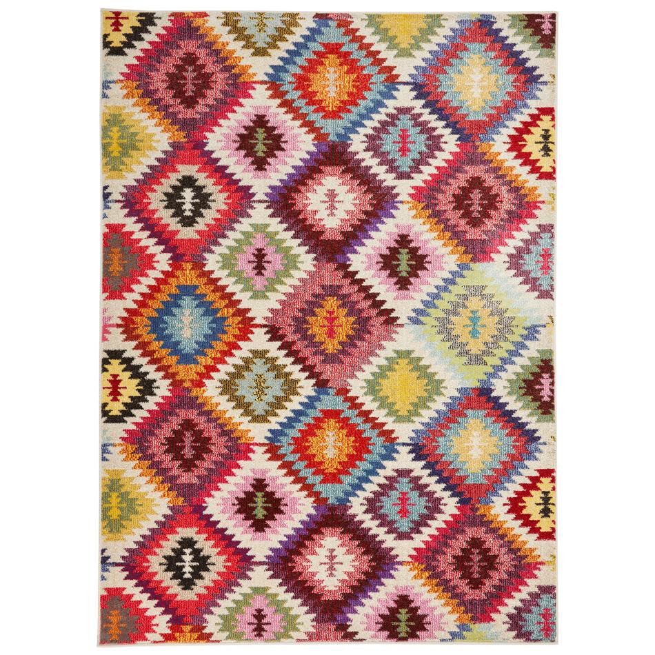 Make a bold statement with the Carnaval CAR106 Multicolour Rug, a dynamic piece designed to energise any living space. Featuring a striking tribal-inspired diamond pattern in a wide spectrum of shades, this rug brings a festival of colour to your home. Crafted from durable polypropylene fibres, it combines vivid style with practicality. Featuring a durable low pile construction and cut pile texture, this rug offers the perfect balance of practicality and style. It offers comfort underfoot while being stain-resistant, non-shedding, and easy to maintain. As part of our budget-friendly quality and price range, it offers excellent value without compromising on style